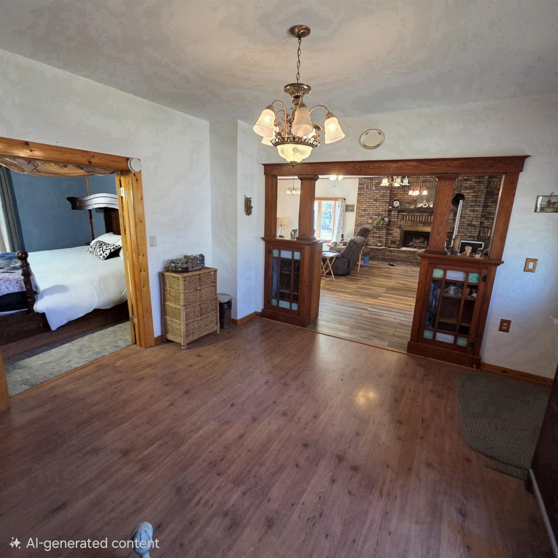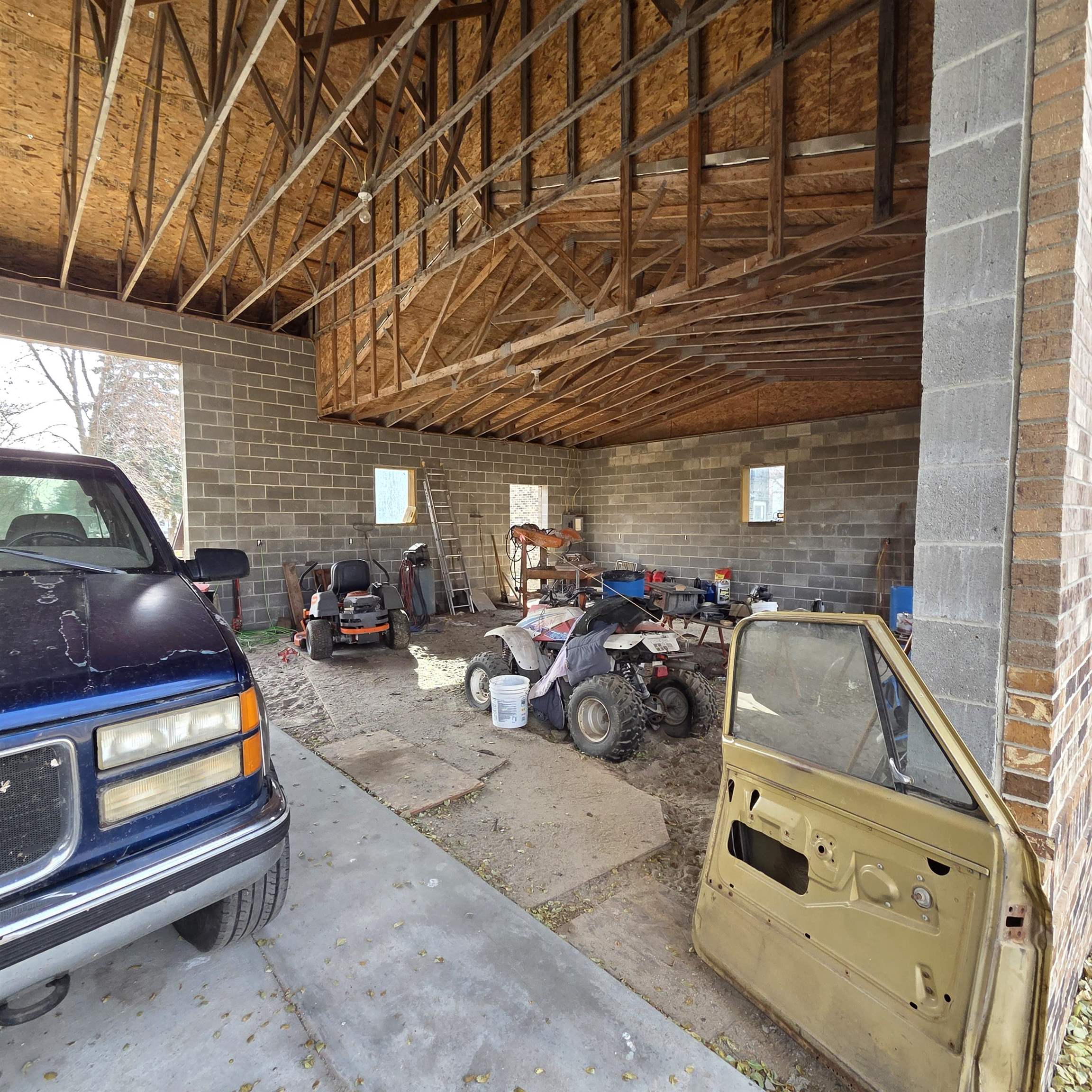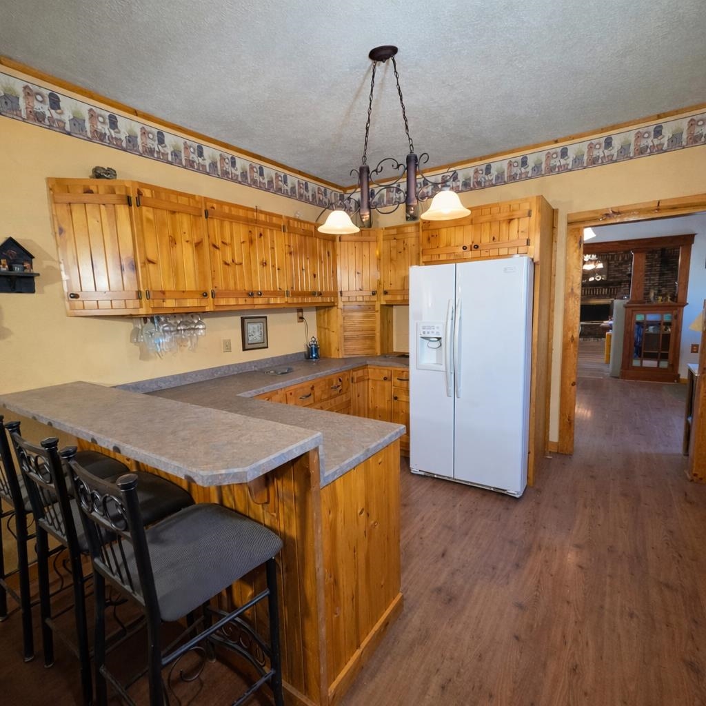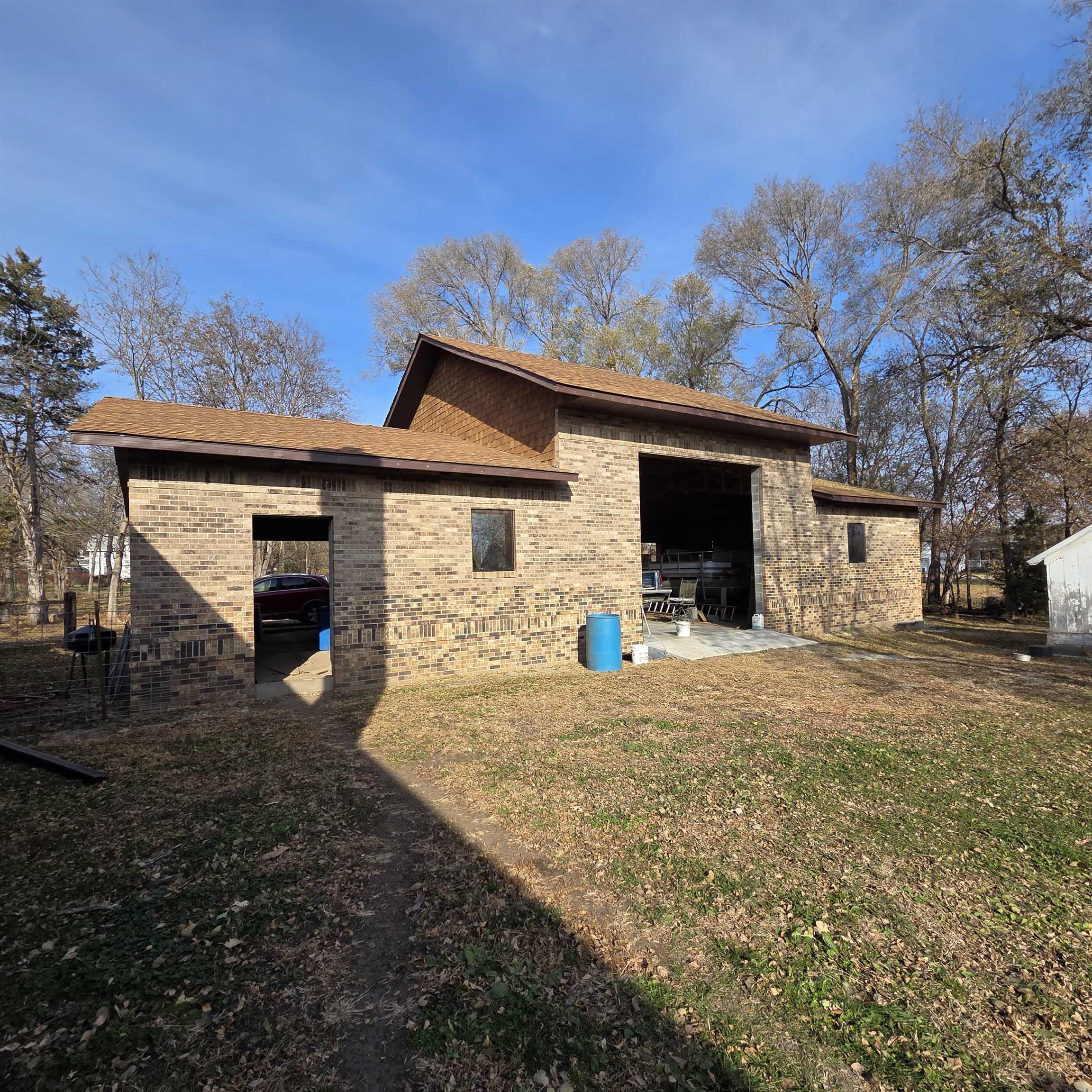 Own an Acreage in Town! Own 1.3 Acres and this solid brick 2 bed 2 bath home with detached 30' x 60' all brick garage. Updated shingles and heating system. Features electric (solar backup power) and wood heat with a wood fireplace on the main floor and a bonus wood burning furnace in the basement. Main floor bathroom has a jacuzzi tub. The 30 x60 garage features 3-stalls with 1 drive-through style garage (garage doors not yet installed) with space for vehicles, storage, or a workshop. The entire CITY BLOCK lot is completely fenced in! Current zoning permits a second home may be built on the property. A rare chance to own an entire block in town with room to expand or build. Disclosure: Images have been digitally decluttered for marketing purposes.