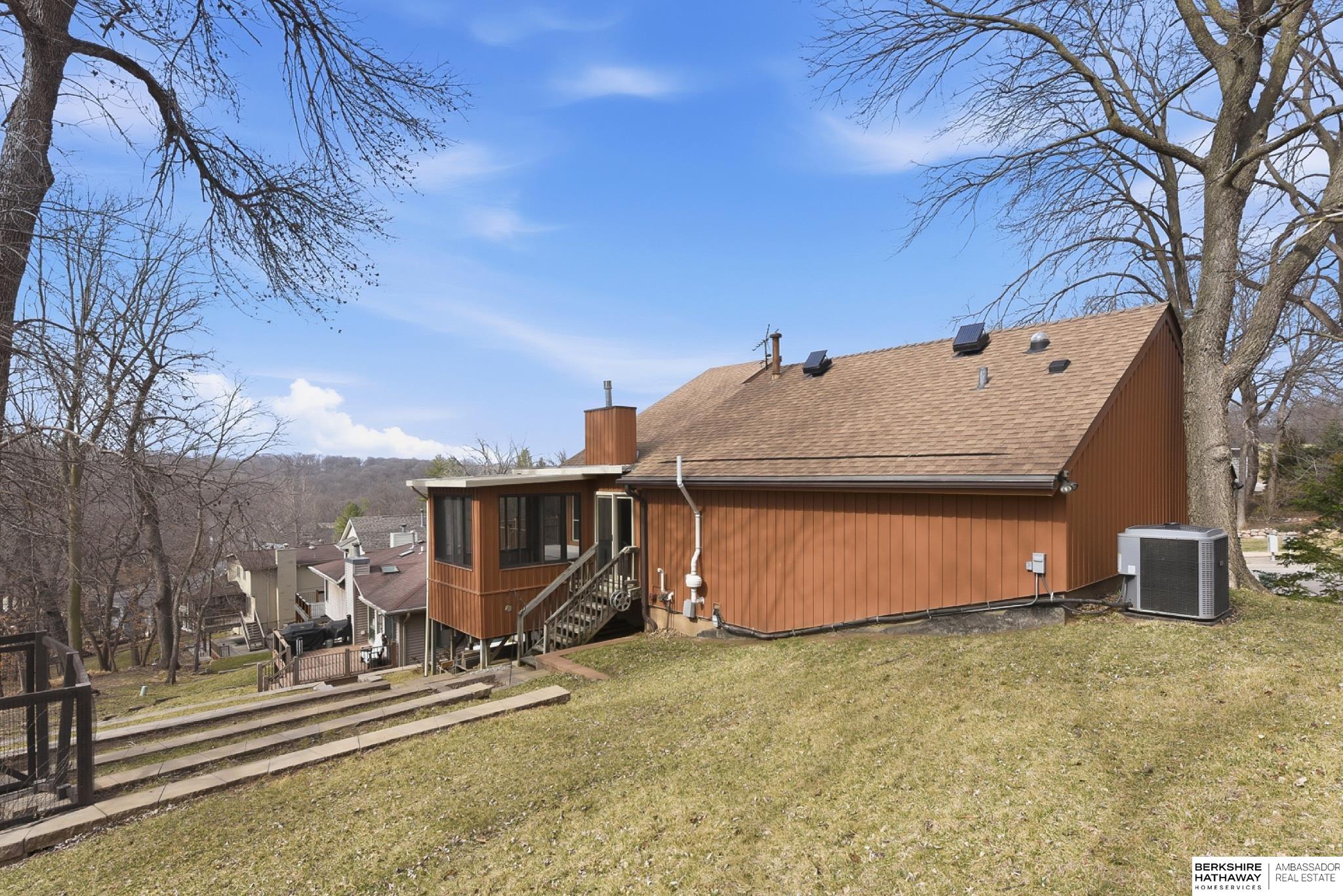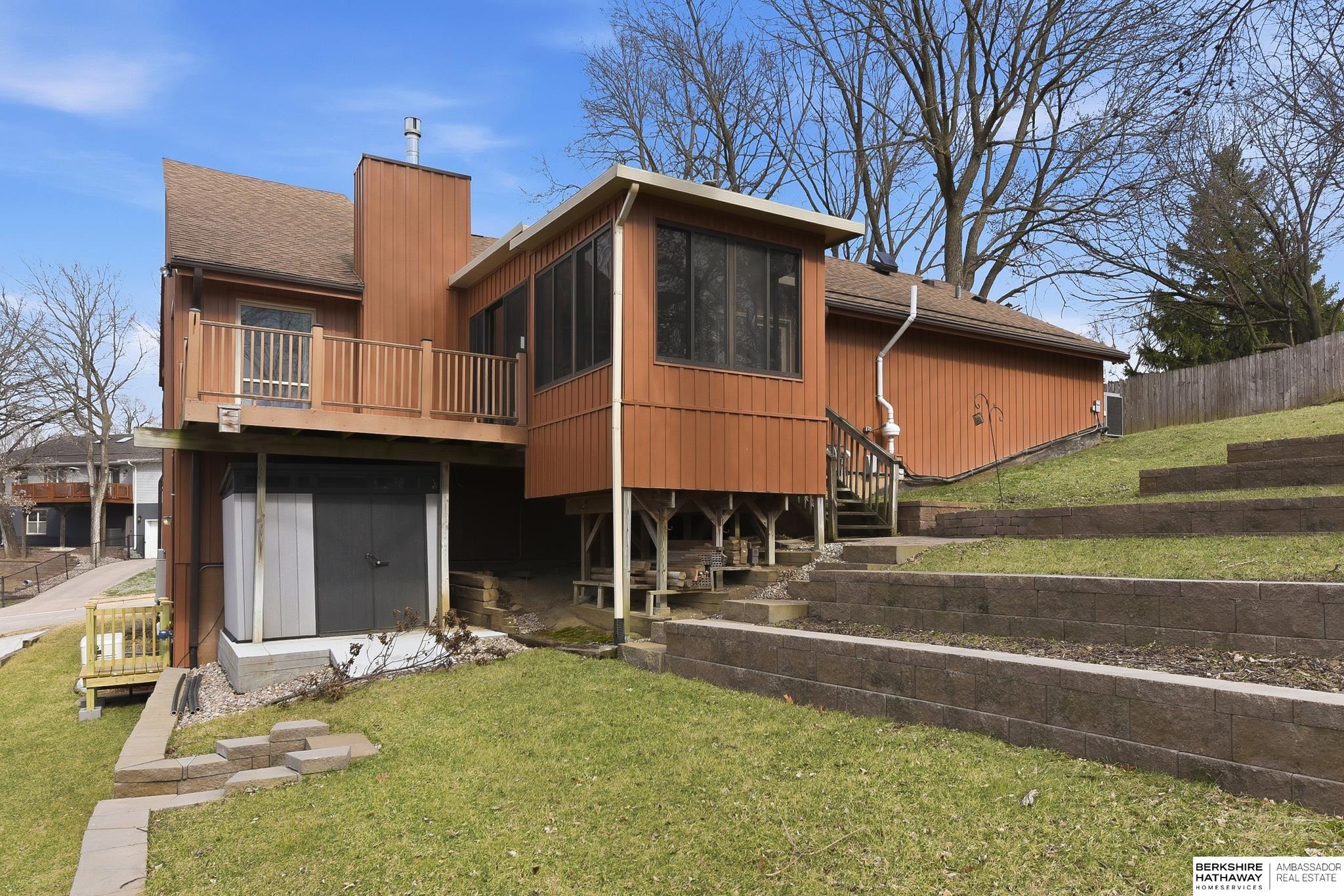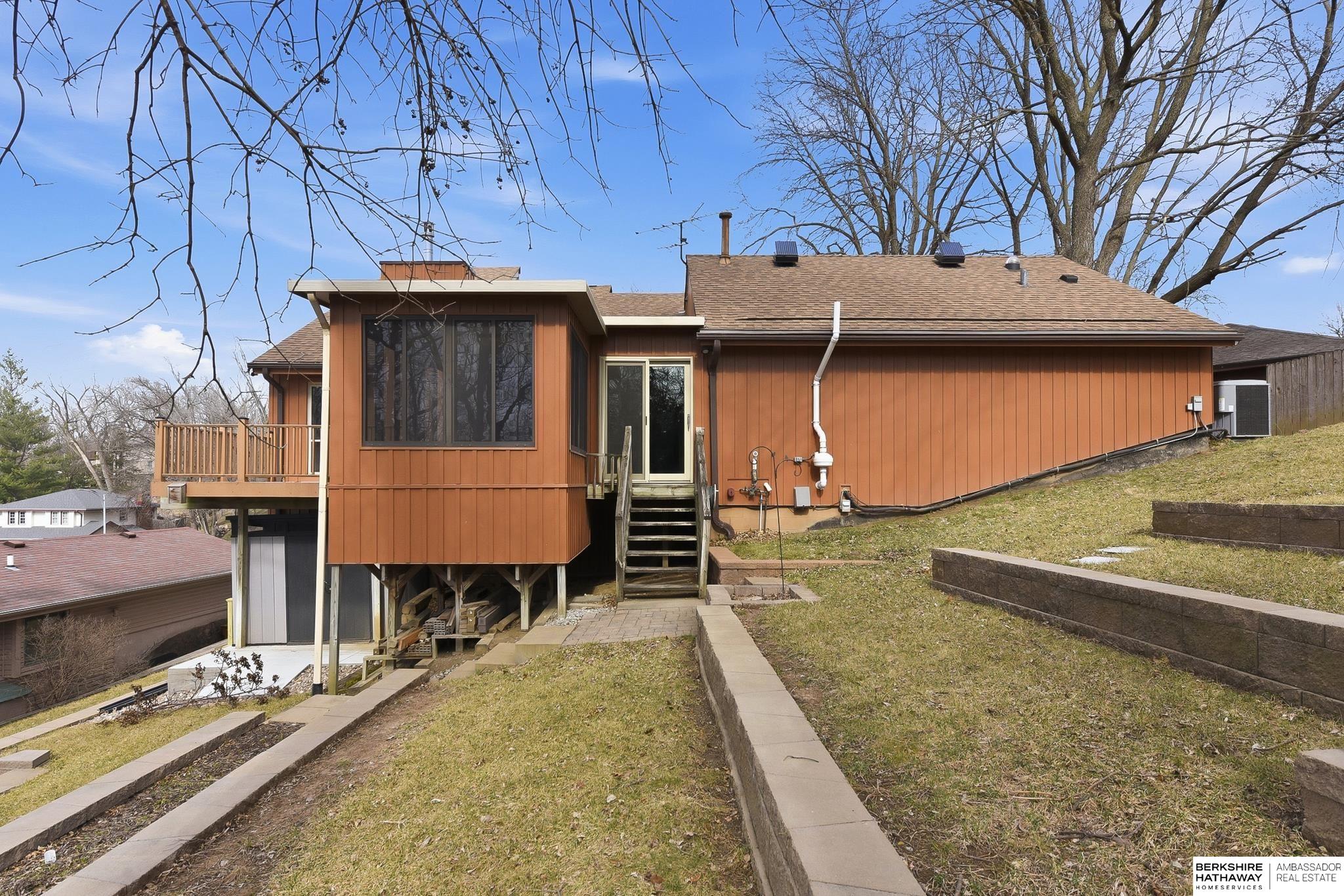 Check out this unique, 1 of 12 homes built by architect Kim S. Anderson! This pre-inspected well-maintained 3 bedroom, 3 bathroom property offers comfort, efficiency, and great outdoor living. Nestled near Fontenelle forest the home features a 2-car garage, two spacious decks, and a bright sunroom—perfect for relaxing or entertaining. Enjoy the added bonus of a workshop, ideal for hobbies, projects, or additional storage. Recent updates include a new radon mitigation system, new AC and furnace, and a tankless water heater for efficient, on-demand hot water. Additional features include maintenance-free steel siding, leafguard gutter system, and the peace of mind of a whole-home Generac generator. A truly unique property combining practical upgrades with comfortable living and beautiful surroundings.