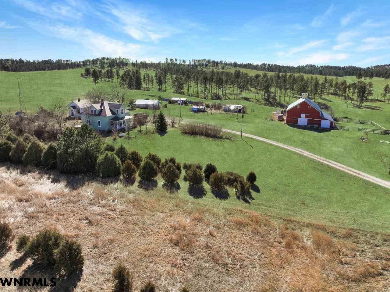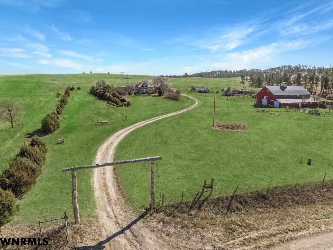 Located just outside of Crawford, Nebraska, this 77.29± acre property offers a great combination of productive grass, functional improvements, and rural character in a highly desirable Pine Ridge setting. This property is set up for the perfect horse property with a historic barn, corrals, and two houses. The property is currently leased for grazing and supports approximately 22 cow/calf pairs during the summer months, providing immediate income potential while maintaining flexibility for a new owner and on a year-to-year lease if the owner chooses to use it themselves. Improvements include two homes, multiple outbuildings, and a well-maintained historic barn that serves as the centerpiece of the property. The main home features 3 bedrooms upstairs and has seen several updates over the years. It includes a propane furnace approximately 5 years old, a wood-burning stove for supplemental heat, and electric cove heat in each upstairs bedroom. The home was rewired approximately 20 years ago and is equipped with an electric water heater and water softener. A metal roof adds to the durability and low maintenance of the home. A second home on the property offers 1 bedroom and 1 bathroom with propane heat and a metal roof, making it ideal for guests, rental income, or additional living space. The property has a 300-foot deep well, with a submersible pump replaced within the last 2–3 years. A windmill supplies a 10,000-gallon cistern that feeds two livestock tanks for domestic use. The red barn is a standout feature and is in excellent condition, having been well cared for over the years. The upper level was historically used for barn dances and gatherings, giving the property a unique sense of history and character that is hard to find, and it still has a solid floor ready for the next generation to host dances and gatherings. The land itself consists of ponderosa pines and gently rolling grassland with established windbreaks planted over 20 years ago. Apple and cherry trees enhance the homestead setting, and the overall layout is well-suited for livestock, horses, or a rural lifestyle property. Located just minutes from Crawford, approximately 20 minutes from Chadron, and a short drive to Fort Robinson State Park, this property offers excellent access to outdoor recreation, including hunting, hiking, and horseback riding. The Black Hills of South Dakota are also within easy reach, adding to the appeal for both recreation and investment. This is a well-balanced property offering an excellent horse property, quality improvements, and a strong location in northwest Nebraska.
