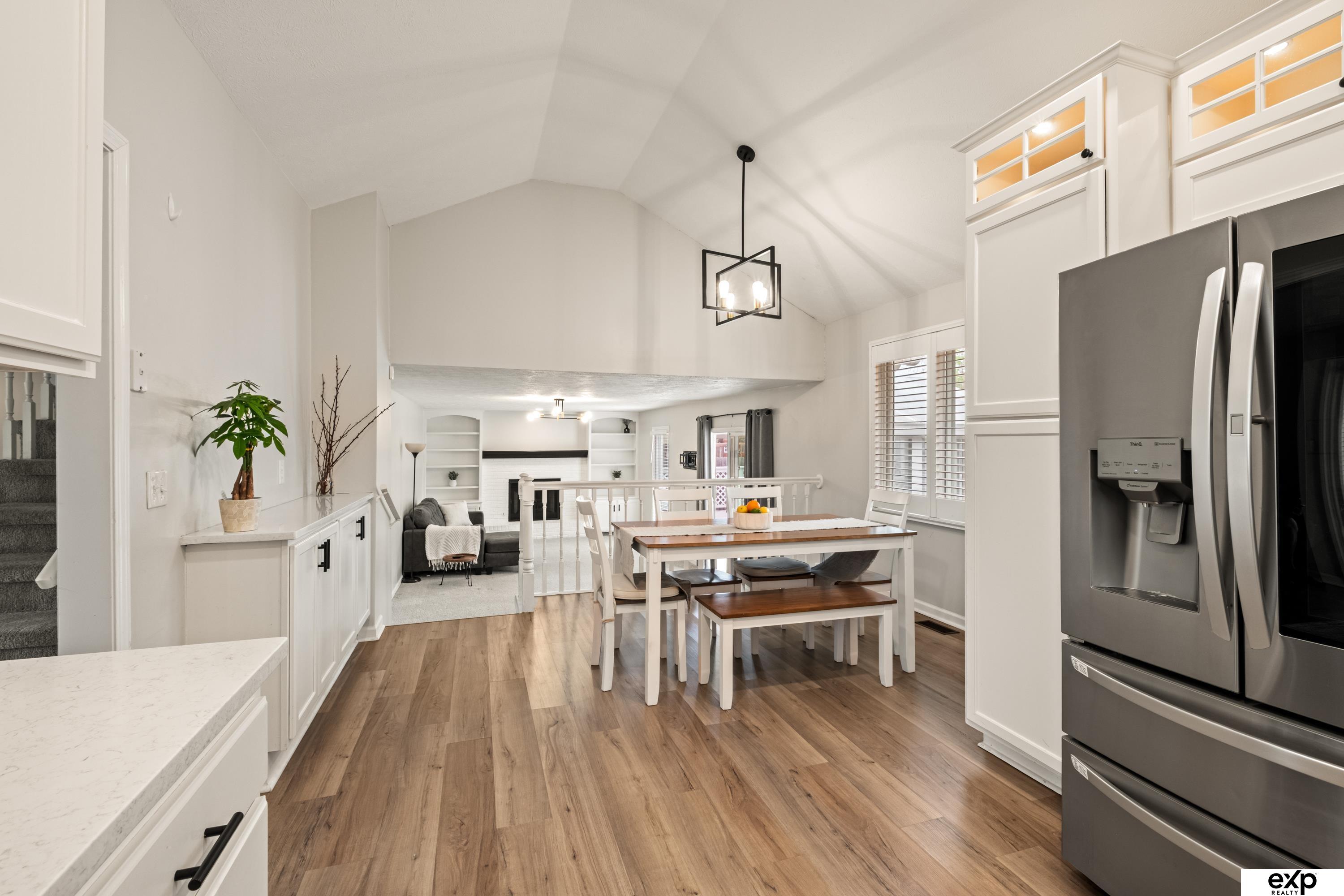 This is the one that just feels good the minute you walk in. With 3 bedrooms, 3 bathrooms, and 2,229 sq ft, this updated multi-level stands out with LVP flooring throughout the main level, quartz counters, tile backsplash, lighted upper cabinets, all-new appliances, and refreshed baths. The custom electric fireplace wall gives the living room a warm designer look, and the vaulted kitchen/dining space feels bright and welcoming. Outside, the fully fenced backyard is ready for summer with mature trees, a huge deck and pergola, gazebo, and three-season room. Big-ticket upgrades include new HVAC 2025, new gutters, water softener, purification system, and home security. In Elkhorn Schools and close to shopping, schools, and Zorinsky Lake, this home checks all the boxes.