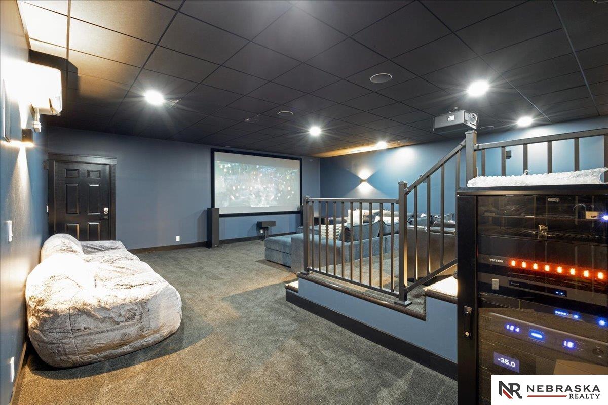 Five lush irrigated acres with more than 10,000 finished square feet across three levels and a wide range of indoor and outdoor amenities. The main floor centers on a large great room with fireplace, a well-equipped kitchen, dining area, office, and a primary suite with nearby laundry and loft access. The upper level offers additional bedrooms, baths, a living area, and second laundry. A separate second-level accessory dwelling includes its own kitchen, dining area, bedroom, bath, and exterior entrance. The lower level expands the living space with a rec room, CEDIA-certified theater, exercise room, bedroom, kitchen, saferoom/vault, and an indoor pool. Outdoor features include a swimming pond, patio, sand volleyball court, fire feature, forested area, and open recreation space. Four-car garage with EV outlet plus an additional lower-level garage. Schedule a private tour to explore the layout, amenities, and possibilities this property offers.