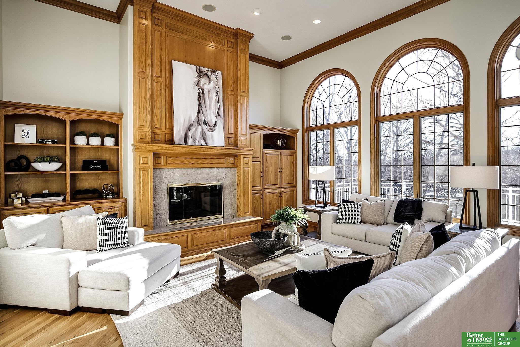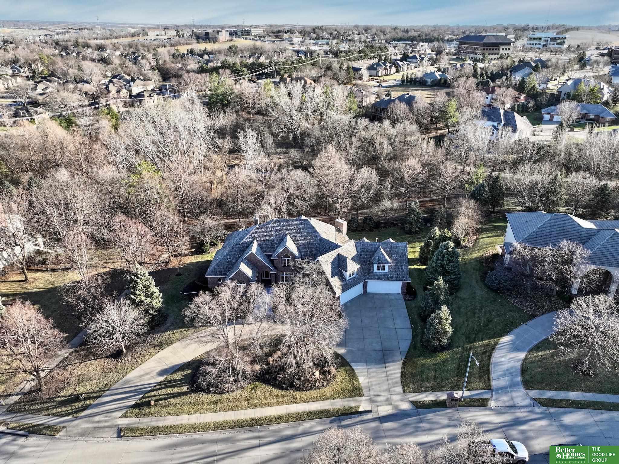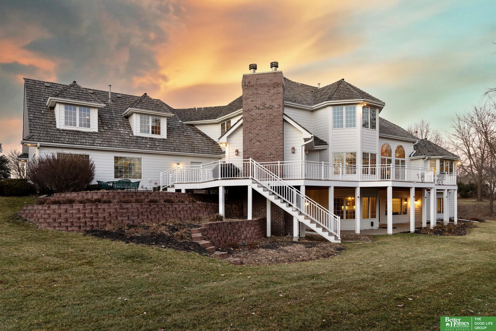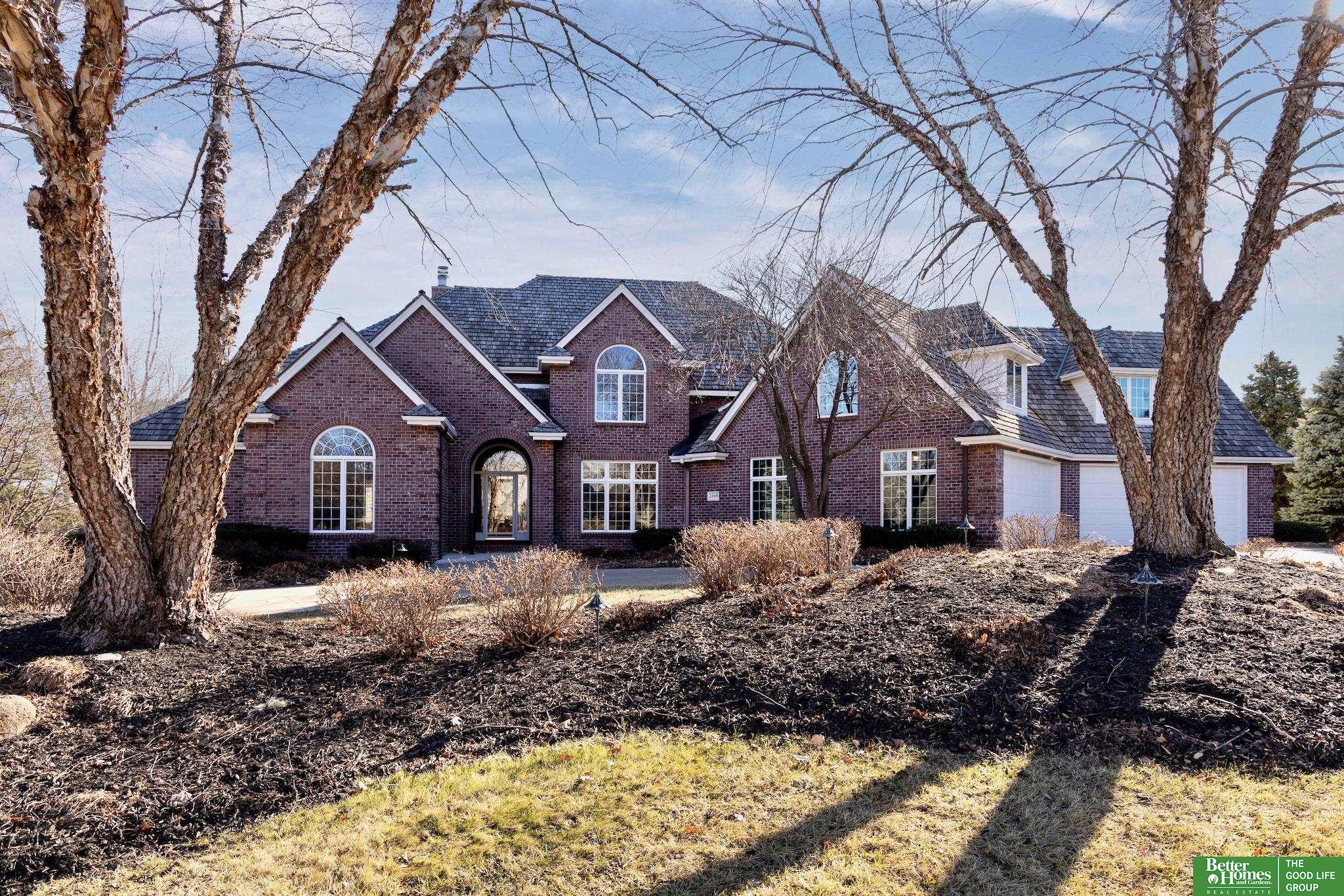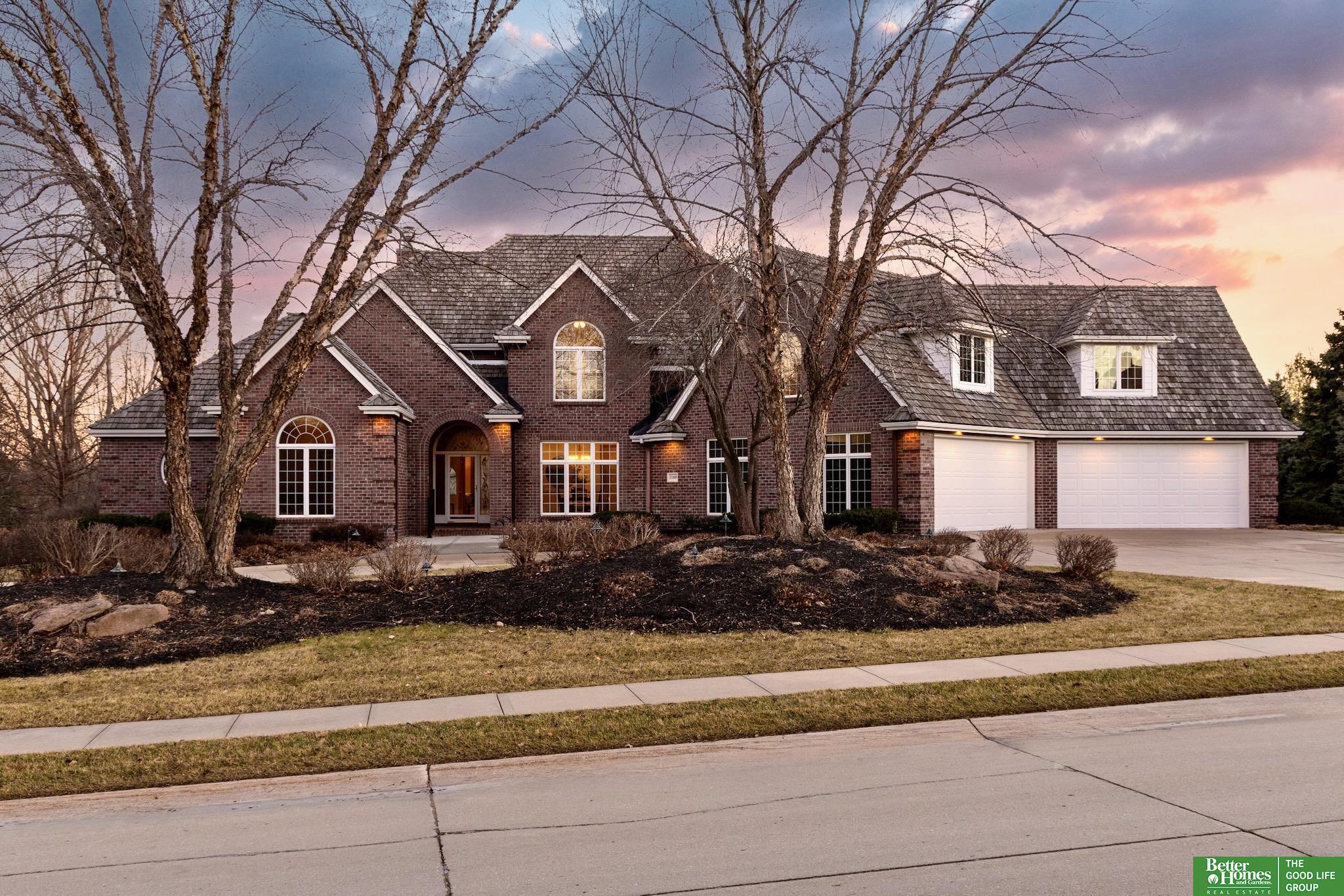 Highly desirable, preinspected, one-owner custom home in prestigious Linden Estates, set on a private, professionally landscaped nearly one-acre lot. This refined 5-bedroom residence offers a light-filled 1.5-story layout with soaring ceilings, a grand foyer, and a dramatic wall of windows overlooking a serene natural preserve and walking trail. The main level features a wood-paneled office with custom built-ins, formal dining, and a gourmet kitchen open to a warm hearth room with fireplace. The main-floor primary suite is a peaceful retreat with a spa-inspired bath. Upstairs includes three bedrooms with private baths and a versatile loft. The walkout lower level is ideal for entertaining, offering a spacious rec area, wet bar, reading nook with fireplace, built-ins, and a fifth bedroom with ¾ bath. Newly painted, with a new heat pump. A rare opportunity in one of Omaha’s most sought-after neighborhoods.