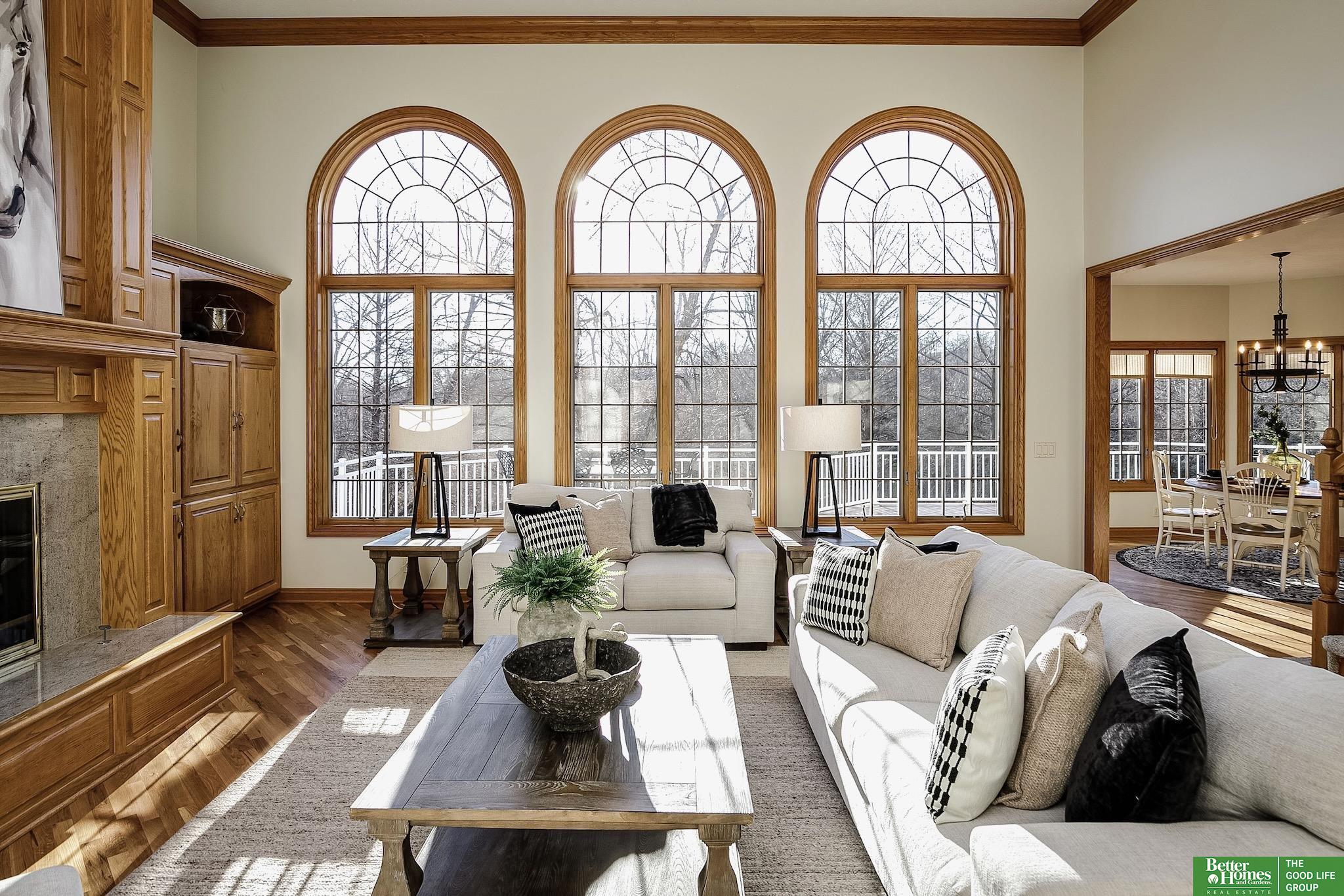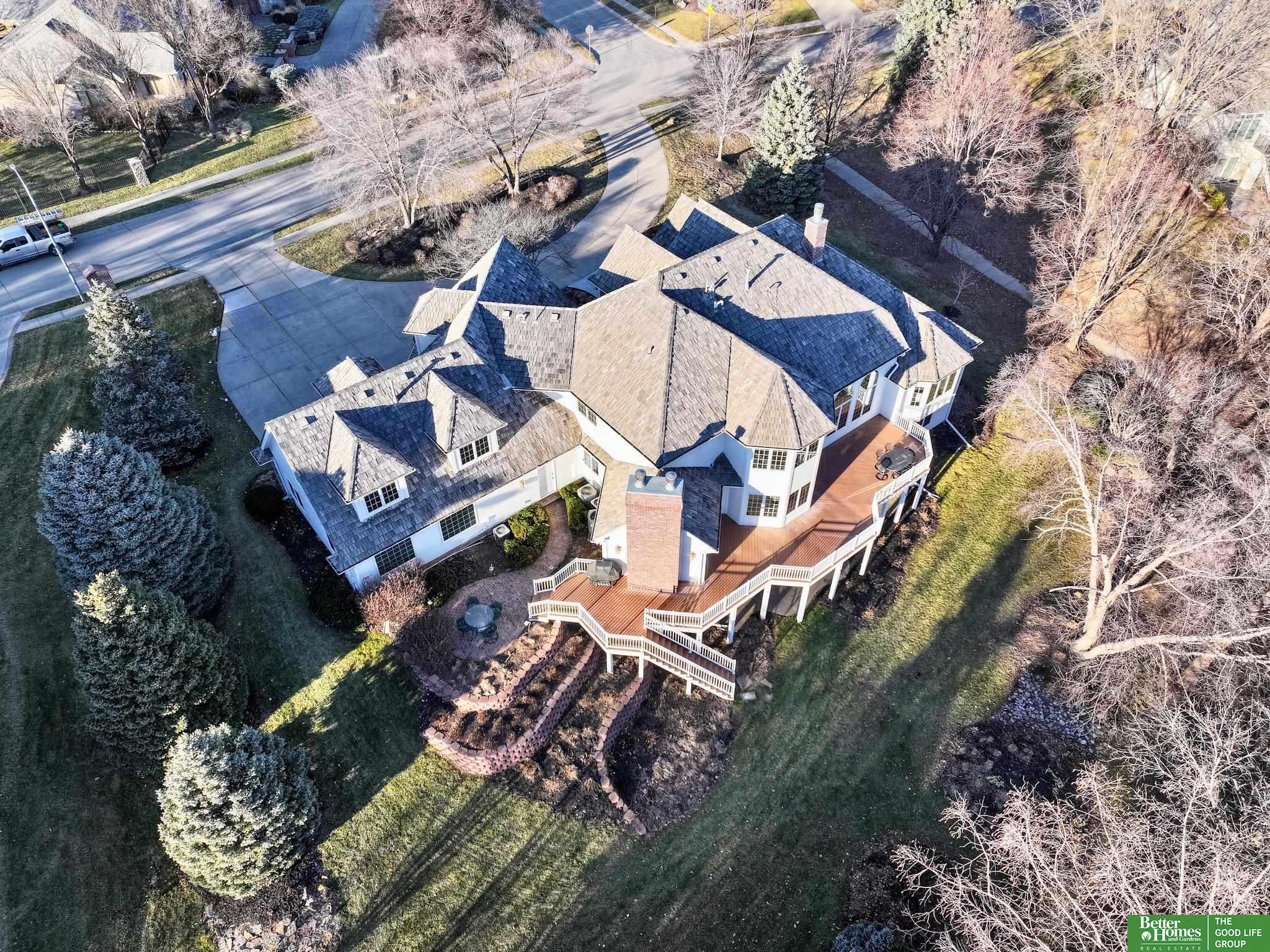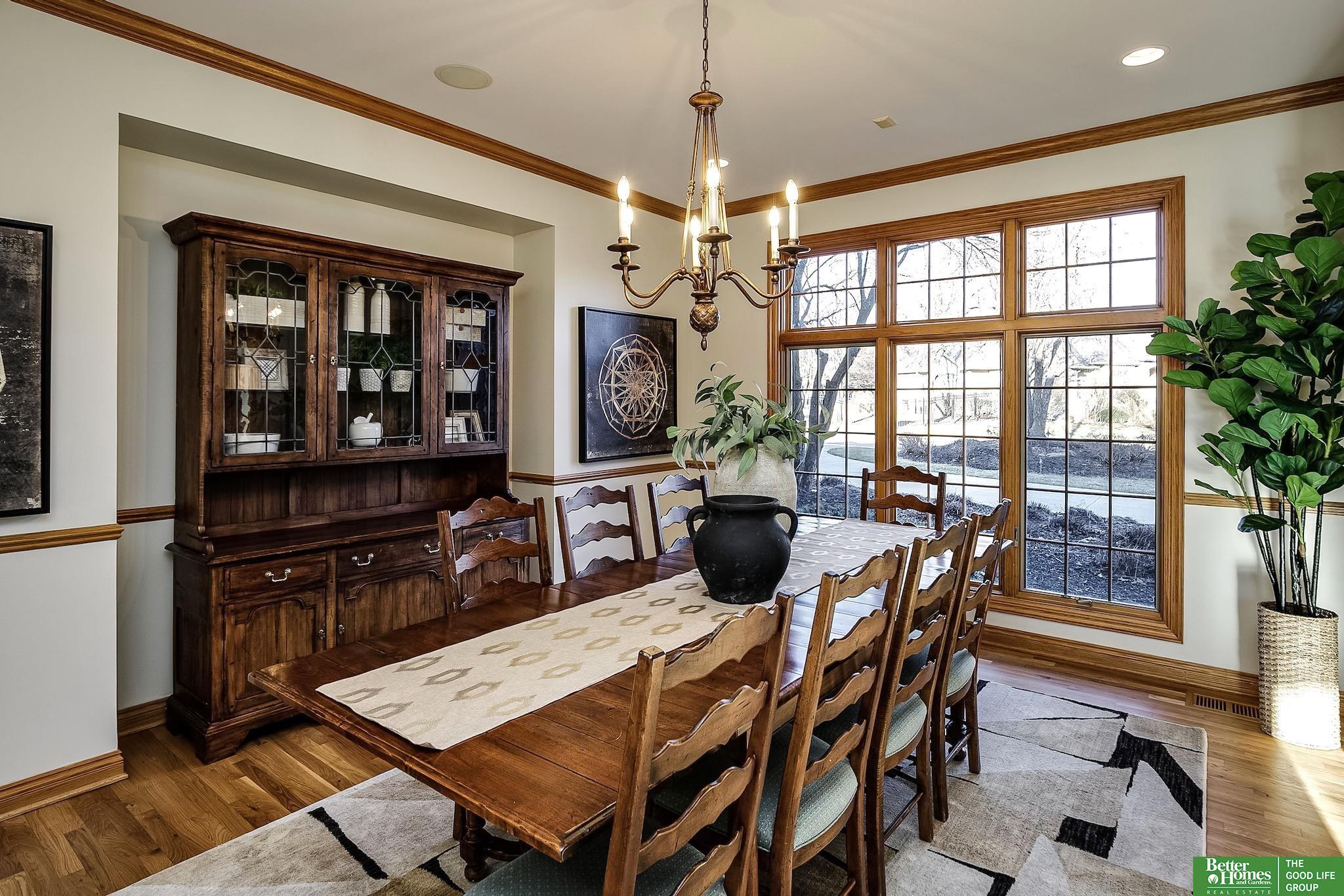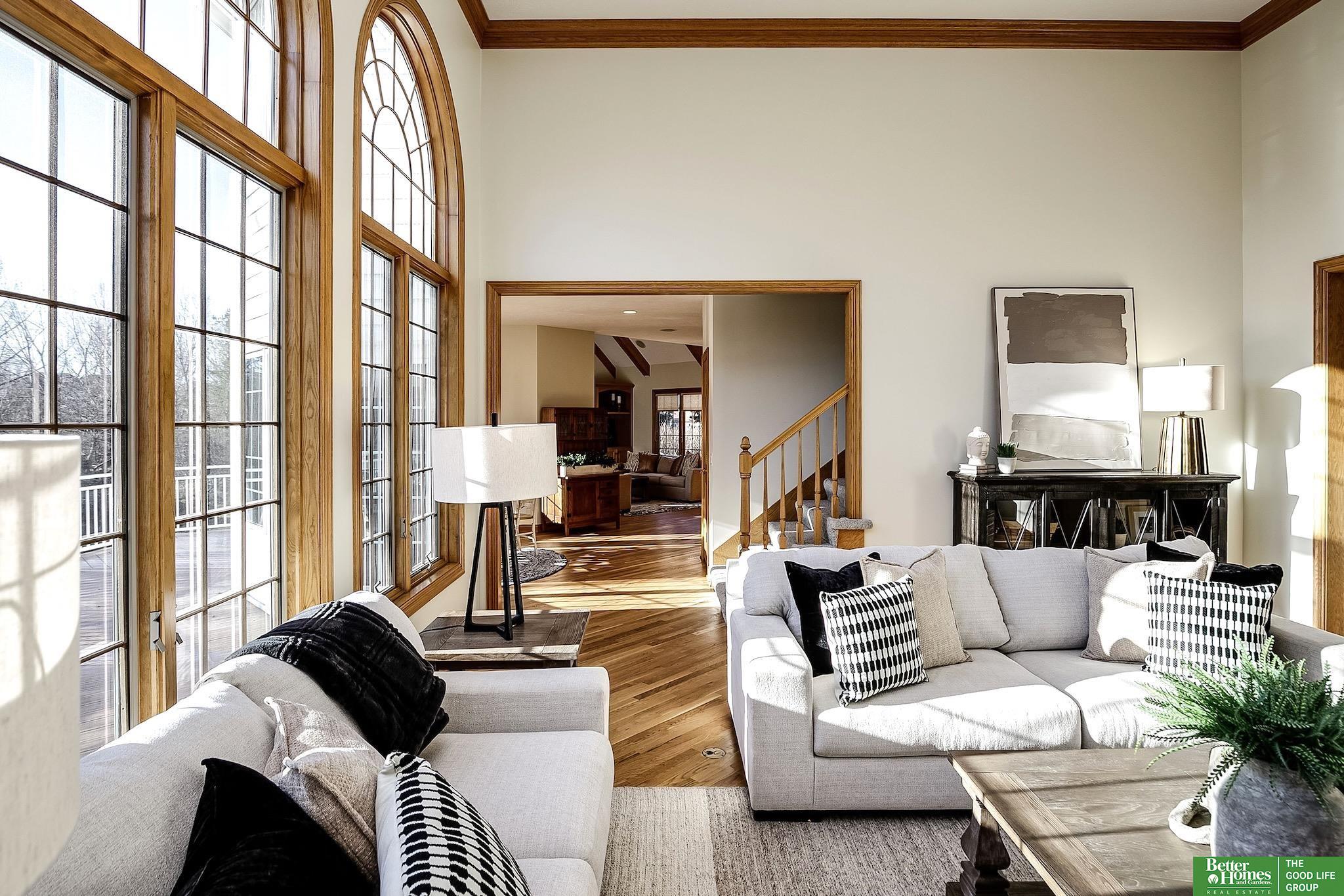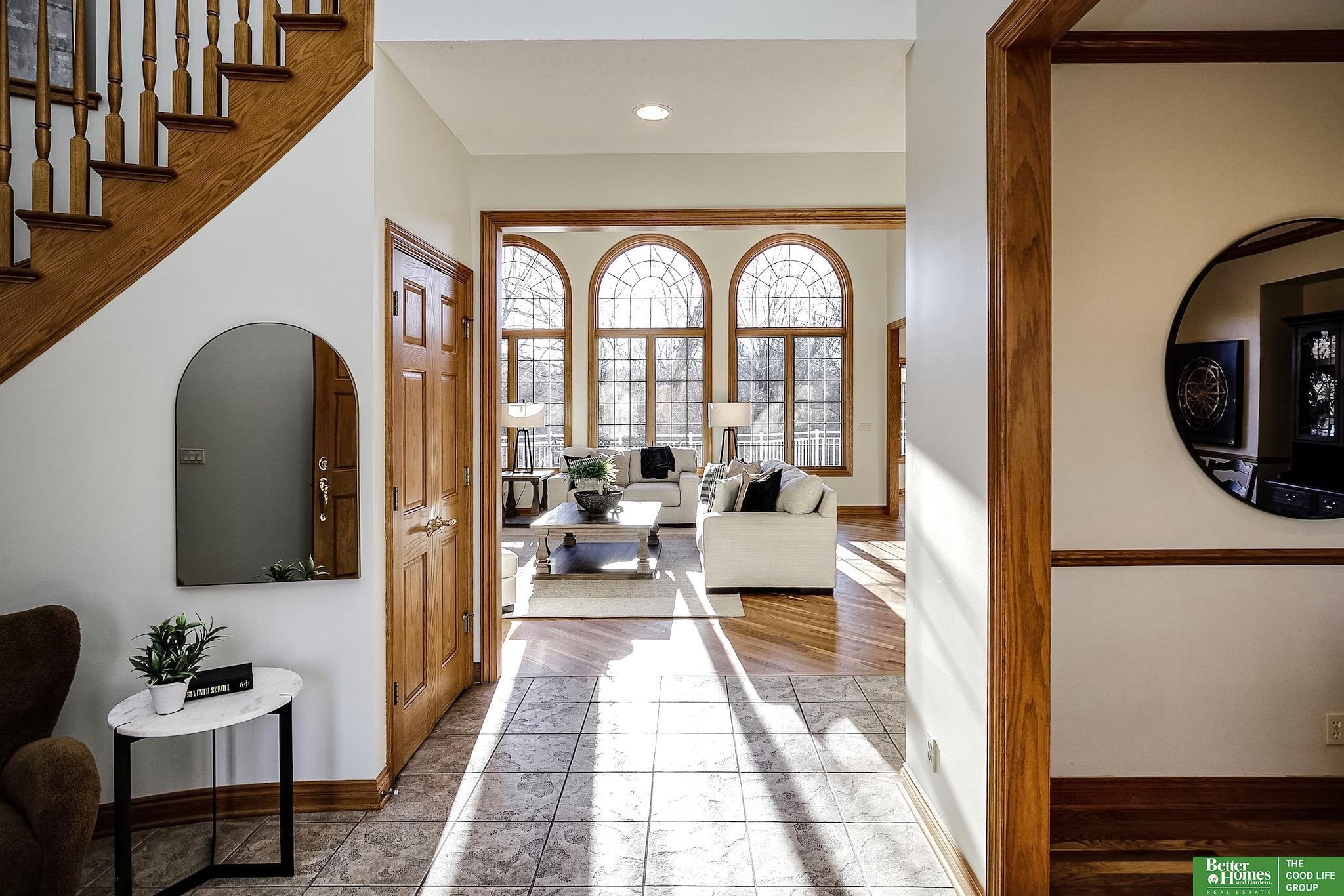 Highly desirable, preinspected, one-owner custom home in prestigious Linden Estates, set on a private, professionally landscaped nearly one-acre lot. This refined 5-bedroom residence offers a light-filled 1.5-story layout with soaring ceilings, a grand foyer, and a dramatic wall of windows overlooking a serene natural preserve and walking trail. The main level features a wood-paneled office with custom built-ins, formal dining, and a gourmet kitchen open to a warm hearth room with fireplace. The main-floor primary suite is a peaceful retreat with a spa-inspired bath. Upstairs includes three bedrooms with private baths and a versatile loft. The walkout lower level is ideal for entertaining, offering a spacious rec area, wet bar, reading nook with fireplace, built-ins, and a fifth bedroom with ¾ bath. Newly painted, with a new heat pump. A rare opportunity in one of Omaha’s most sought-after neighborhoods.