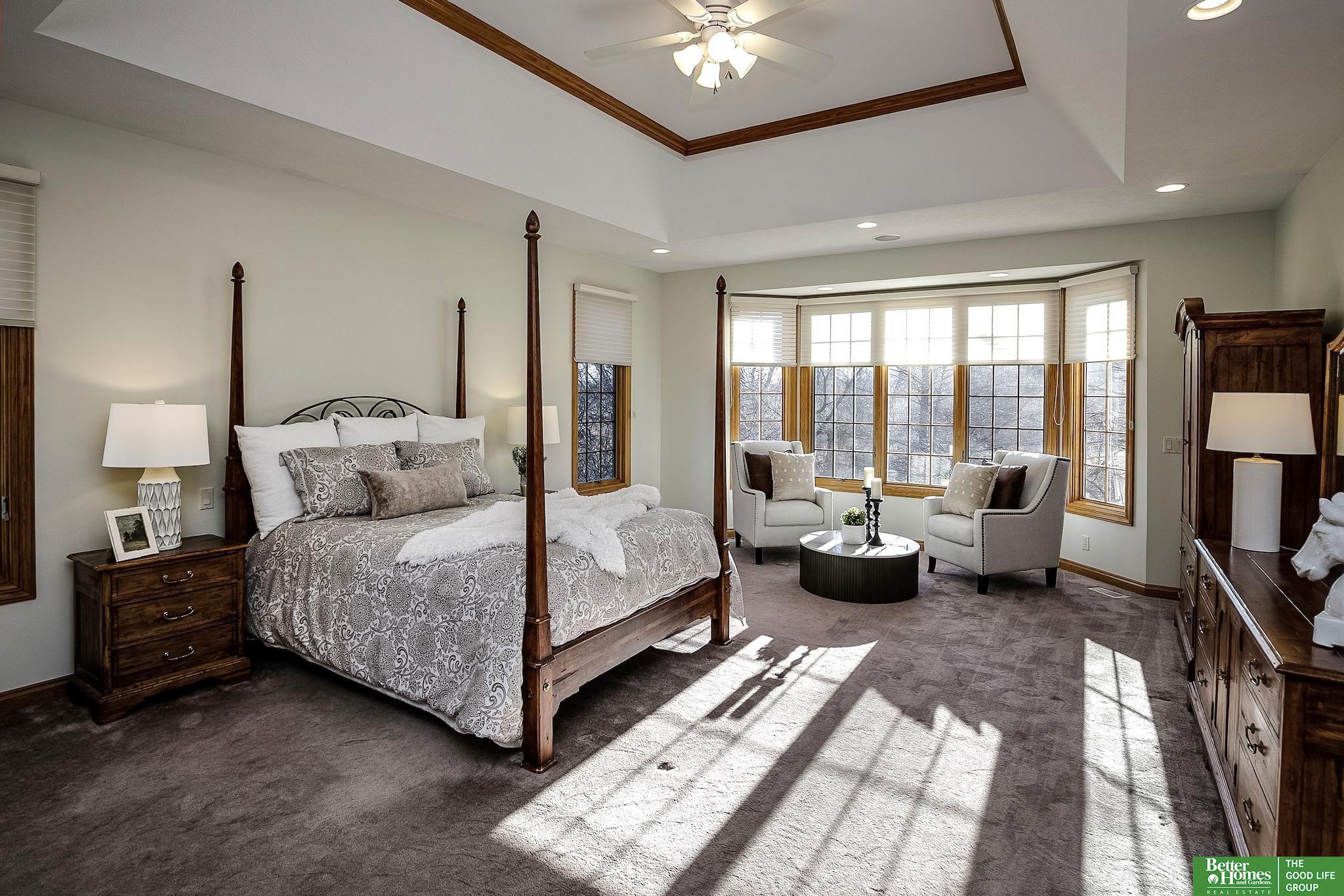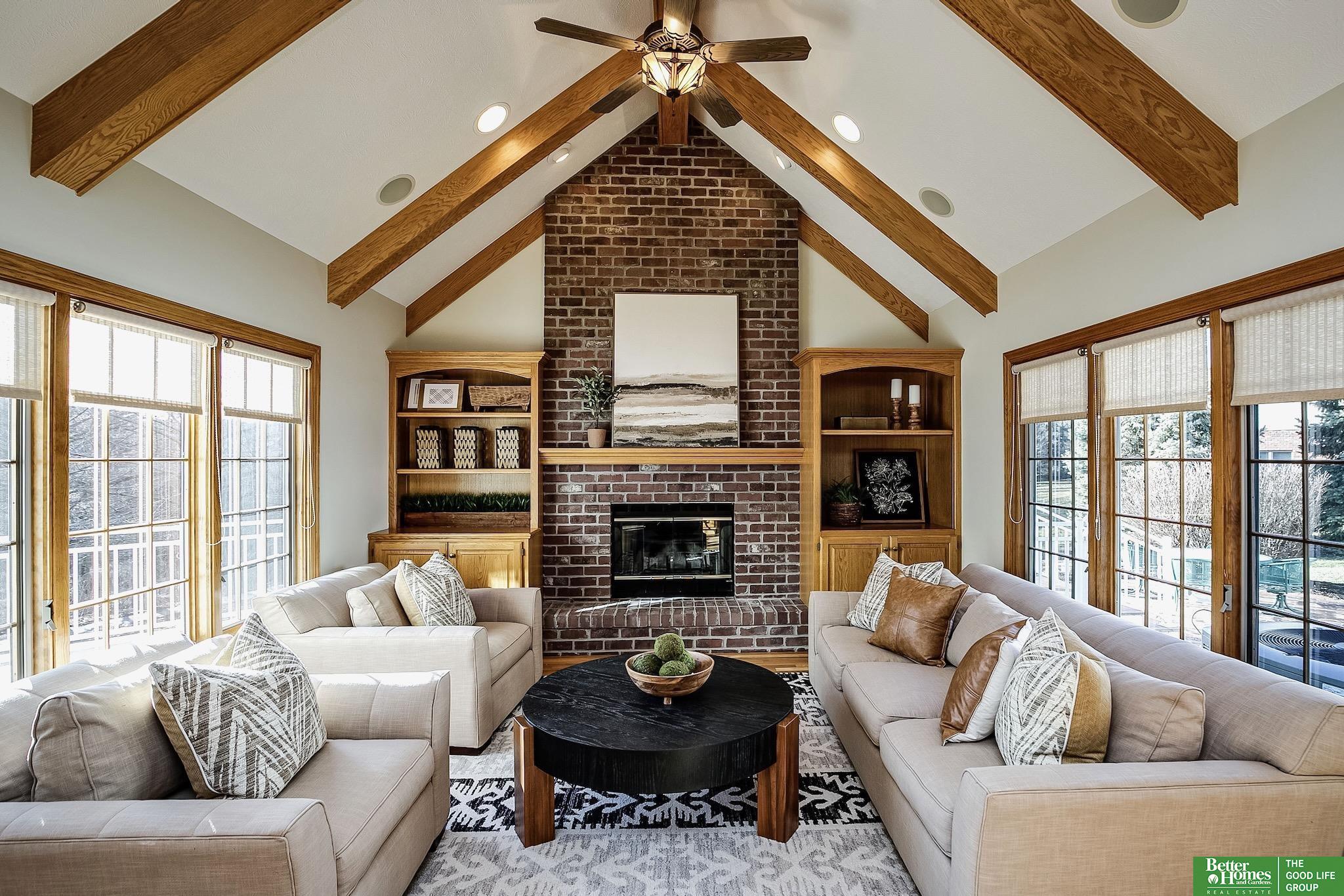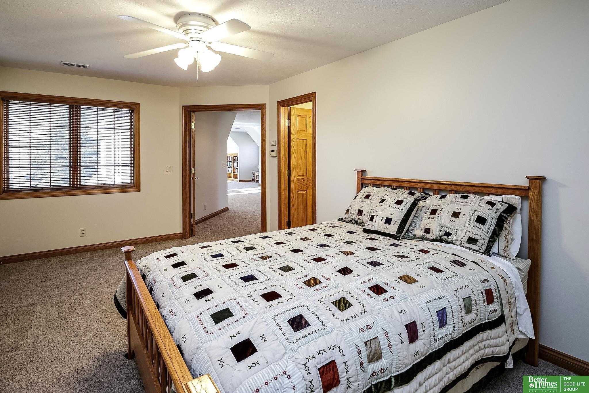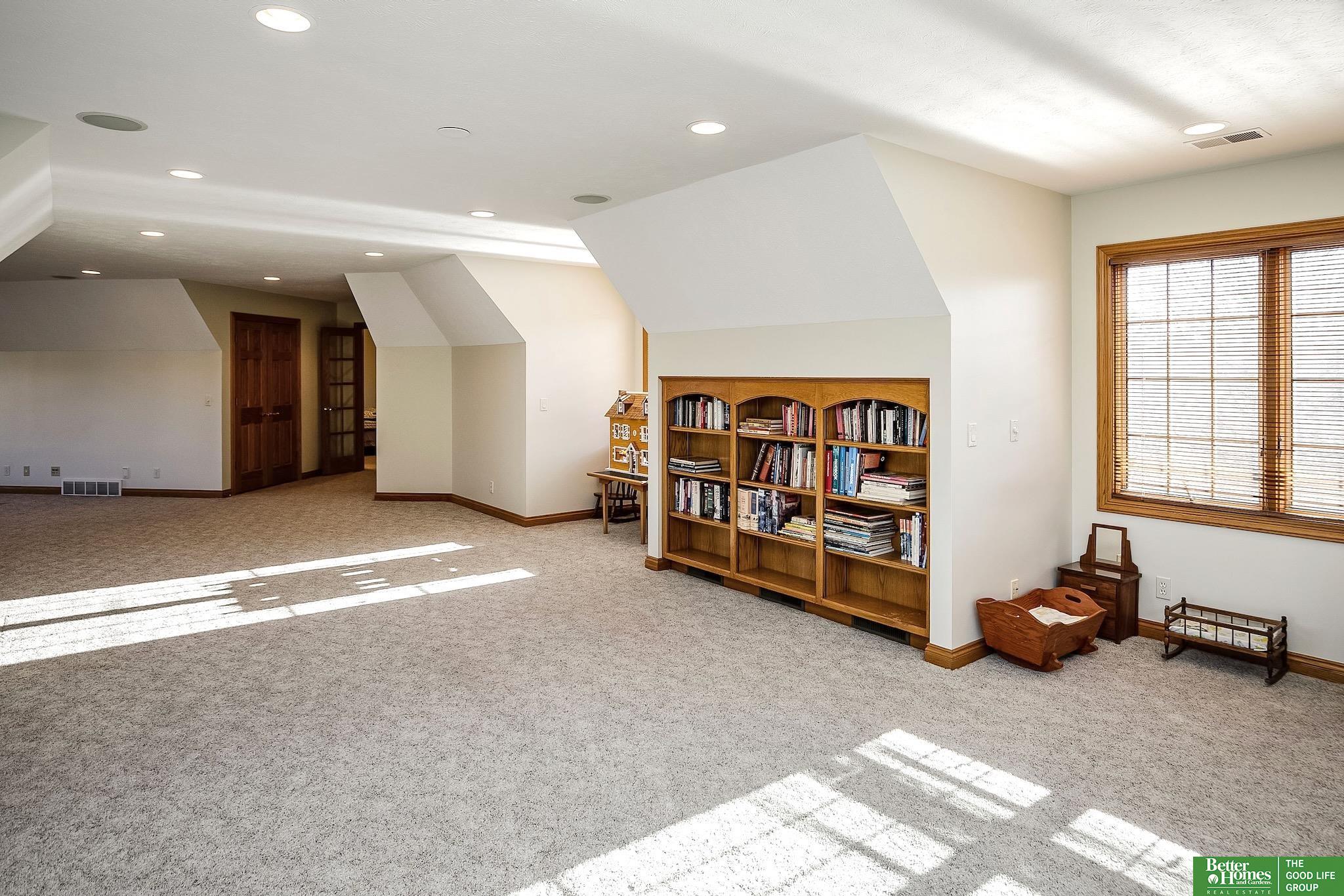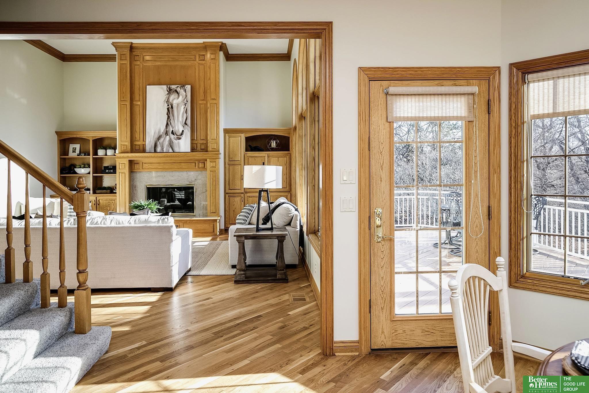 Highly desirable, preinspected, one-owner custom home in prestigious Linden Estates, set on a private, professionally landscaped nearly one-acre lot. This refined 5-bedroom residence offers a light-filled 1.5-story layout with soaring ceilings, a grand foyer, and a dramatic wall of windows overlooking a serene natural preserve and walking trail. The main level features a wood-paneled office with custom built-ins, formal dining, and a gourmet kitchen open to a warm hearth room with fireplace. The main-floor primary suite is a peaceful retreat with a spa-inspired bath. Upstairs includes three bedrooms with private baths and a versatile loft. The walkout lower level is ideal for entertaining, offering a spacious rec area, wet bar, reading nook with fireplace, built-ins, and a fifth bedroom with ¾ bath. Newly painted, with a new heat pump. A rare opportunity in one of Omaha’s most sought-after neighborhoods.