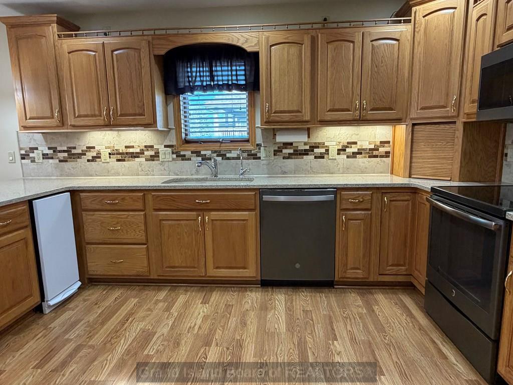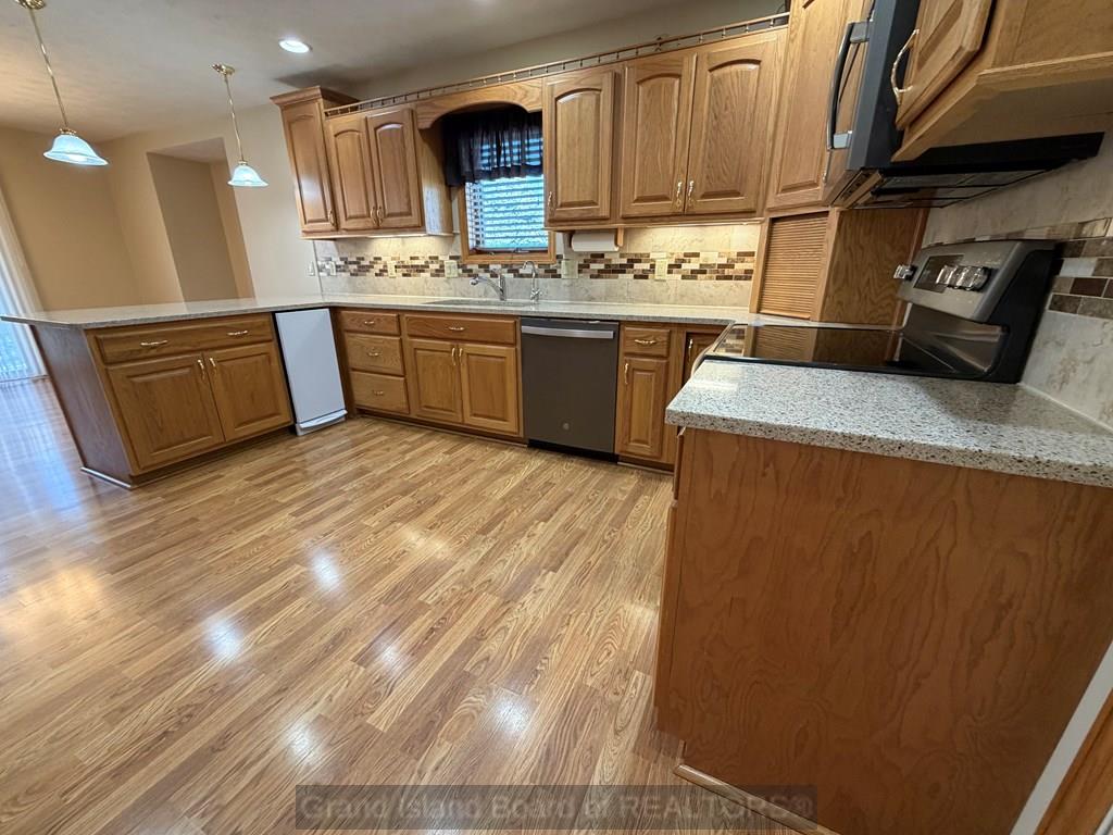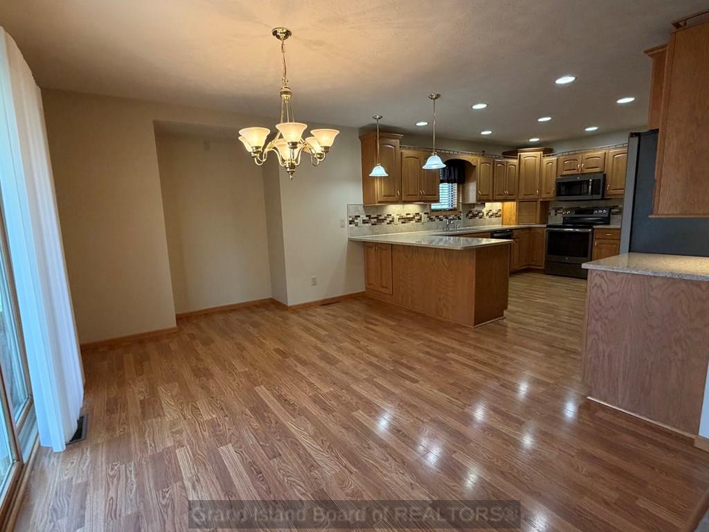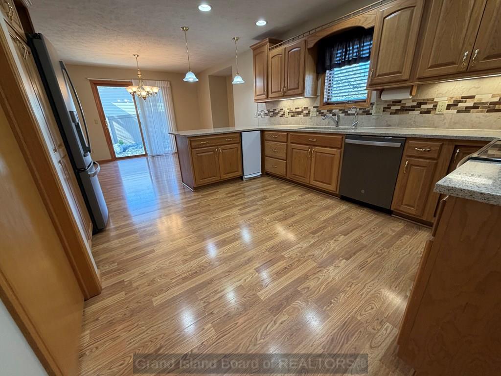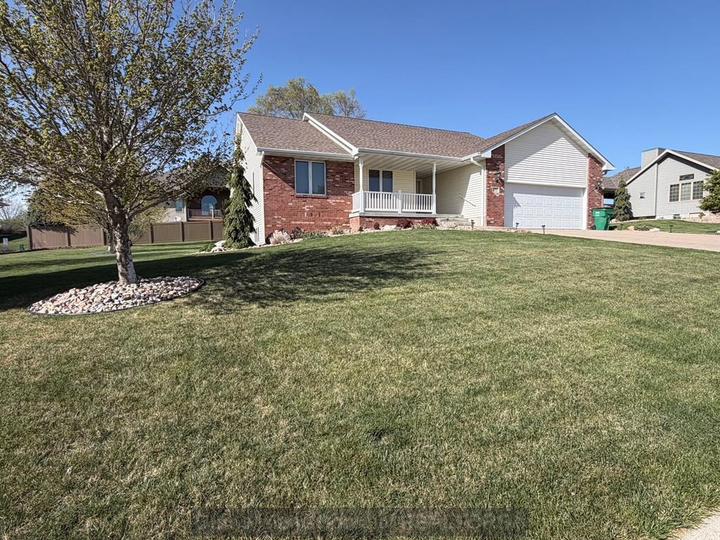 Spacious and thoughtfully designed ranch home in a desirable neighborhood, featuring beautiful landscaping and a welcoming covered front porch. Enjoy outdoor living with a paver patio, established yard, and underground sprinklers. Inside, the home offers a vaulted living room filled with natural light, a formal dining area, and large kitchen complete with granite countertops and ample workspace. The main floor also includes a convenient laundry room and half bath.The private primary suite features a generous bedroom, walk-in closet, and ensuite bath. Two additional bedrooms and a full bathroom are tucked away down a separate hallway for added privacy. The finished basement expands your living space with a large family room, a versatile bonus room perfect for a home gym, office, or game area, plus a bath, two additional bedrooms with garden-level windows, and an oversized storage room. Quality construction, functional layout, and inviting spaces make this home a must see