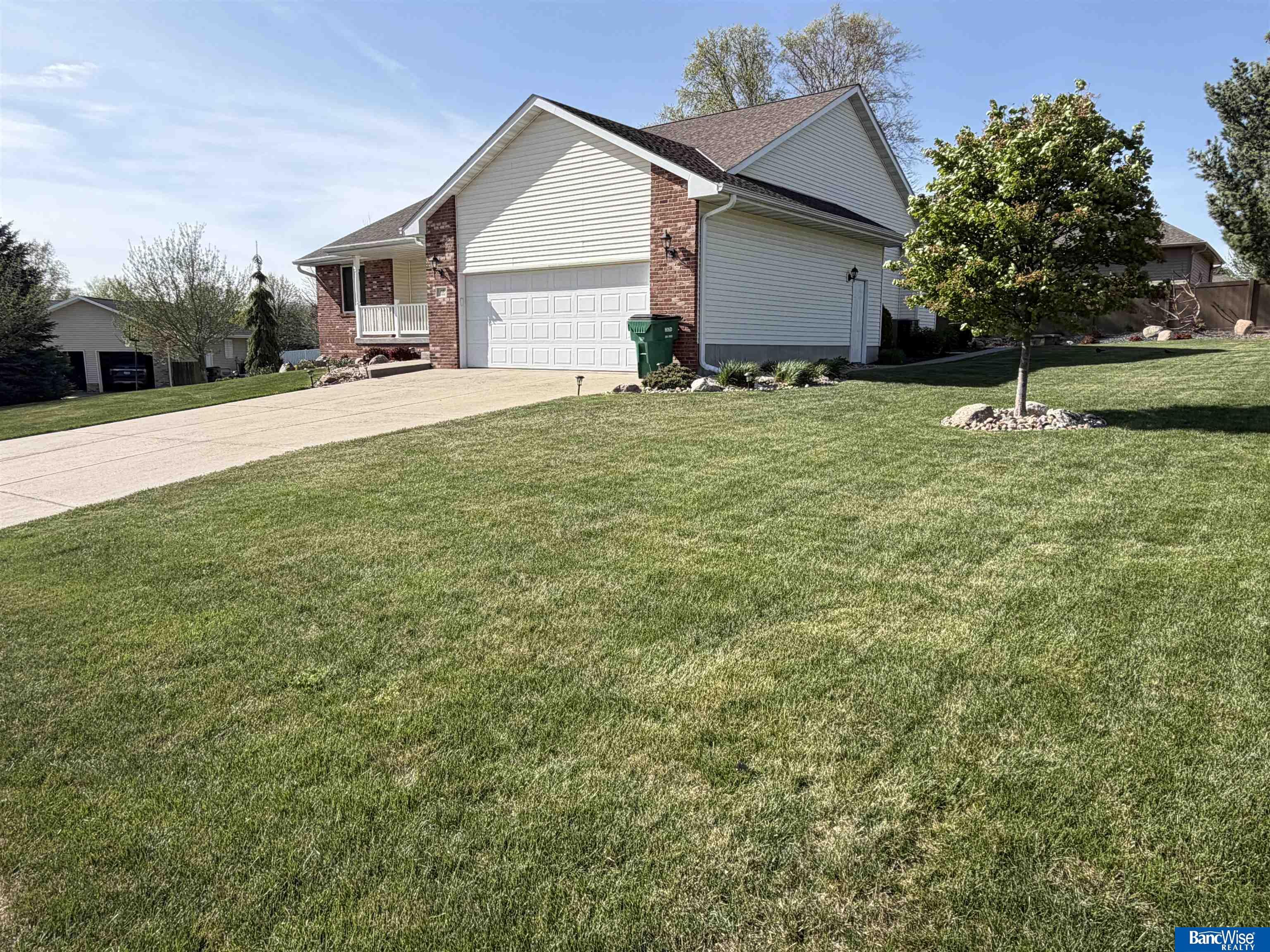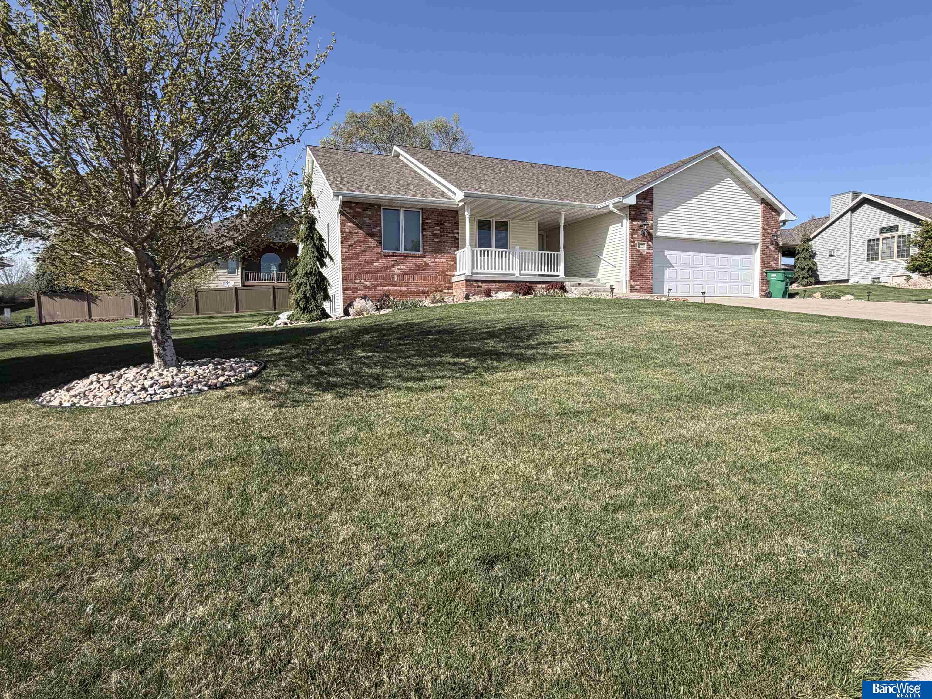 Spacious and thoughtfully designed ranch home in a desirable neighborhood, featuring beautiful landscaping and a welcoming covered front porch. Enjoy outdoor living with a paver patio, established yard, and underground sprinklers. Inside, the home offers a vaulted living room filled with natural light, a formal dining area, and large kitchen complete with granite countertops and ample workspace. The main floor also includes a convenient laundry room and half bath.The private primary suite features a generous bedroom, walk-in closet, and ensuite bath. Two additional bedrooms and a full bathroom are tucked away down a separate hallway for added privacy. The finished basement expands your living space with a large family room, a versatile bonus room perfect for a home gym, office, or game area, plus a ¾ bath, two additional bedrooms with garden-level windows, and an oversized storage room. Quality construction, functional layout, and inviting spaces make this home a must see