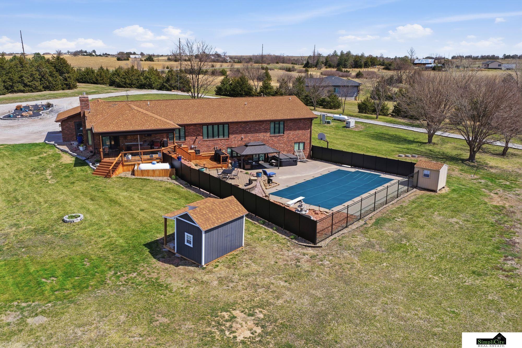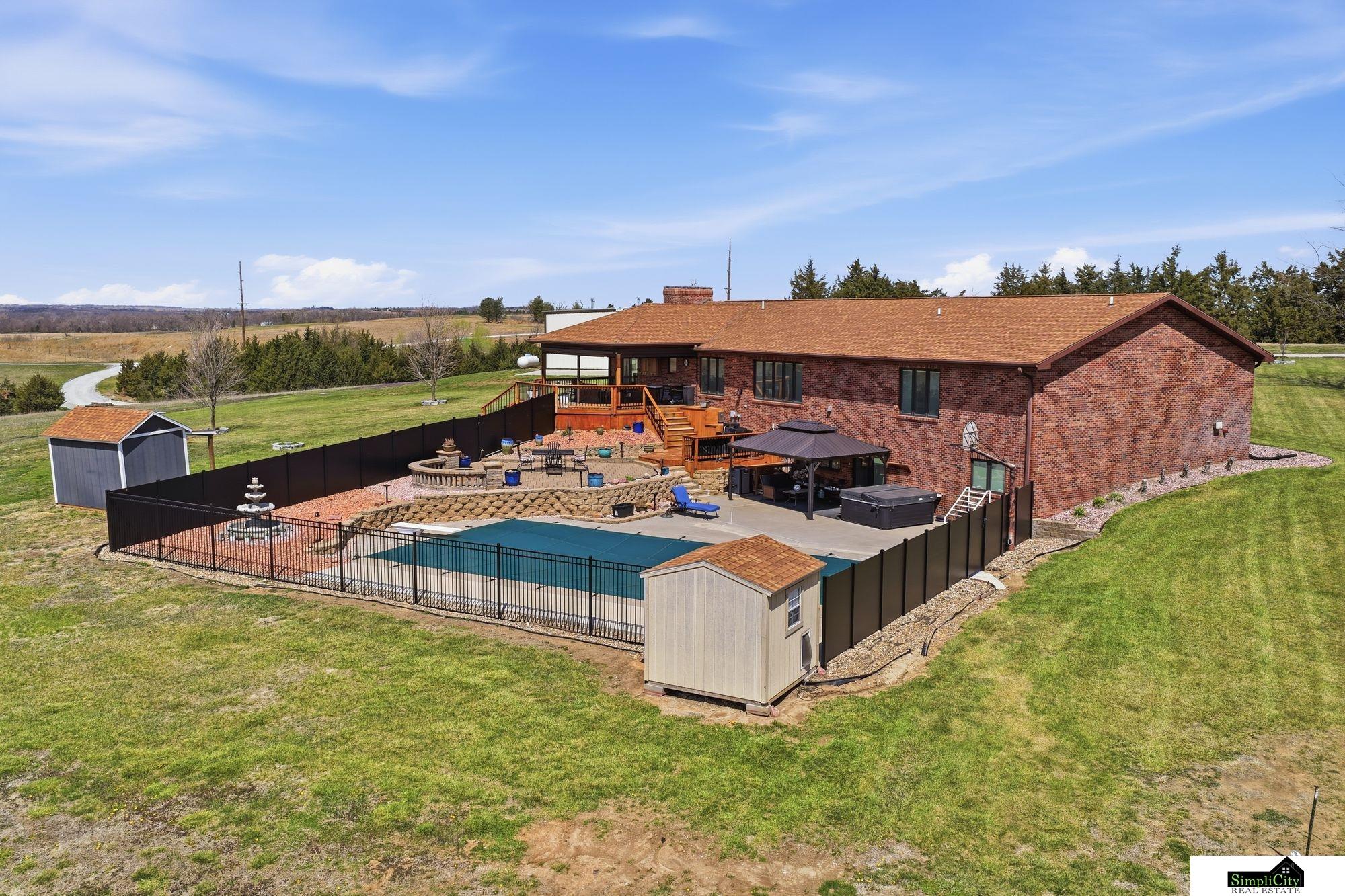 When people say they want "Acreage Life", this is what they mean! This sprawling all brick walk out ranch boasts nearly 4700 sq ft of finishes & is perched at the highest point of your 26.67 acre slice of heaven. The sunset views here are literally, breath taking! You'll be everyone's best friend this summer with your fully equipped in ground pool and hot tub situated on a multi-tiered patio / back deck. Storage will never be a problem here with 2 shops totaling 10,250 sq feet of space, with the "smaller' shop having HVAC and a bathroom. The entire property is on generator back up for added peace of mind. Located on pavement in the Malcolm school district this home has been lovingly maintained with an open checkbook with receipts totaling multiple 6 figures in maintenance and upgrades. This property is truly "Turn Key". Words and pictures fail to give this magnificent property justice. There's far too many features to mention here. This is one you have to see to see to believe!