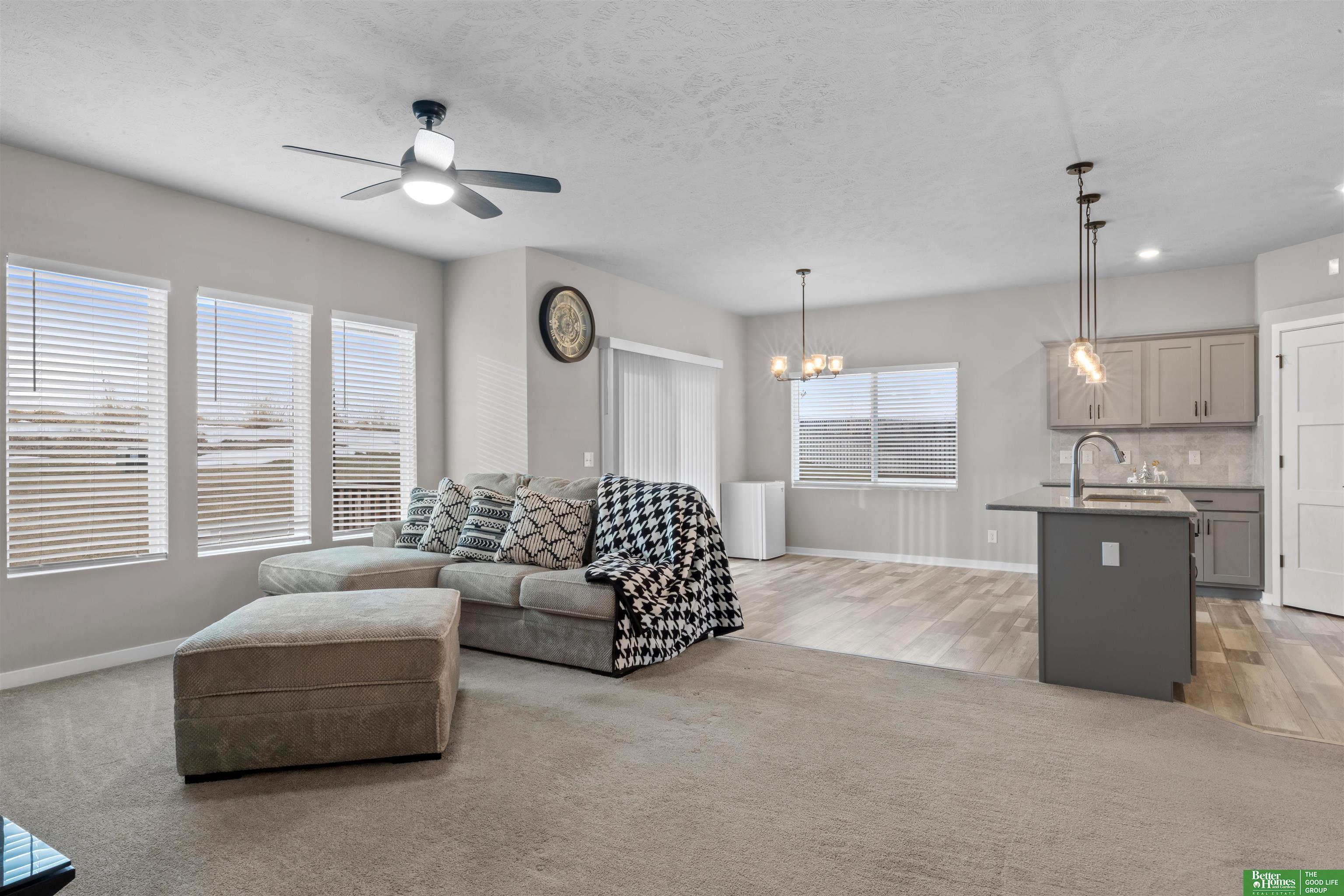 Welcome to this impeccably maintained, fully finished ranch in the sought-after Lions Gate community - truly turnkey and move-in ready. Pre-inspected and lovingly cared for by its original owner, this four-bedroom, three-bath home with a three-car garage offers comfort, quality, and thoughtful design throughout. The main level features three bedrooms, two bathrooms, a bright dine-in kitchen, and an inviting living room with a cozy fireplace overlooking a private backyard with no rear neighbors. The fully finished lower level adds exceptional flexibility with additional living space, a fourth bedroom, and a bathroom - ideal for guests, recreation, or a home office. Conveniently located minutes from Offutt AFB and Highway 75, and just 15 minutes from downtown Omaha, this home balances tranquility and accessibility. No pets, beautifully maintained, and a rare VA assumable loan available for qualified buyers. An outstanding Lions Gate opportunity - schedule your private showing today. AMA