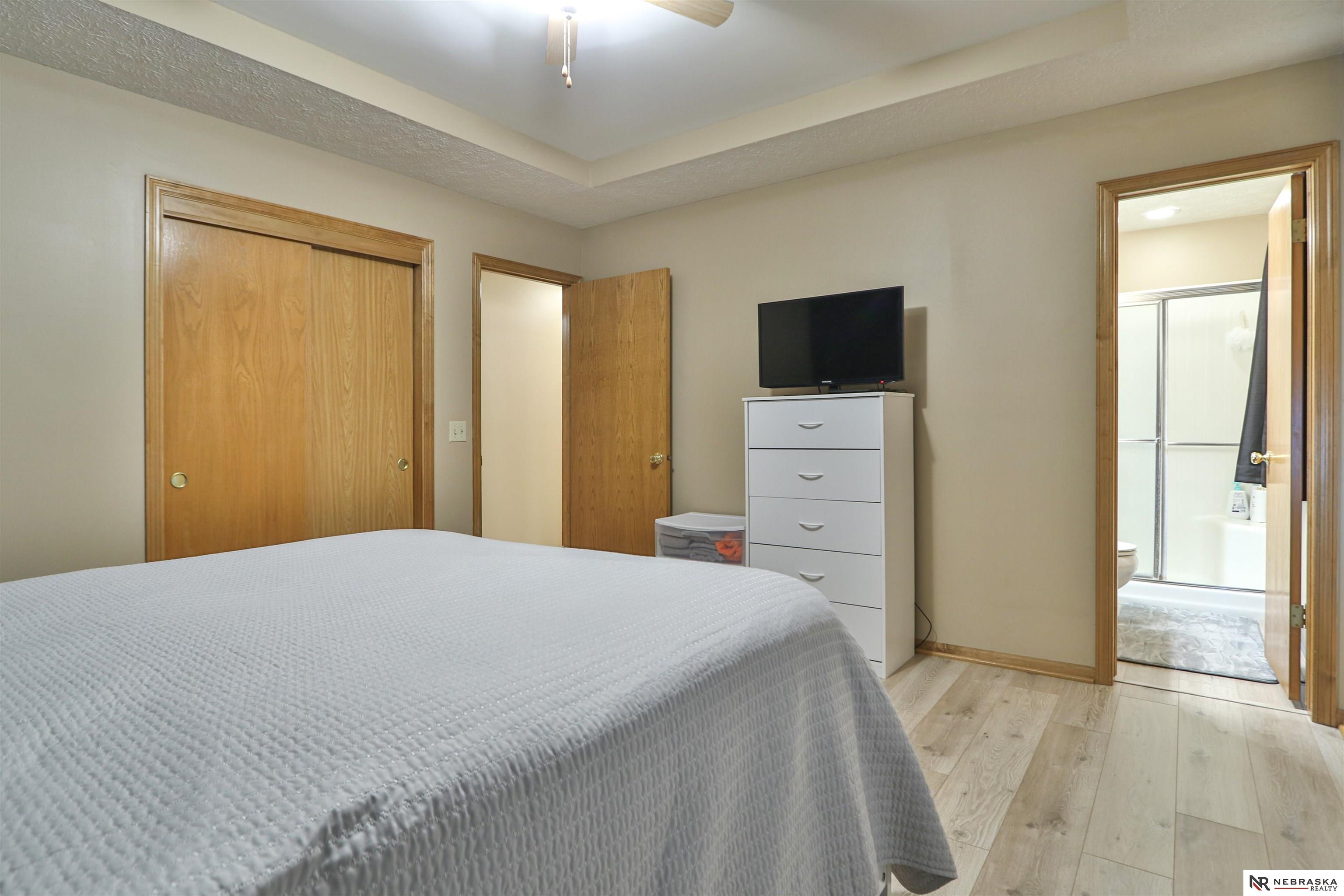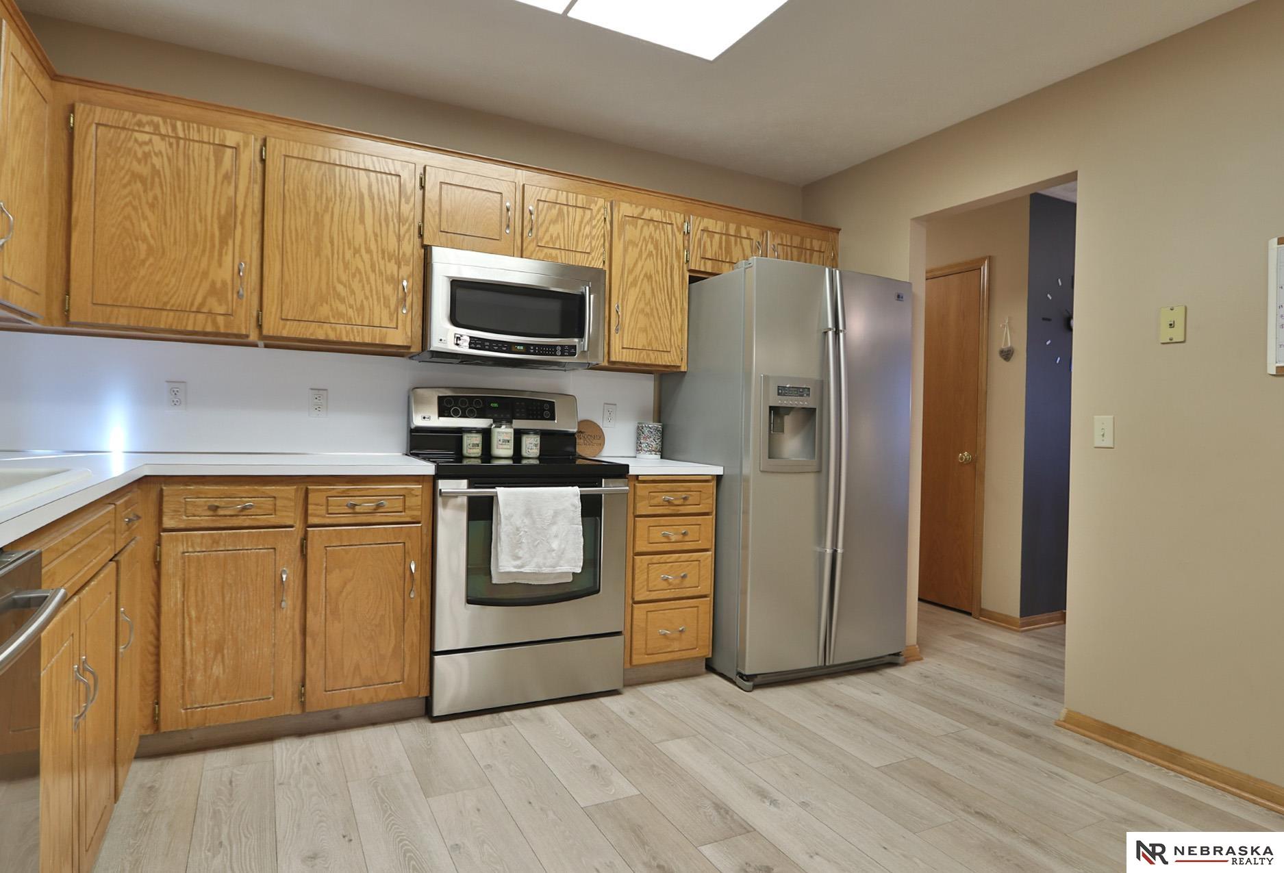 Super clean and cute house with great location on a circle with fully fenced yard, new exterior siding, new upper level windows on front of the house, newer flooring throughout, freshly painted interior, sprinkler system for the yard, custom blinds on the windows, new garage door and opener in 2020, sump pump and buried down spouts. Inviting back deck with fairly private yard, Primary bedroom with 3/4 bath, it's just cozy and ready for its new owner to enjoy. Millard Schools, easy interstate access, great shopping and all amenities so convenient. Make it yours!