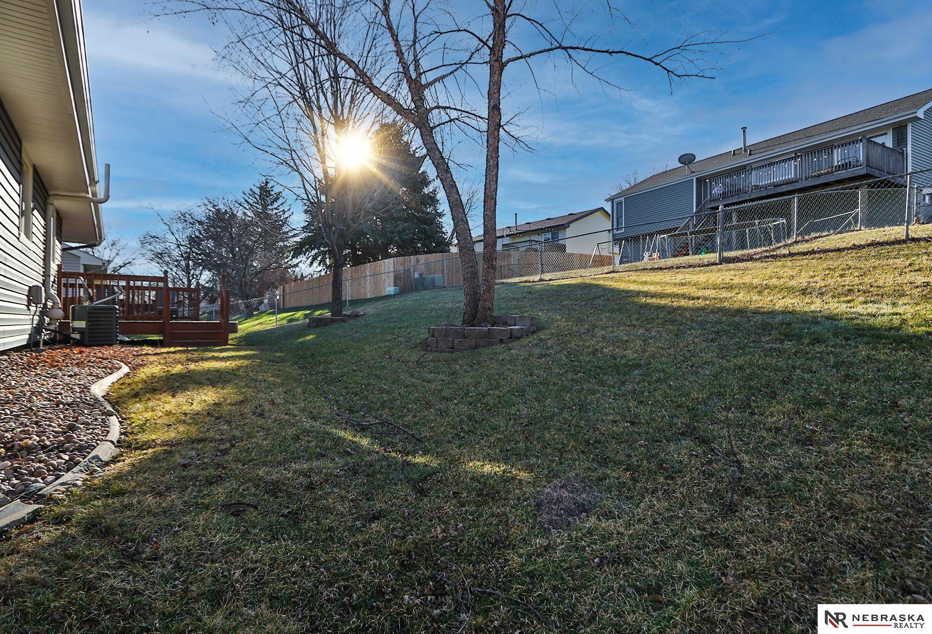Super clean and cute house with great location on a circle with fully fenced yard, new exterior siding, new upper level windows on front of the house, newer flooring throughout, freshly painted interior, sprinkler system for the yard, custom blinds on the windows, new garage door and opener in 2020, sump pump and buried down spouts. Inviting back deck with fairly private yard, Primary bedroom with 3/4 bath, it's just cozy and ready for its new owner to enjoy. Millard Schools, easy interstate access, great shopping and all amenities so convenient. Make it yours!