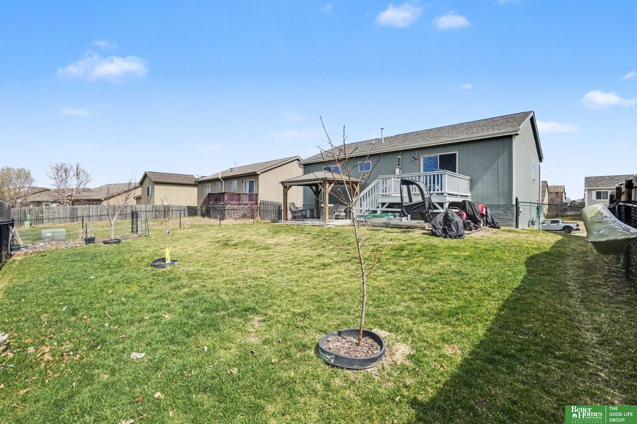 Delightful pre-inspected split-entry in Clearwater Falls awaits its new owners! This well cared for home, just minutes from Offutt Air Force Base & STRATCOM and only 15 minutes to the Omaha Metro, won't last long! This 3-bedroom, 3-bath, 2-car garage home is nestled in a highly desirable neighborhood that offers a great park, pickleball courts & walking paths! The main level features the primary bedroom with primary bathroom, two additional bedrooms, a full bathroom, dine-in kitchen, and a cozy living room with a fireplace--perfect for everyday comfort and entertaining. The lower level offers an open layout, an additional half bathroom, & laundry area, providing flexibility for a second living space, office, or recreation room. The deep garage offers ample storage options. Enter the fully fenced backyard right off the deck and enjoy outdoor living and entertaining under the additional patio with charming gazebo. RO, sprinkler, LVP, patio & gazebo all recently added and included! AMA