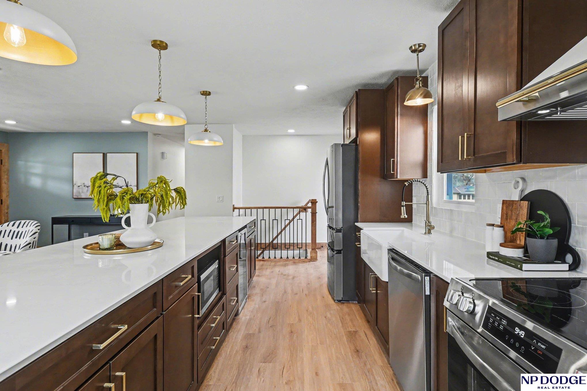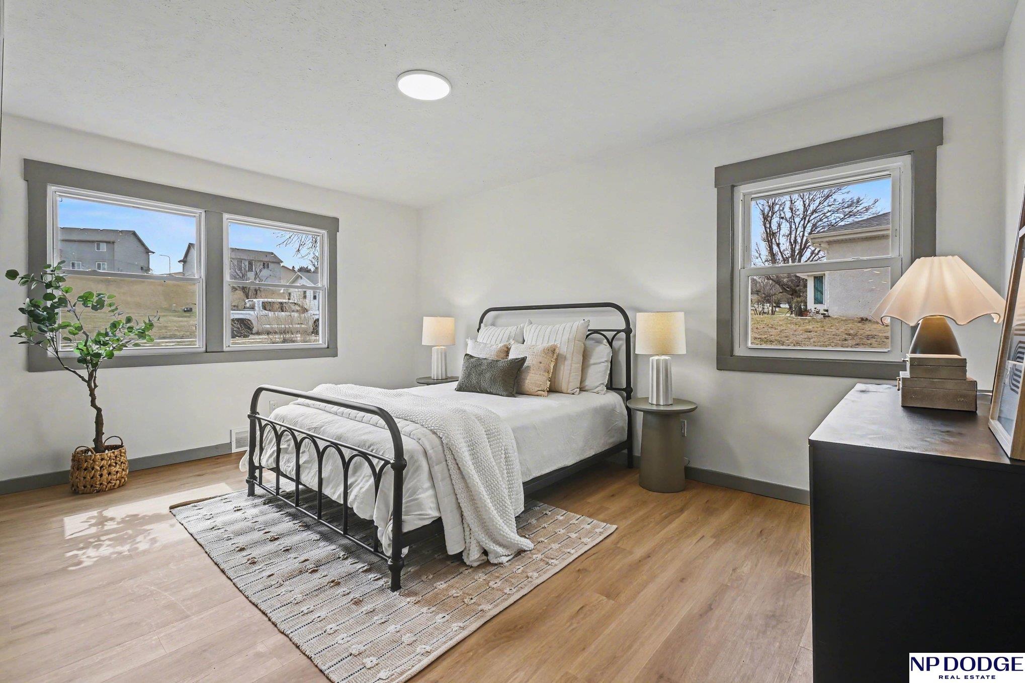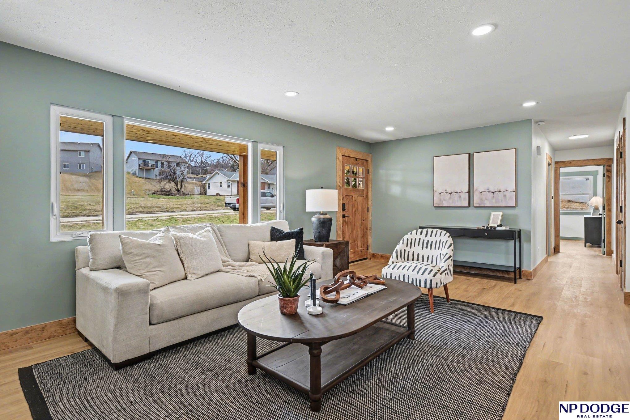 This beautifully updated 4-bedroom, 2-bath ranch sits on a spacious lot with a large yard and a detached 2-car garage. The exterior features new board and batten siding, adding great curb appeal, and the location offers convenient access to nearby parks and the Blair YMCA. Inside, you'll find a bright, open floor plan with a combined kitchen, living, and dining area, highlighted by a new gas fireplace and abundant natural light. The kitchen has been fully updated, along with the main bathroom. Enjoy new LVP flooring, fresh interior paint, and plush carpet in the finished basement. Additional features include a brand-new HVAC system and beautiful wood trim throughout. This move-in ready home offers comfort, style, and space in a desirable neighborhood. Showings start Friday March 27th.
