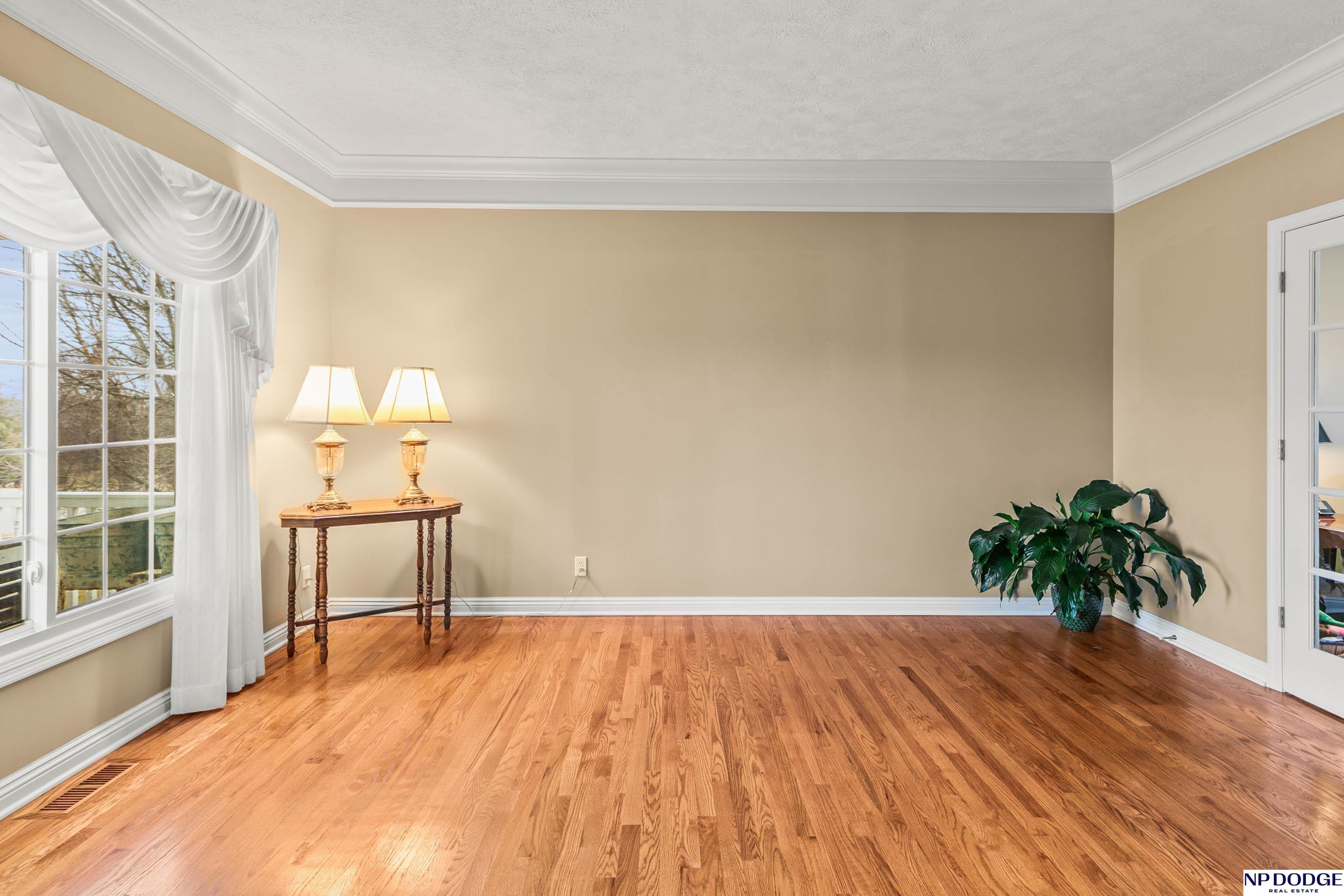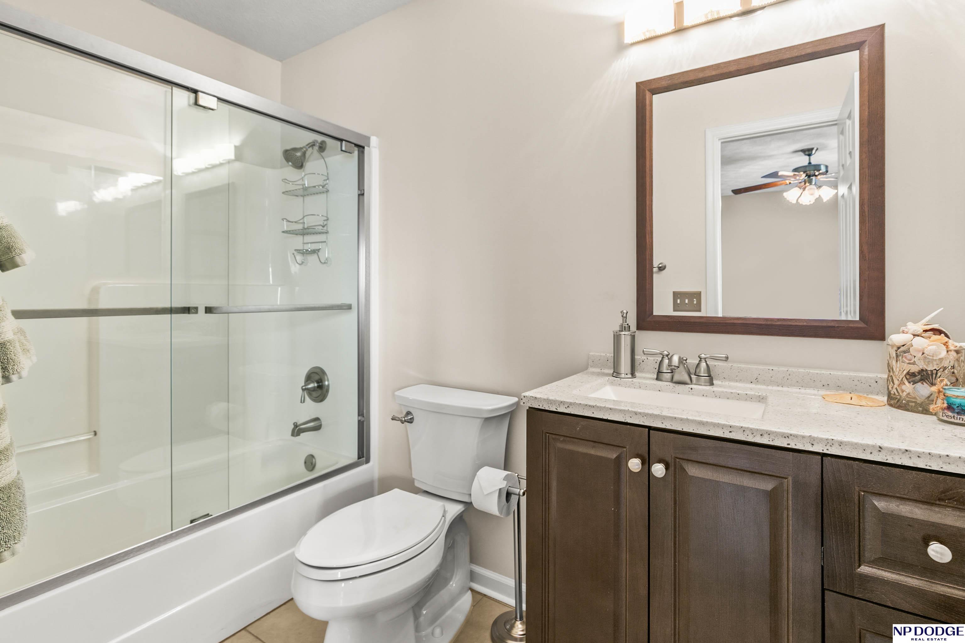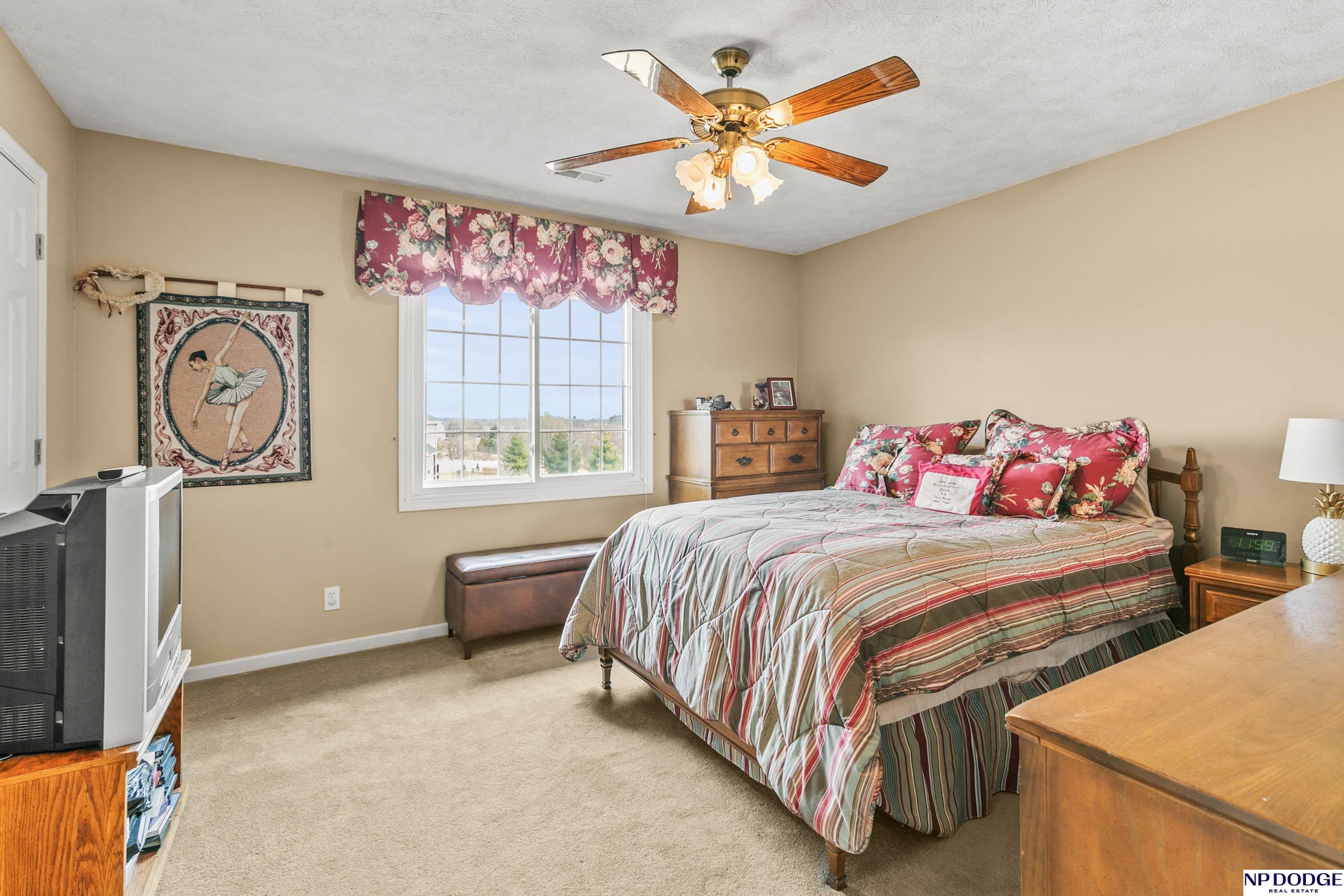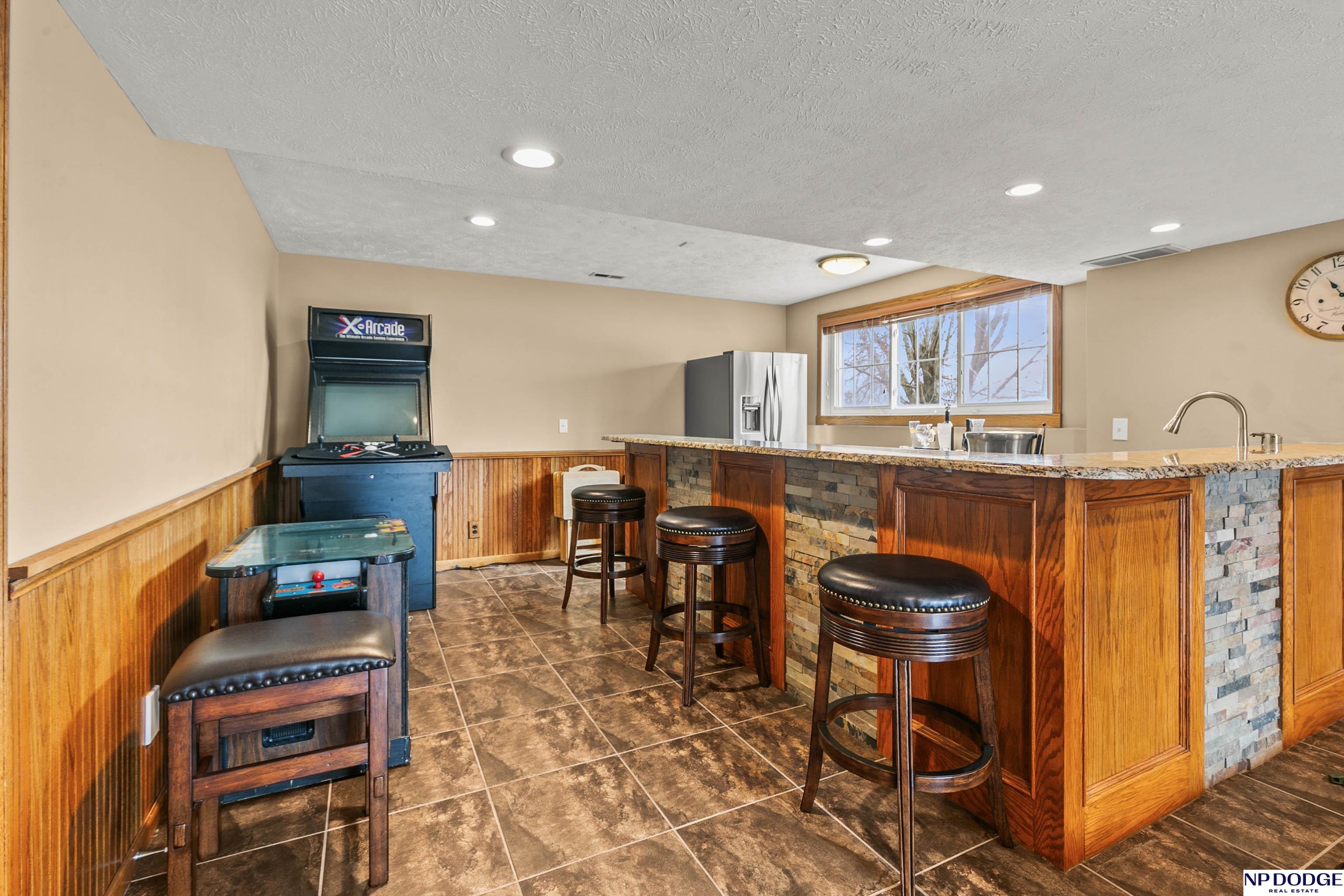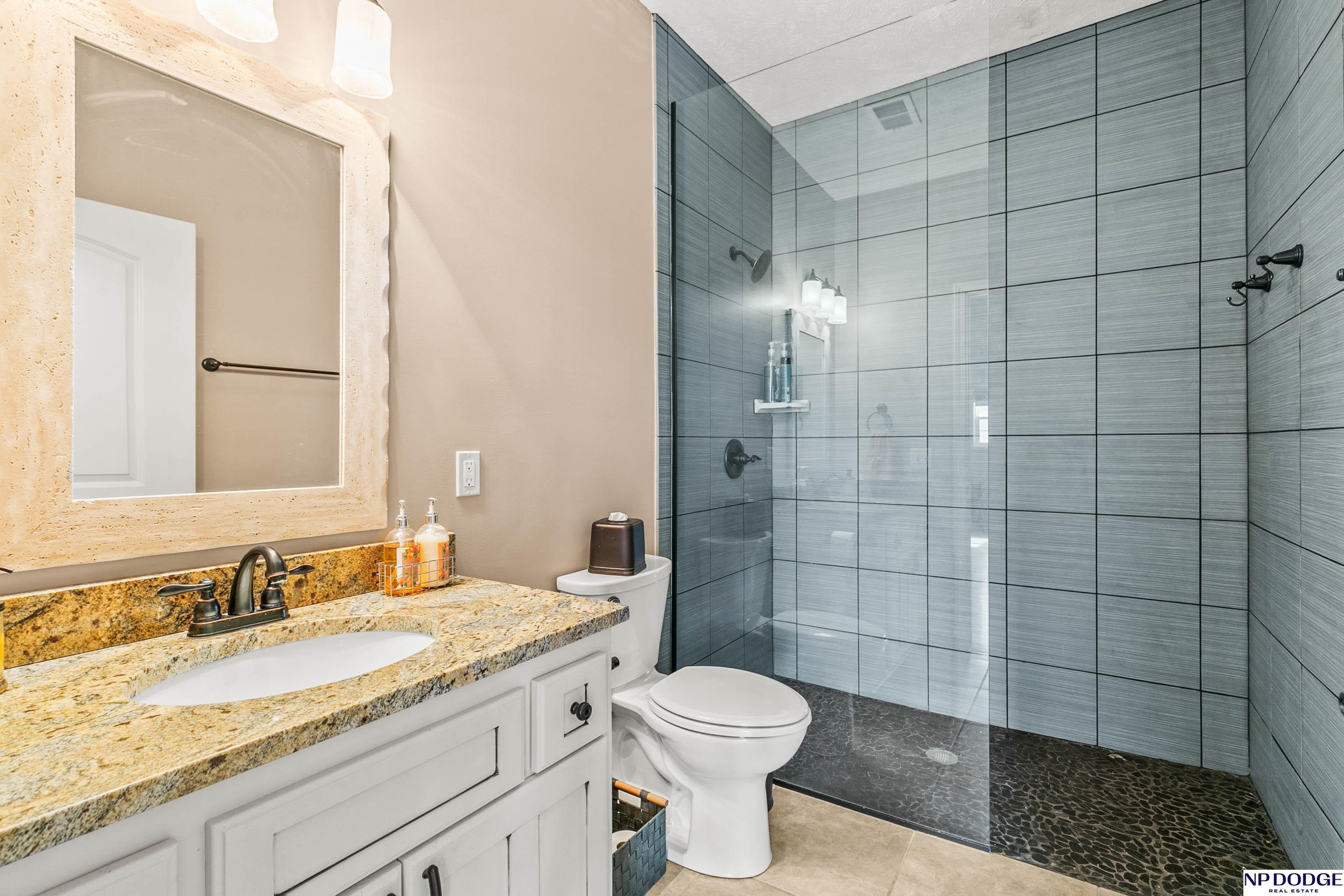 Stunning 2-story estate on 1.17 private, tree-lined acres with a true resort-style backyard designed for elevated entertaining. Enjoy a sparkling in-ground pool, expansive patio, covered hot tub, firepit, and an exceptional pool house featuring a kitchenette, Murphy bed, ¾ bath, and private covered patio. Inside, rich hardwood floors, 9’ ceilings, and a dramatic double-sided fireplace create warmth and architectural presence. The gourmet kitchen showcases high-end Viking appliances, a grand granite island, custom storage, and abundant cabinetry. Upstairs offers four spacious bedrooms including a Jack-and-Jill bath. The luxurious primary suite features a custom walk-in closet with laundry chute and a spa-inspired bath with tile shower, whirlpool tub, and dual vanities. Finished lower level includes a great room with fireplace, granite wet bar, office/playroom, ¾ bath, and private theatre with 4K projector and surround sound. New roof 2025, HVAC 2019. Near Offutt AFB.