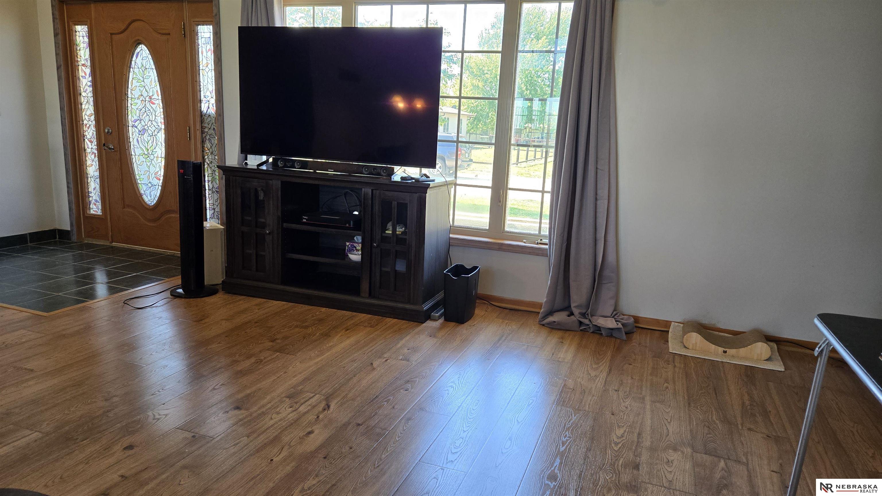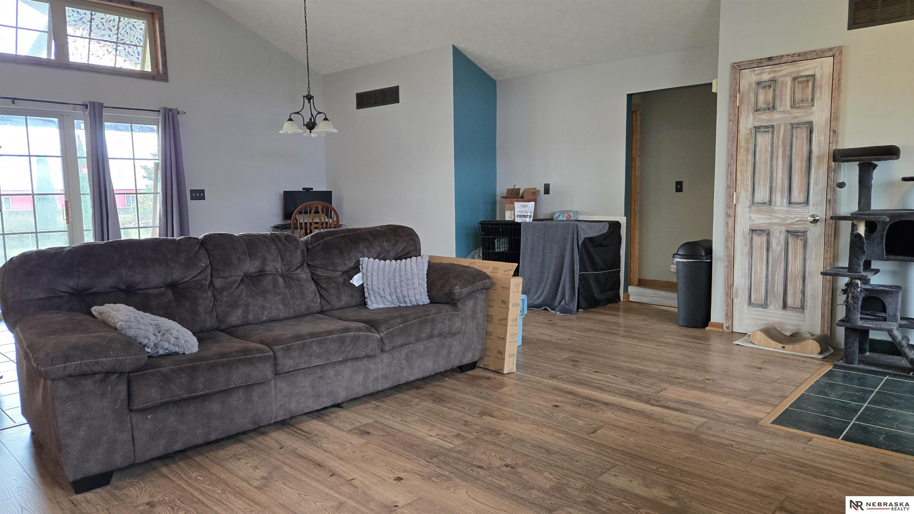 Come check out this great home that welcomes you with an open floor plan, located in Hallam, for small town living at its best. The main living area features beautiful newer wood flooring with vaulted ceilings in the kitchen, dining area, and living room. It has plenty of windows to allow in light for an open feel. The oversized laundry room/bathroom combo is conveniently located on the main level off the kitchen. Enjoy the peaceful backyard views with no neighbors behind, while sitting under your covered patio. Downstairs you will find a good sized family room, bedroom, bathroom, and a bonus room that can be used as an office or nonconforming bedroom. There is also plenty of storage areas.