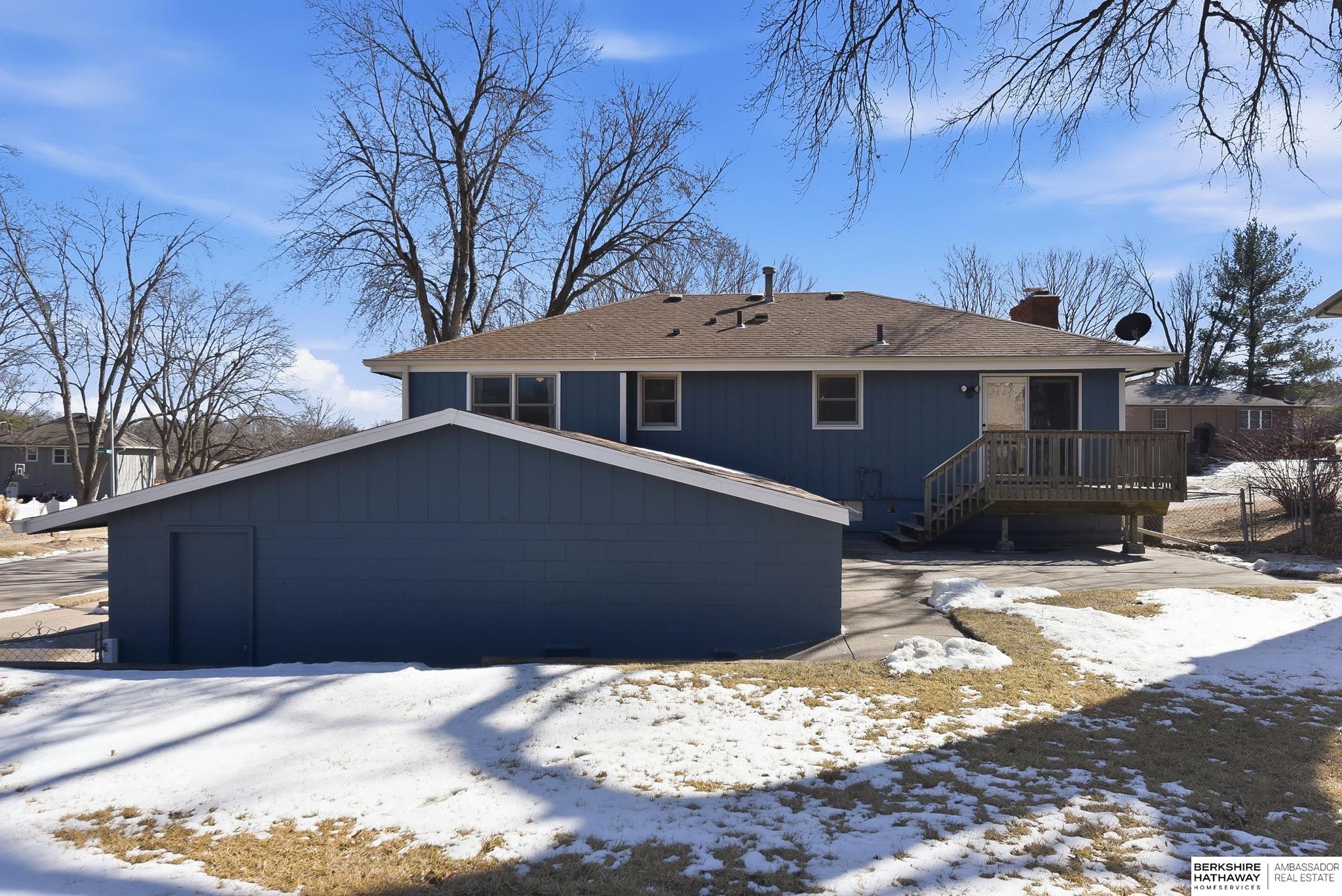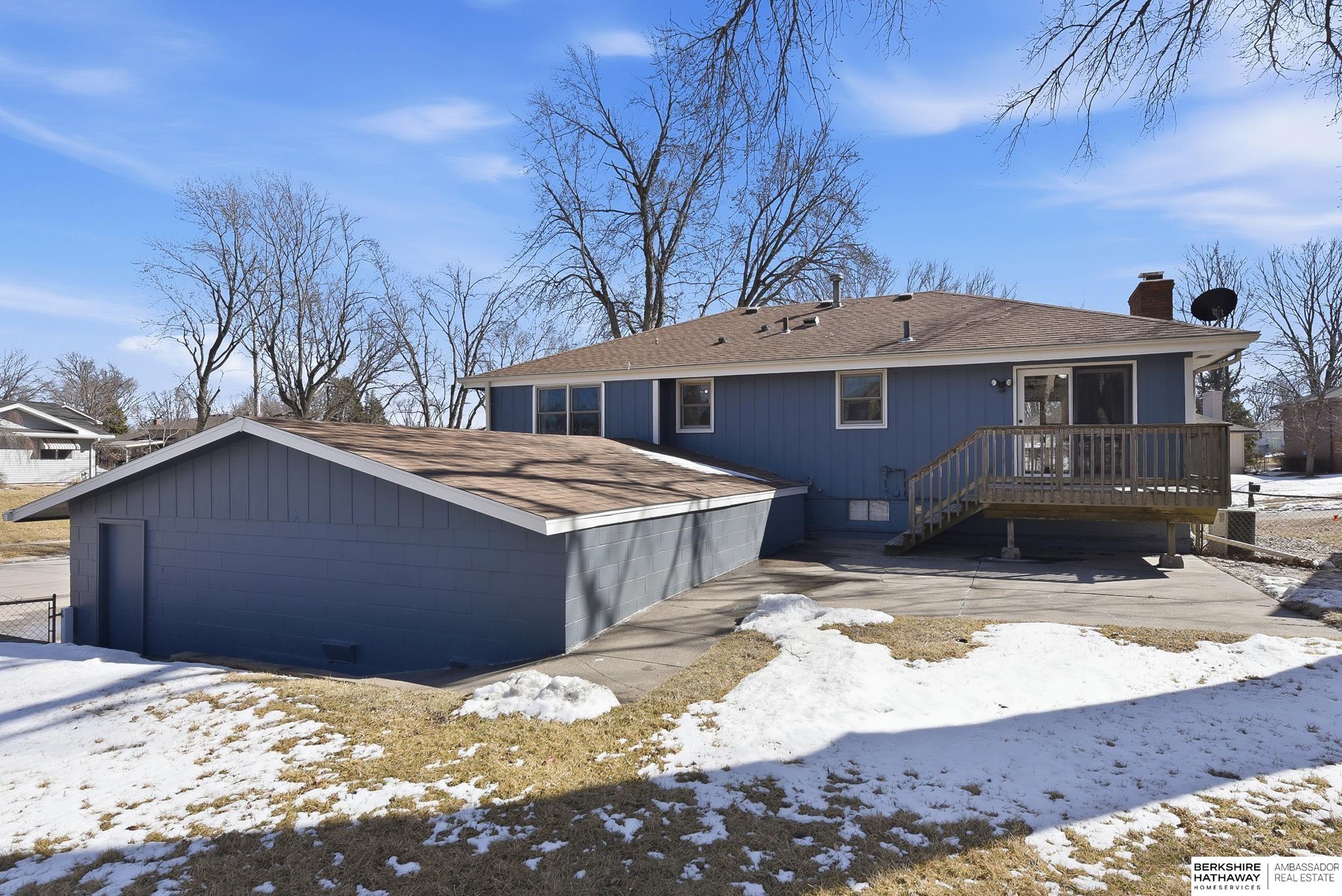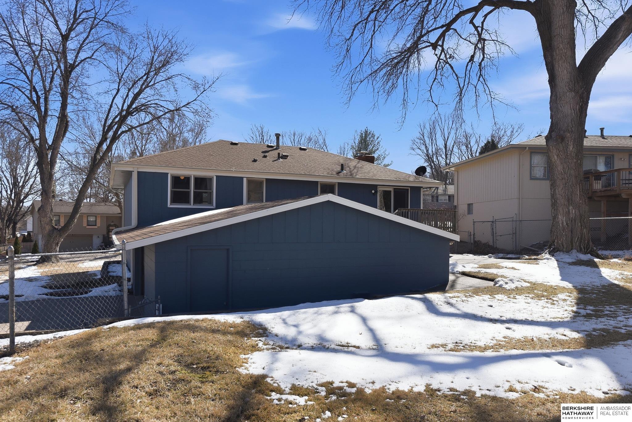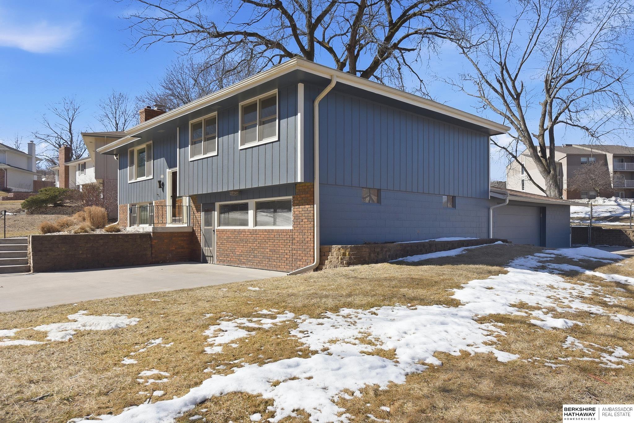 Welcome to this beautifully maintained home offering comfort, space, and an unbeatable location near the Dodge Street corridor, neighborhood trails, park, and pickleball court. The well-appointed kitchen features abundant cabinetry, tile flooring, under cabinet lighting, and a spacious dining area that opens to the inviting living room. The primary suite includes an updated ¾ bath with tile shower, while two additional main-floor bedrooms provide flexibility and generous space. The finished lower level expands your living area with a large family room with wet bar, fireplace, rec room with exterior access, private office with dual closets, and utility room with ½ bath and shower plumbing. Enjoy outdoor living on the spacious deck and patio overlooking the fully fenced yard plus sprinkler system. Oversized 2.5-car garage plus third-car parking pad and an additional driveway for ample off-street parking complete this exceptional home.
