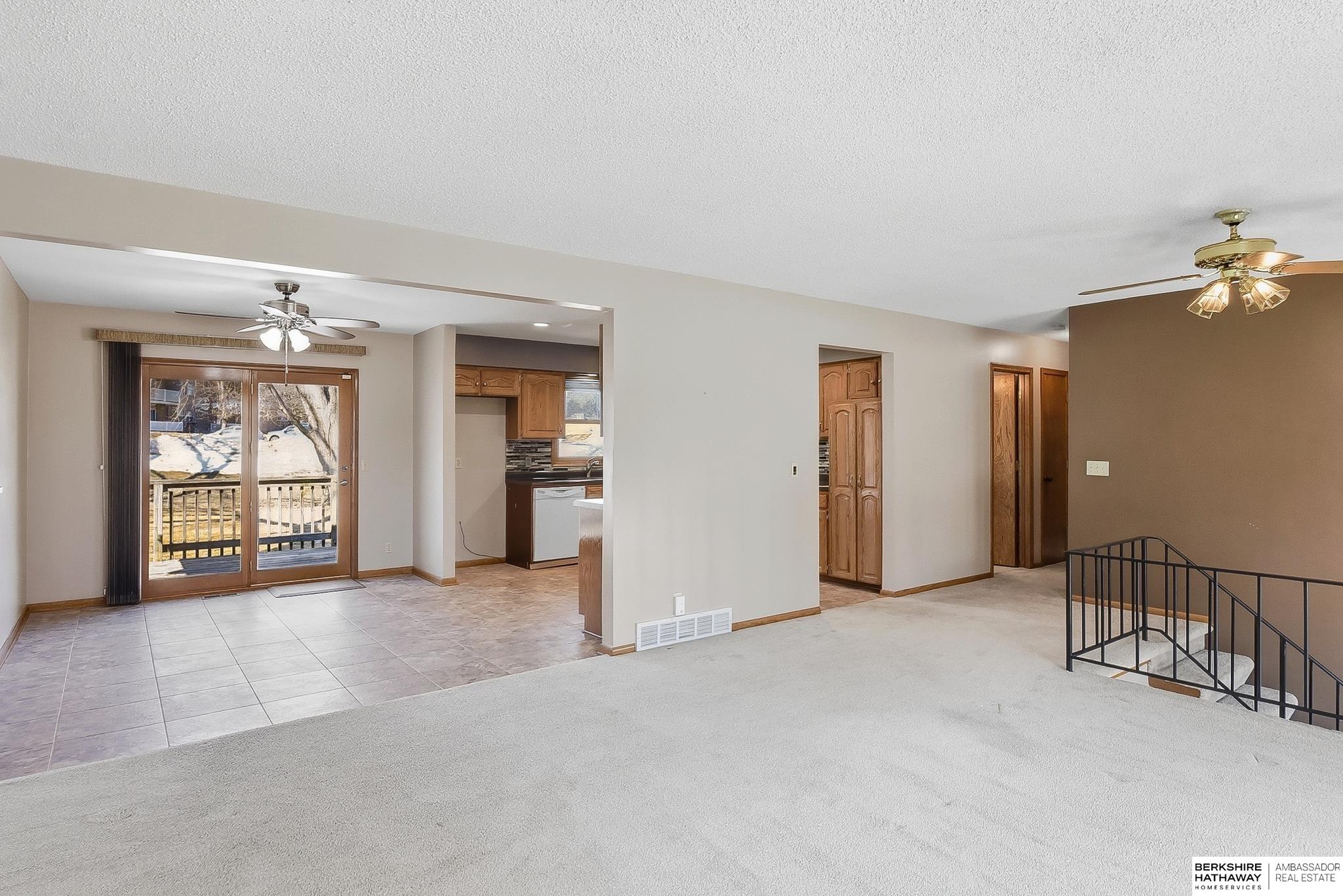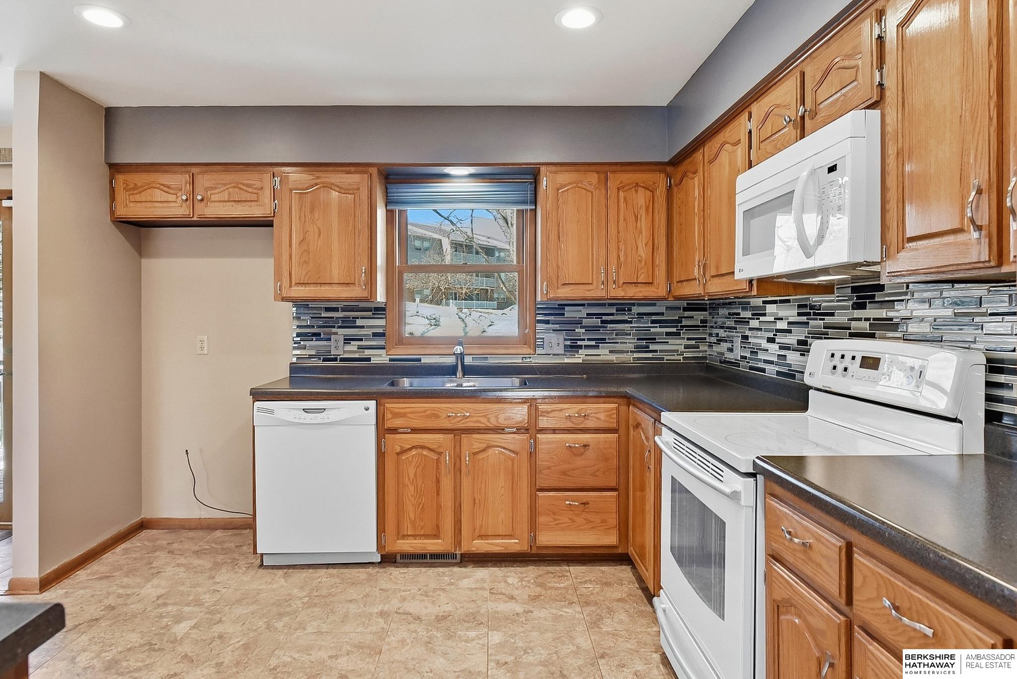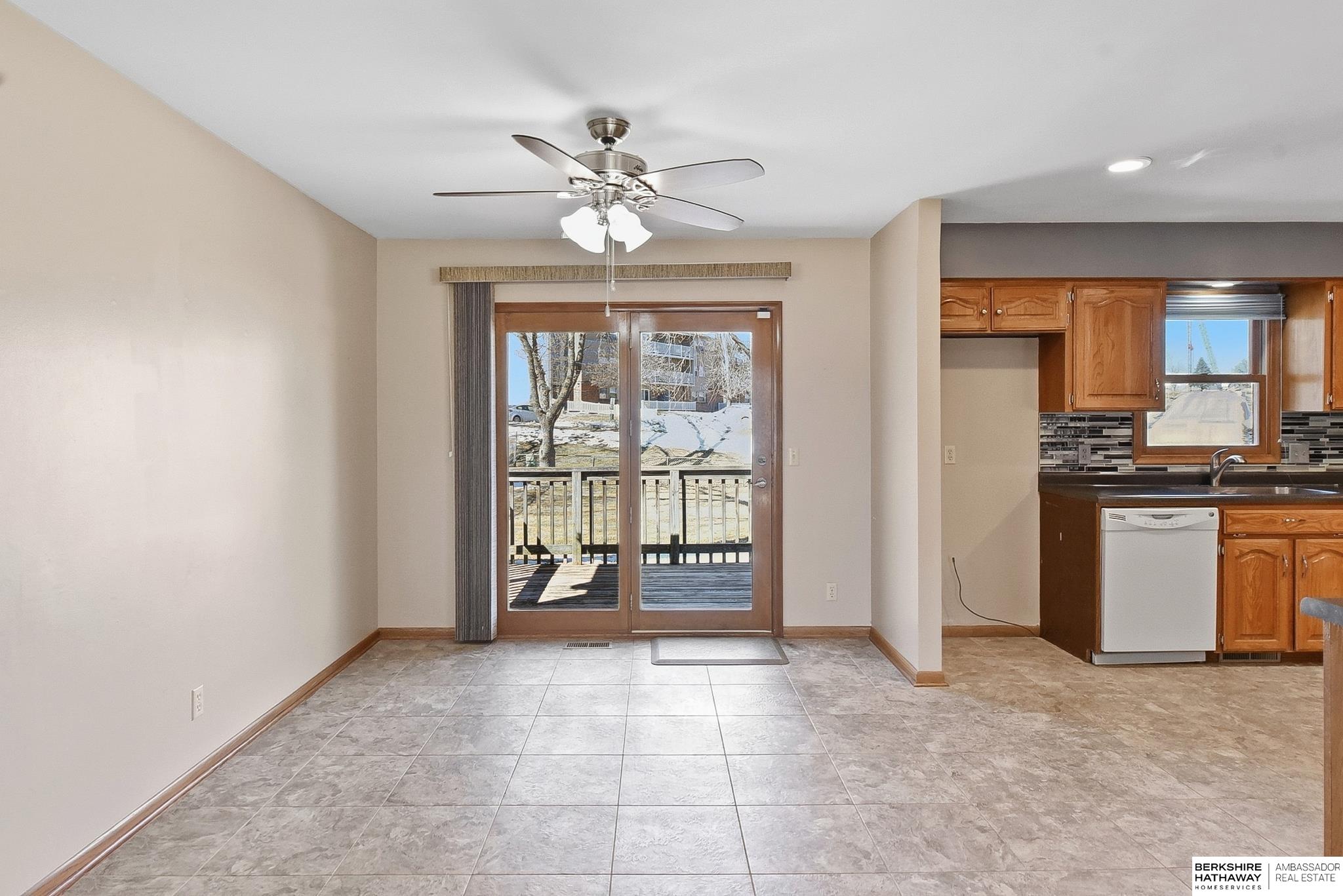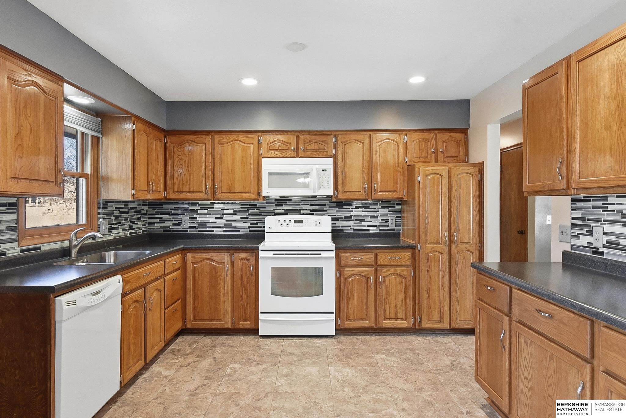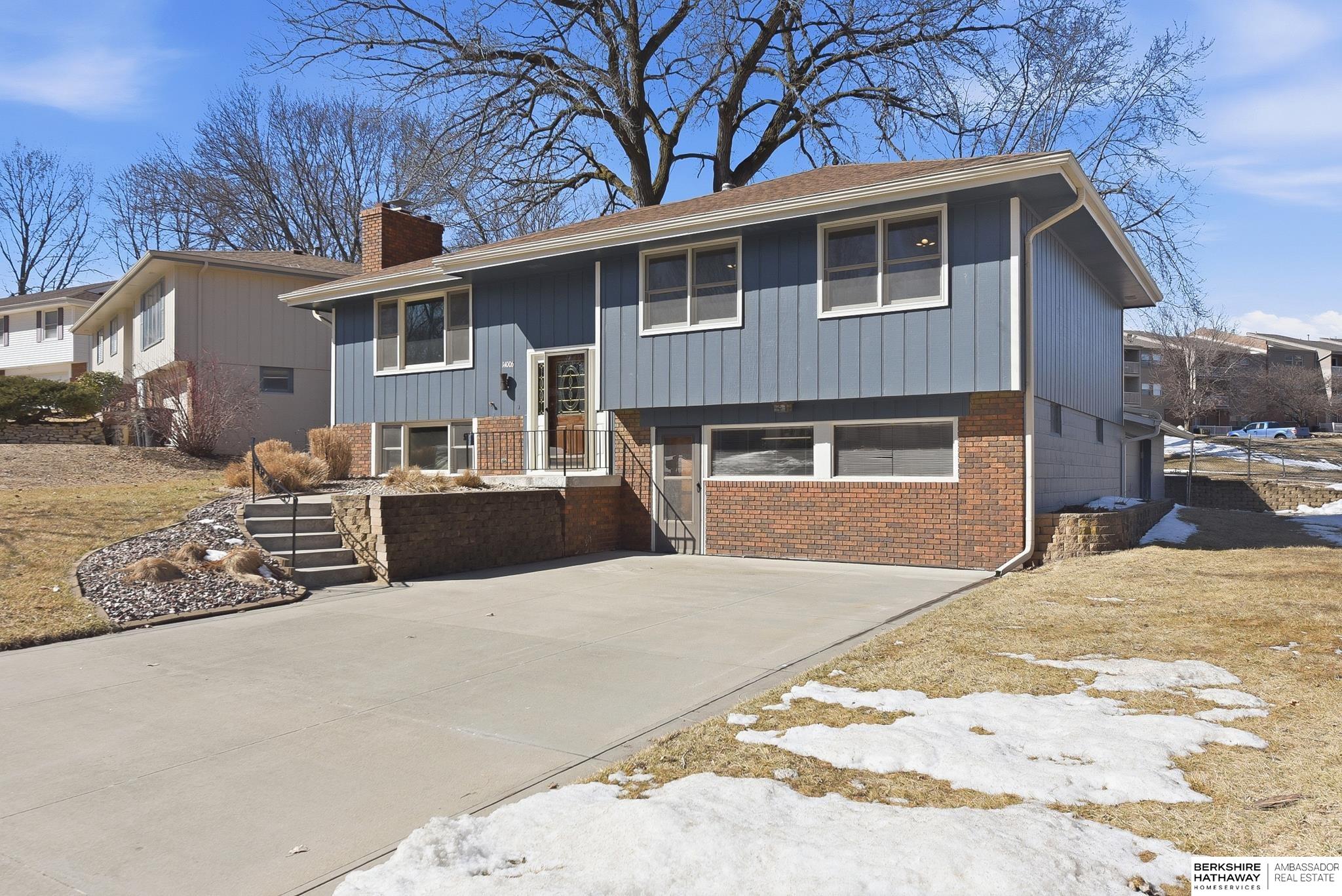 Welcome to this beautifully maintained home offering comfort, space, and an unbeatable location near the Dodge Street corridor, neighborhood trails, park, and pickleball court. The well-appointed kitchen features abundant cabinetry, tile flooring, under cabinet lighting, and a spacious dining area that opens to the inviting living room. The primary suite includes an updated ¾ bath with tile shower, while two additional main-floor bedrooms provide flexibility and generous space. The finished lower level expands your living area with a large family room with wet bar, fireplace, rec room with exterior access, private office with dual closets, and utility room with ½ bath and shower plumbing. Enjoy outdoor living on the spacious deck and patio overlooking the fully fenced yard plus sprinkler system. Oversized 2.5-car garage plus third-car parking pad and an additional driveway for ample off-street parking complete this exceptional home.