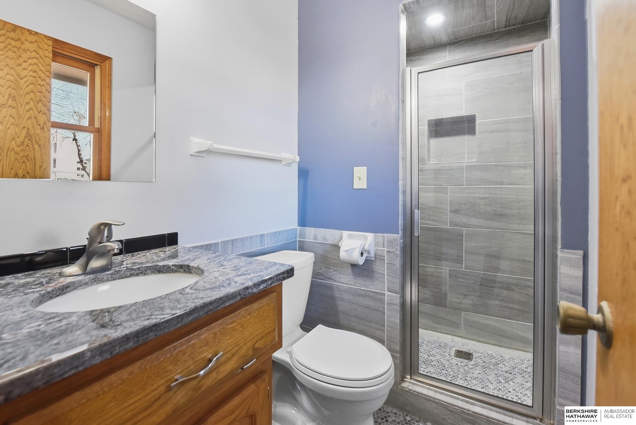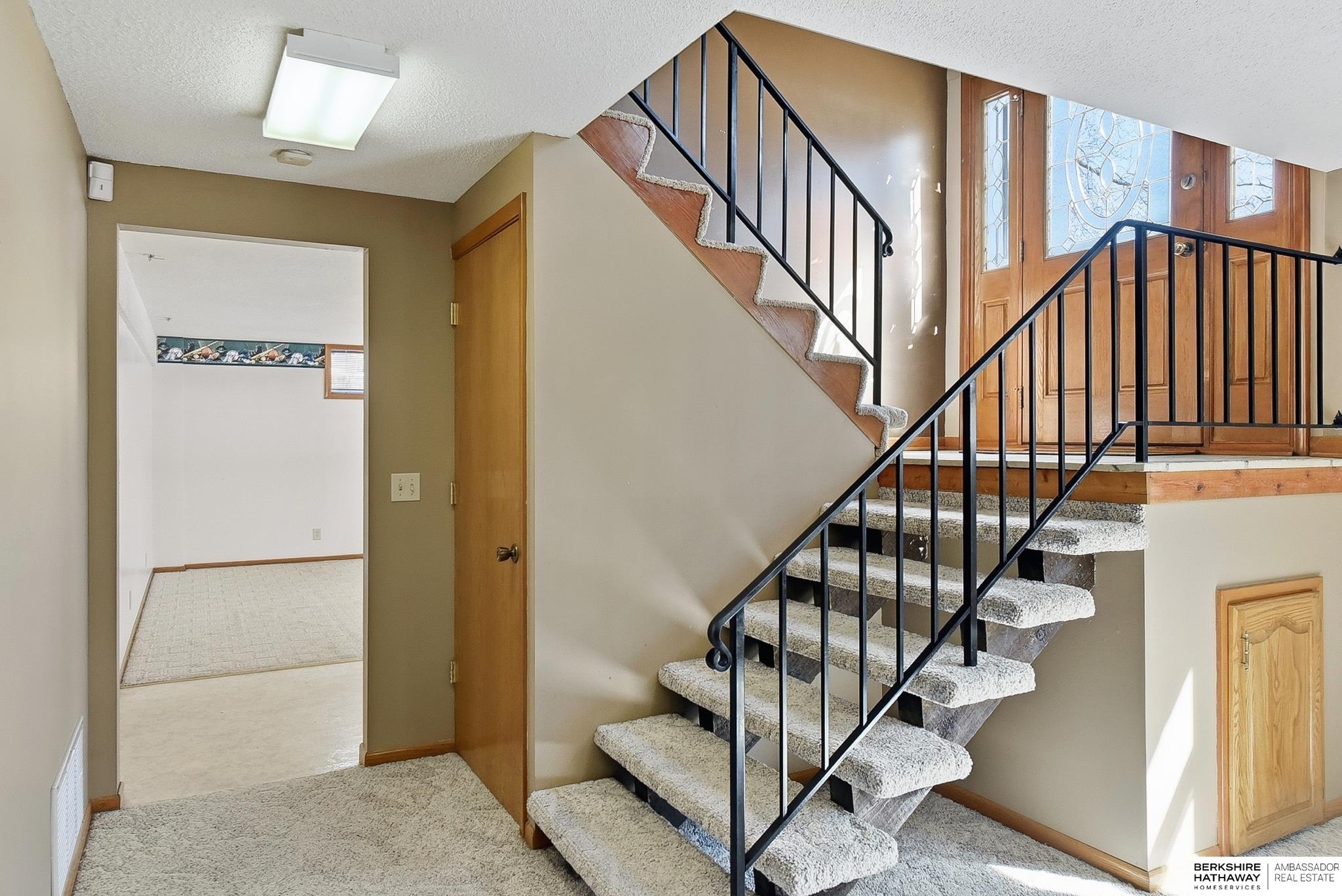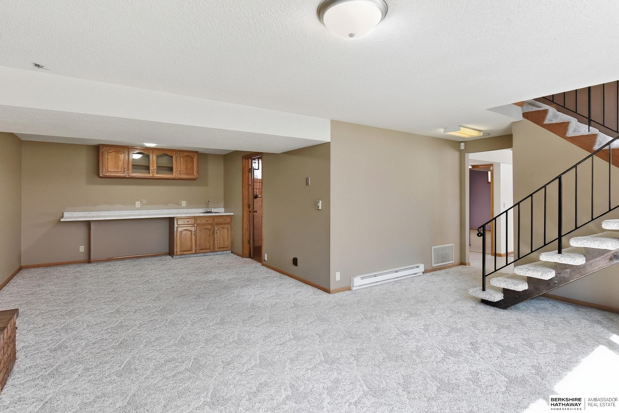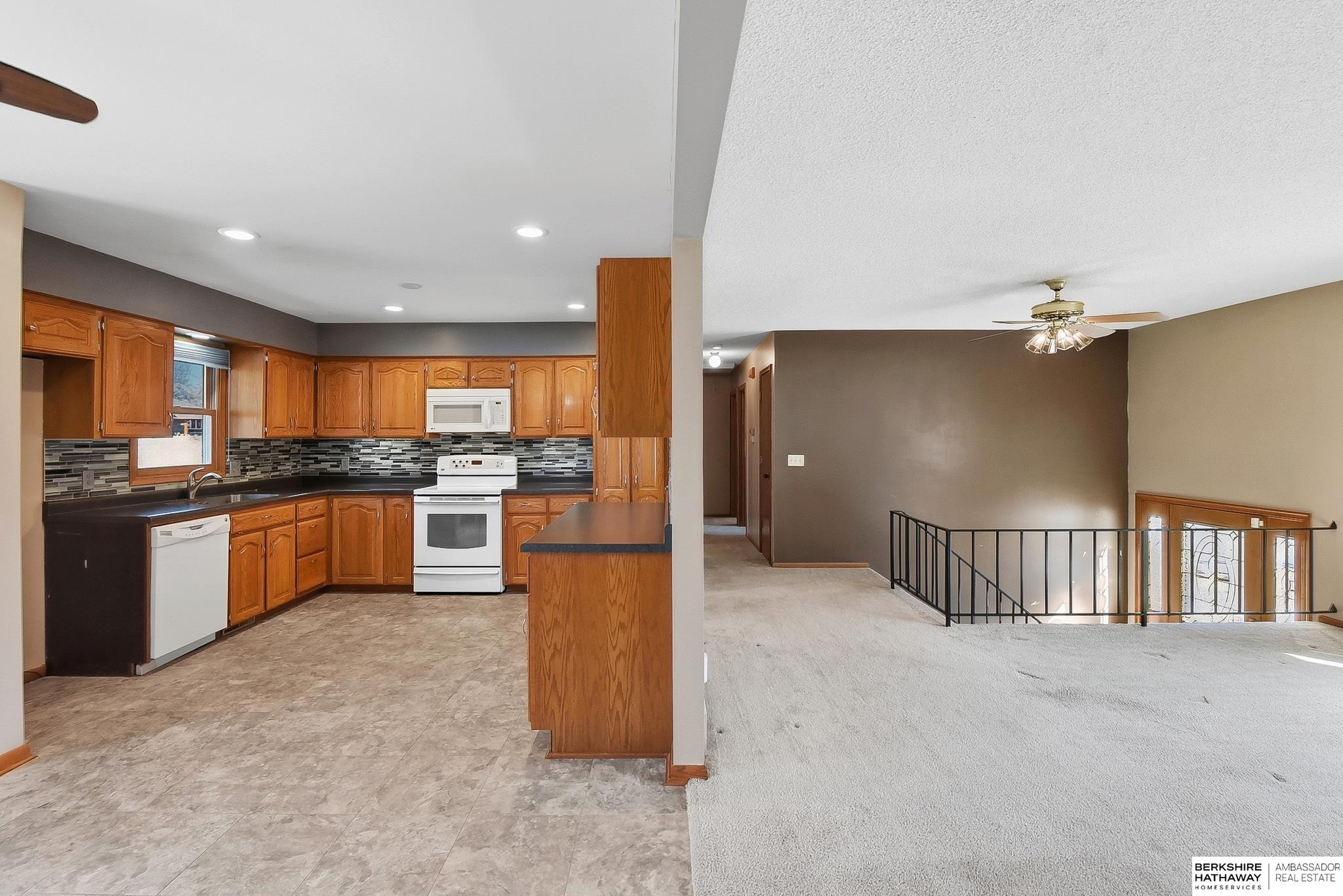 Welcome to this beautifully maintained home offering comfort, space, and an unbeatable location near the Dodge Street corridor, neighborhood trails, park, and pickleball court. The well-appointed kitchen features abundant cabinetry, tile flooring, under cabinet lighting, and a spacious dining area that opens to the inviting living room. The primary suite includes an updated ¾ bath with tile shower, while two additional main-floor bedrooms provide flexibility and generous space. The finished lower level expands your living area with a large family room with wet bar, fireplace, rec room with exterior access, private office with dual closets, and utility room with ½ bath and shower plumbing. Enjoy outdoor living on the spacious deck and patio overlooking the fully fenced yard plus sprinkler system. Oversized 2.5-car garage plus third-car parking pad and an additional driveway for ample off-street parking complete this exceptional home.