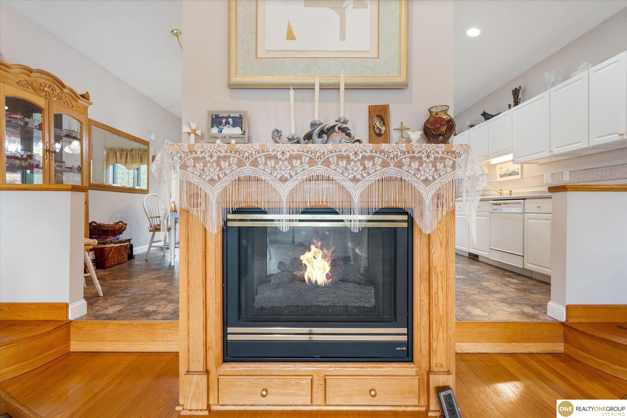 Step inside & you'll immediately notice the unique layout featuring a double-sided gas fireplace positioned between the living room & kitchen--cozy charm with modern flair. The kitchen is white, bright, and offers plenty of cabinets, counter space, and the LR & Kitchen have high ceilings that make the entire main floor feel spacious and open. The main level laundry, abundant closets, and thoughtful storage add everyday convenience. Downstairs you'll find 1 BR plus a nonconforming BR & bathroom. The family room area has big windows that let in natural light-so bright it doesn't even feel like a basement! This beauty is located right by Pleasant View Park & Pond w/a walking trail, gorgeous pond views, and front-row seating for the town's top-rated 4th of July fireworks show!