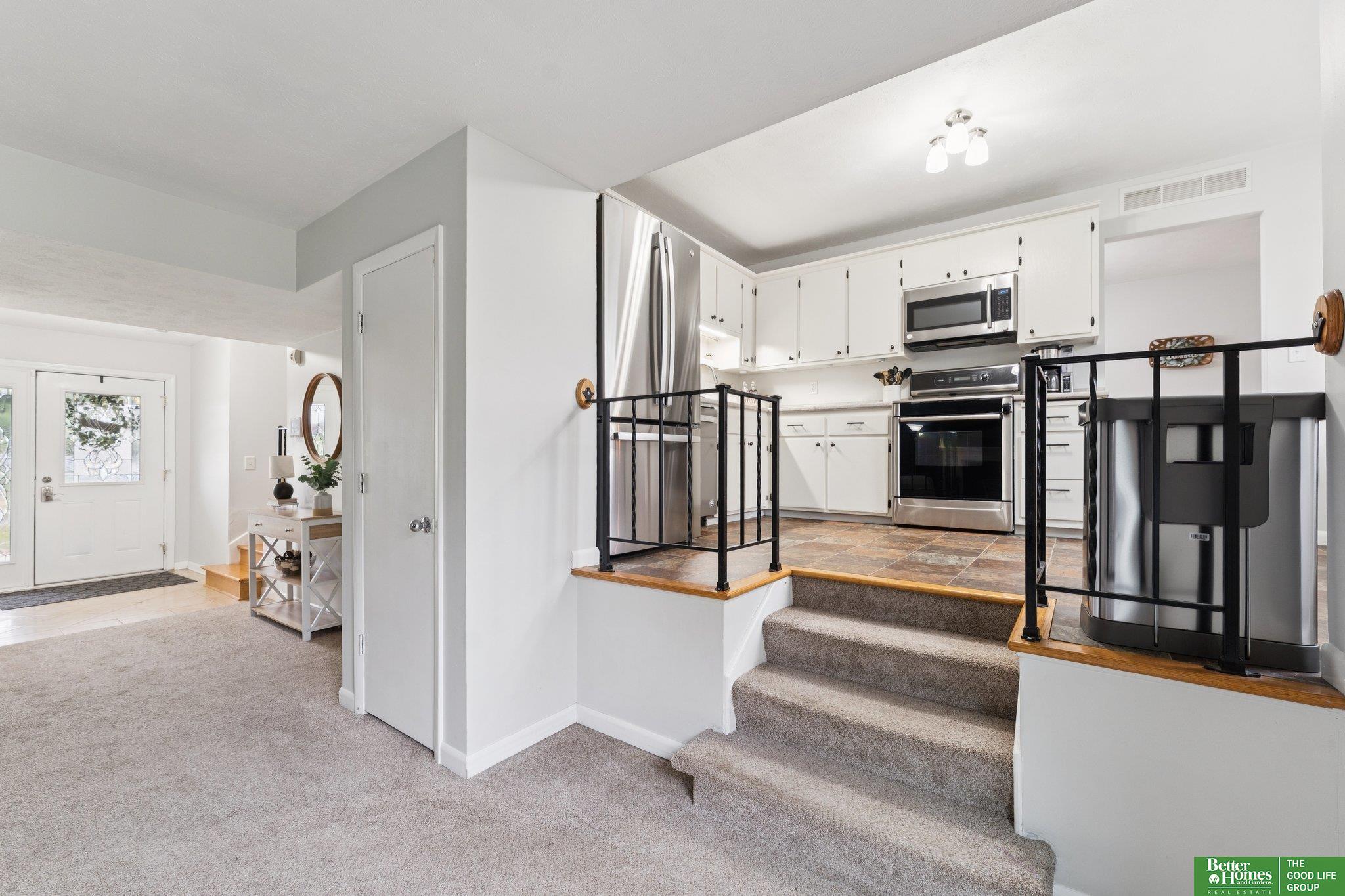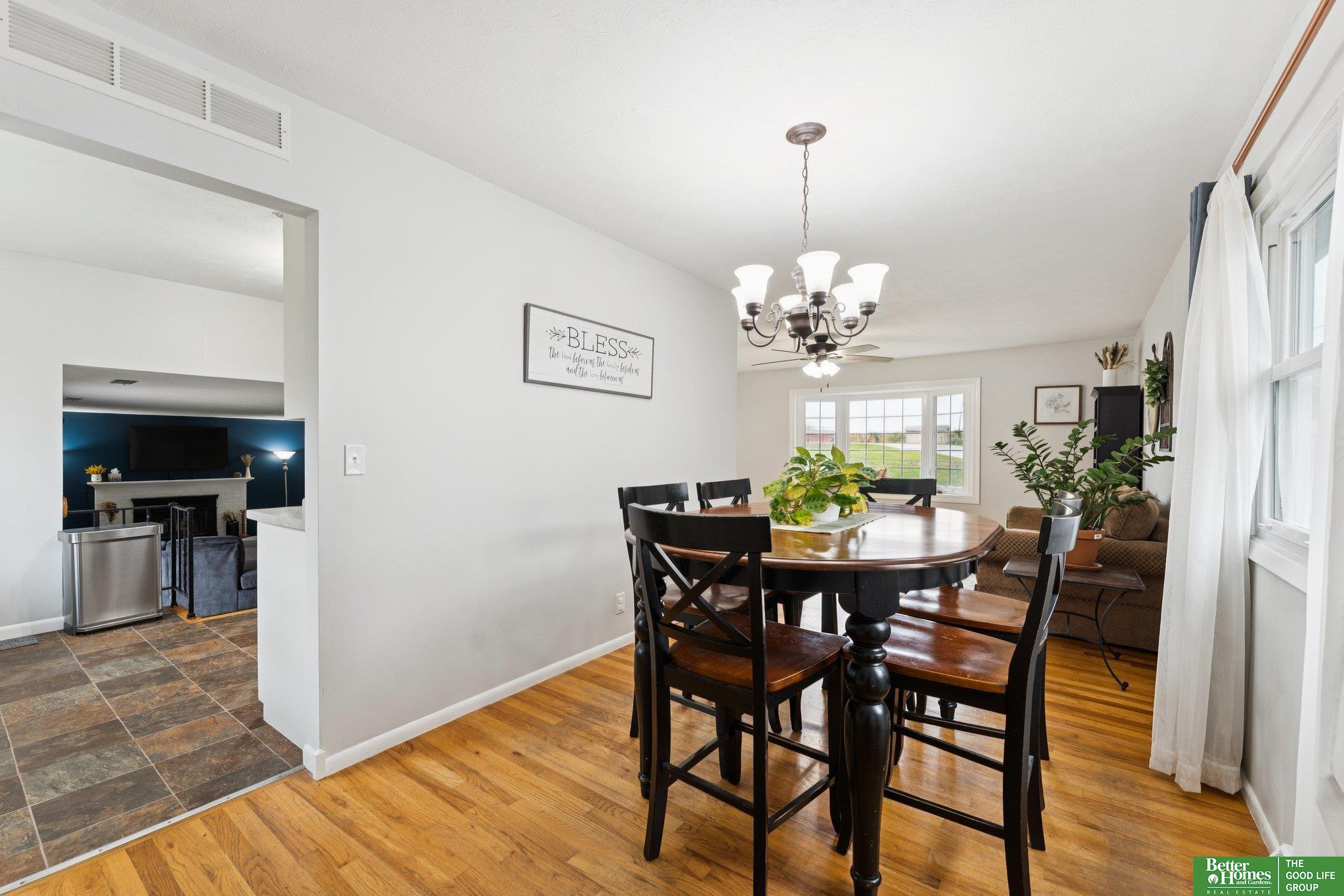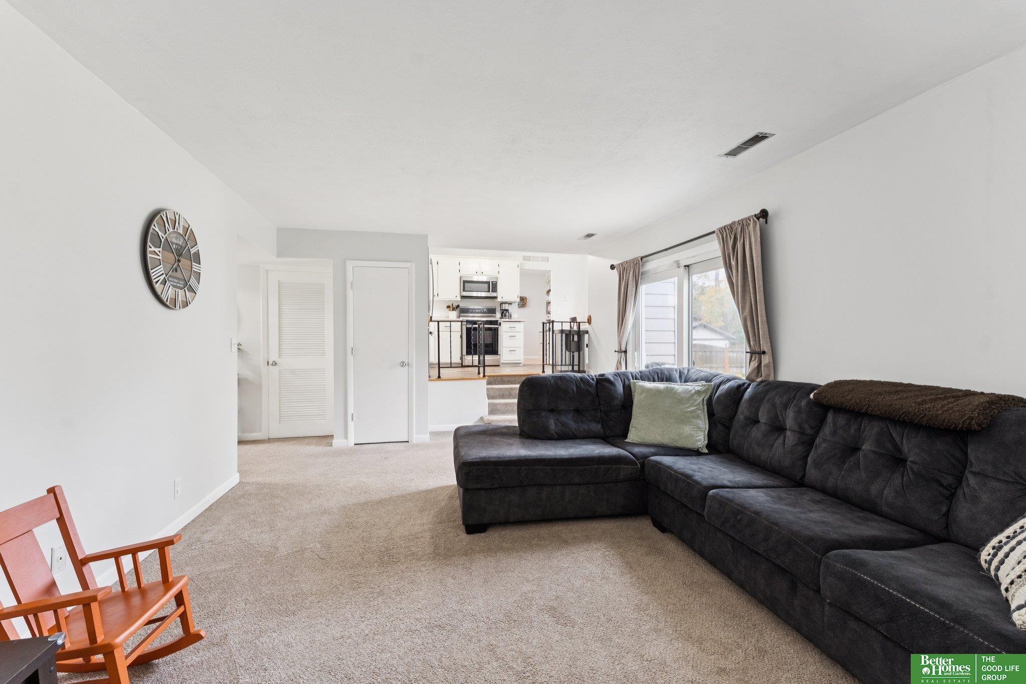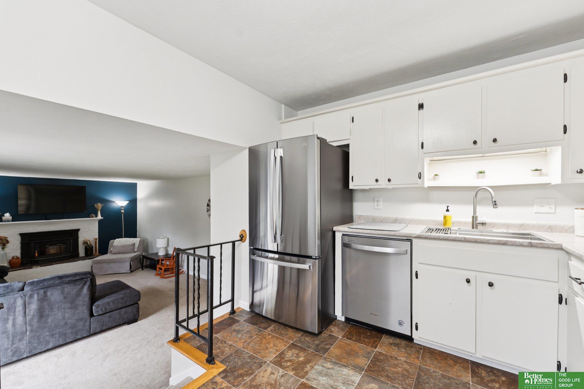 3 bed 3 bath Bellevue tri-level located in Twin Ridge - walking distance to the elementary school and located close to Offutt AFB, Bellevue University, shopping & dining. From the tiled entry, step up into a bright living room showcasing beautiful hardwood floors & bay windows. The formal dining room flows easily into the kitchen equipped with stainless steel appliances & ample cabinet space that overlooks a sizable family room with a cozy fire place & sliding door access to the backyard. Upstairs, you'll find a nice primary bedroom offering an updated en suite 3/4 bath & walk-in closet. Two secondary bedrooms and a full bath complete the second level. The large basement flex room would make a great exercise room, playroom, or office. The basement laundry area offers plenty of storage. Outside, enjoy the patio and fully fenced flat backyard with a storage shed to store your yard equipment. AMA