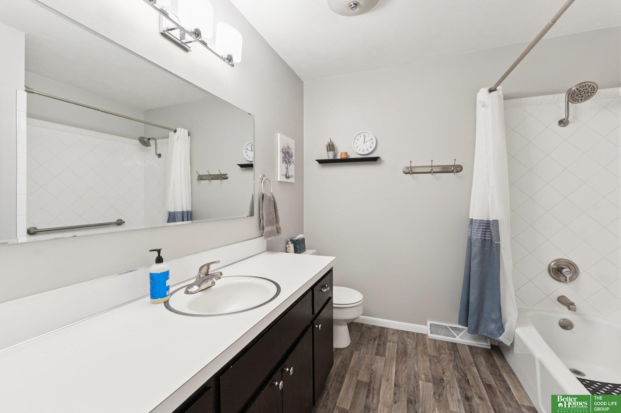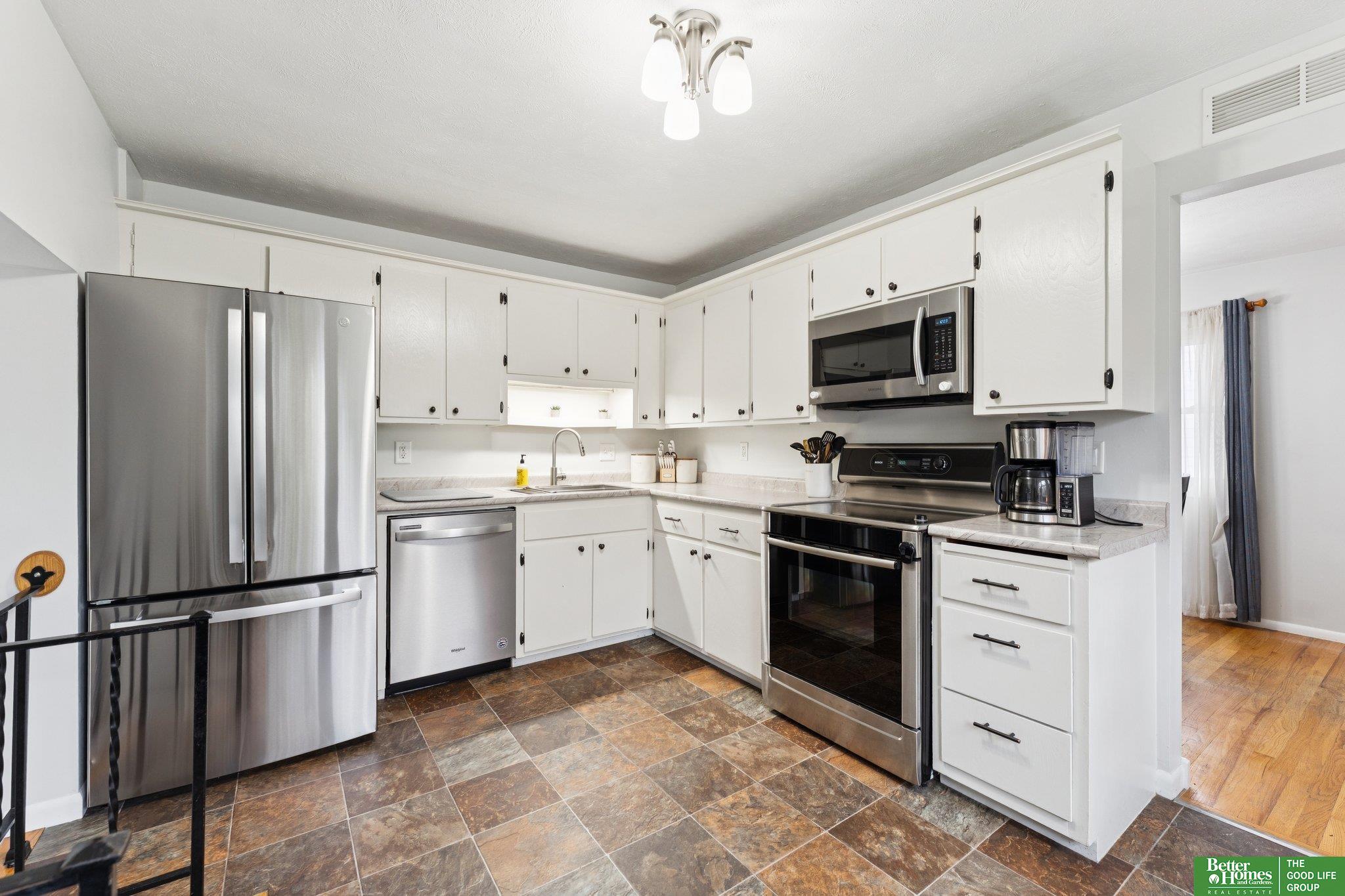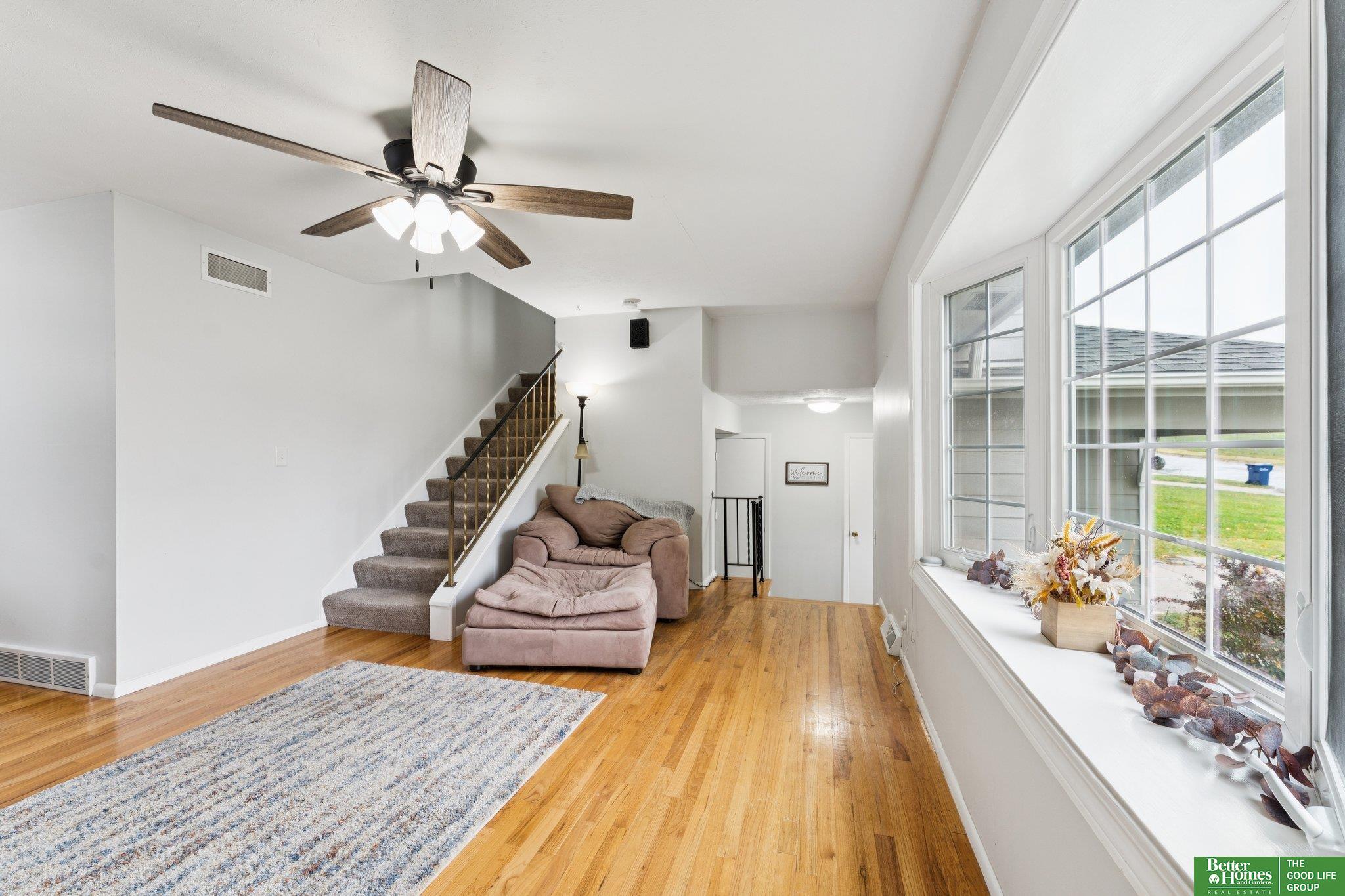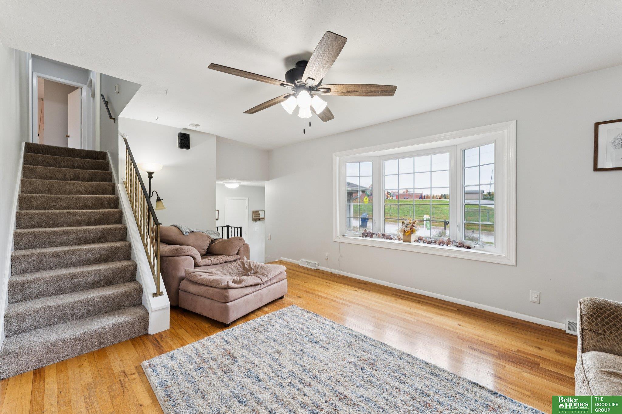 3 bed 3 bath Bellevue tri-level located in Twin Ridge - walking distance to the elementary school and located close to Offutt AFB, Bellevue University, shopping & dining. From the tiled entry, step up into a bright living room showcasing beautiful hardwood floors & bay windows. The formal dining room flows easily into the kitchen equipped with stainless steel appliances & ample cabinet space that overlooks a sizable family room with a cozy fire place & sliding door access to the backyard. Upstairs, you'll find a nice primary bedroom offering an updated en suite 3/4 bath & walk-in closet. Two secondary bedrooms and a full bath complete the second level. The large basement flex room would make a great exercise room, playroom, or office. The basement laundry area offers plenty of storage. Outside, enjoy the patio and fully fenced flat backyard with a storage shed to store your yard equipment. AMA