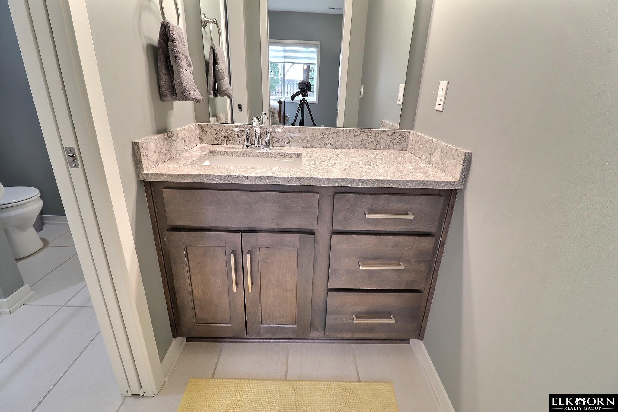 Welcome to this stunning west-facing walkout ranch in Windgate Ranch, offering existing home perks with beautiful updates! Step inside an open floor plan featuring new LVP flooring on the main and new carpet in all upstair bedrooms.The kitchen shines with new backsplash and modern lighting over the large quartz island. The family room showcases new window coverings and a striking wood slat accent to highlight the TV. The primary bedroom boasts a stylish geometric wall and updated fixtures. Downstairs, the lower level offers a large open area and cozy living space with new custom shiplap wall perfect for movie nights and entertaining friends and family. Extra touches include a new vanity in the half bath and shiplap in the drop zone. Step outside to a NEW ROOF and freshly stained deck. For peace of mind, this home is pre-inspected and includes a home warranty. Evident pride of ownership ensures this home is move-in ready and better than new! Agent has equity.