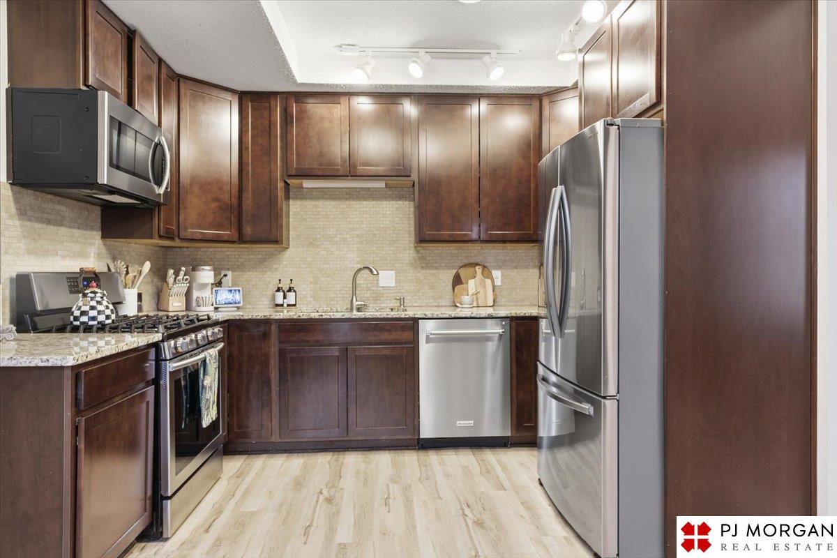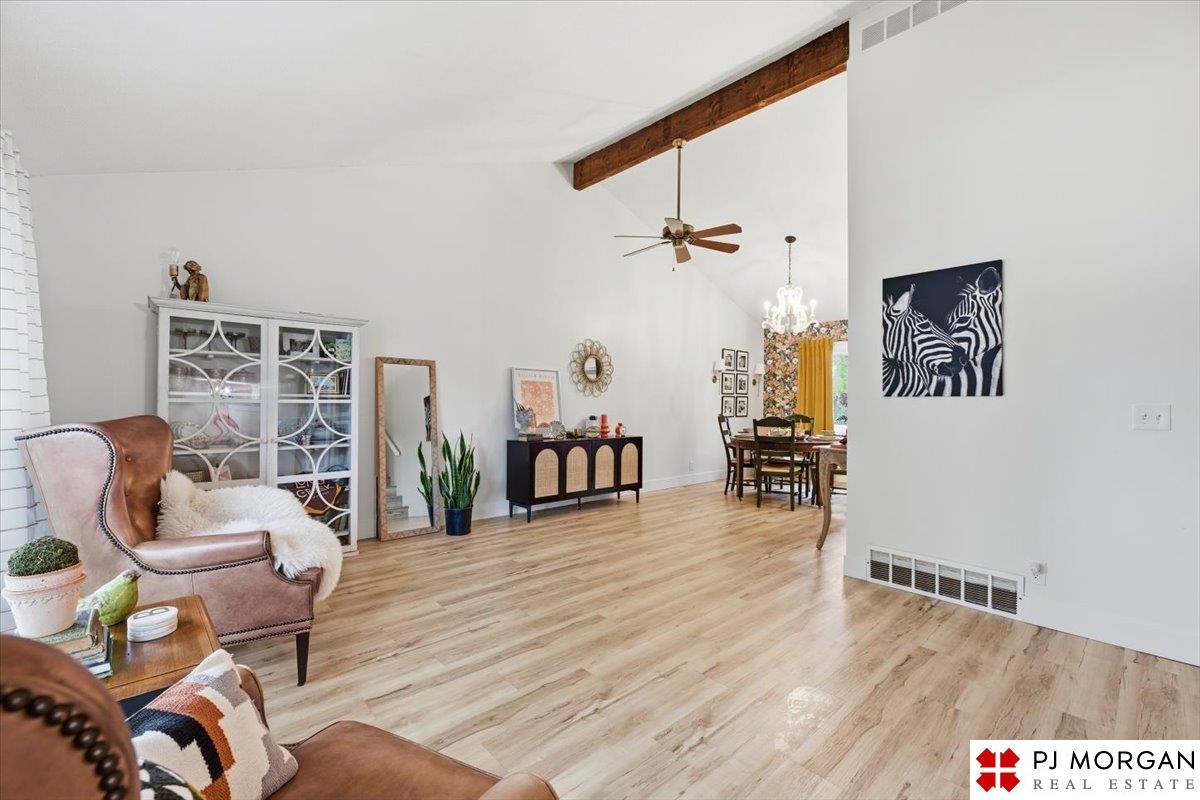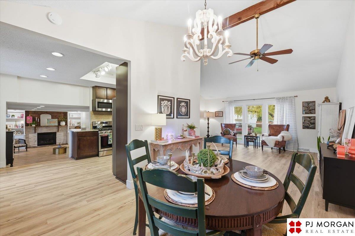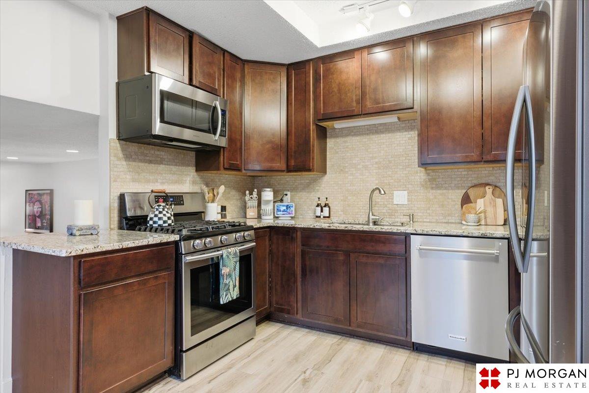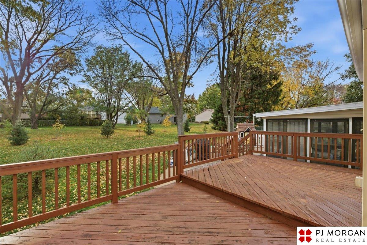 Contract pending. Back up offers only. Stunning move-in ready tri-level! This home has been updated from top to bottom. Enjoy beautiful LVP flooring throughout, a spacious living room with large front windows, and a dining area with vaulted ceilings. The remodeled kitchen features granite countertops, dark cabinetry, and stainless steel appliances. Fridge new in ’21 and dishwasher in ’25. The cozy family room centers around a white-washed stacked-stone fireplace and opens to a lovely screened-in porch through French doors added in ’22. Main floor half bath and laundry room. Upstairs offers 3 bedrooms with fans. Primary has 2 closets. Both baths remodeled with tile showers and floors. Finished lower level provides additional living space for entertainment or play. Outdoors, relax on the deck or patio overlooking a beautifully maintained yard with sprinkler system. Additional updates include sewer line (’22), HVAC (’20), and water heater (’20). Millard Schools and easy access to Dodge.