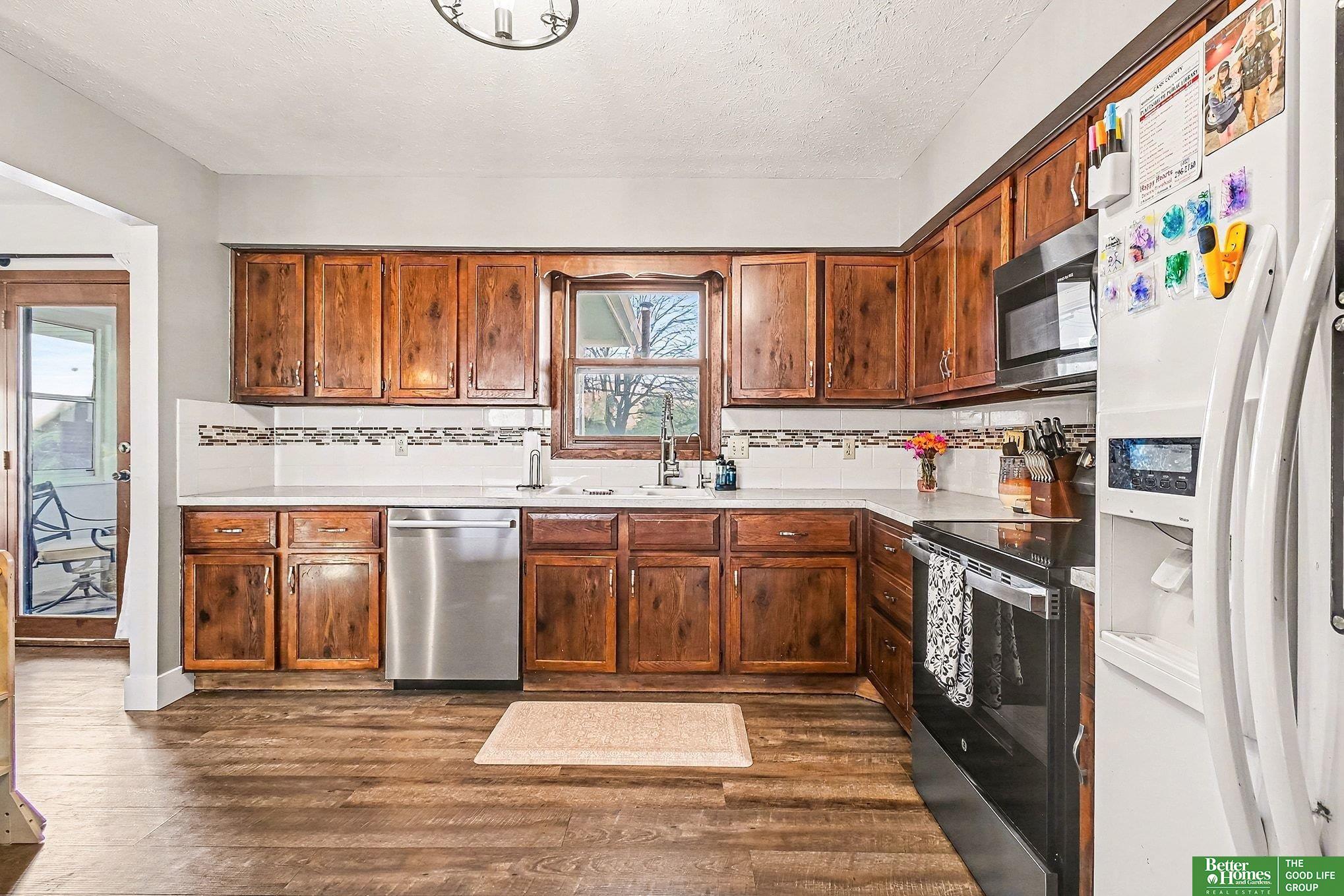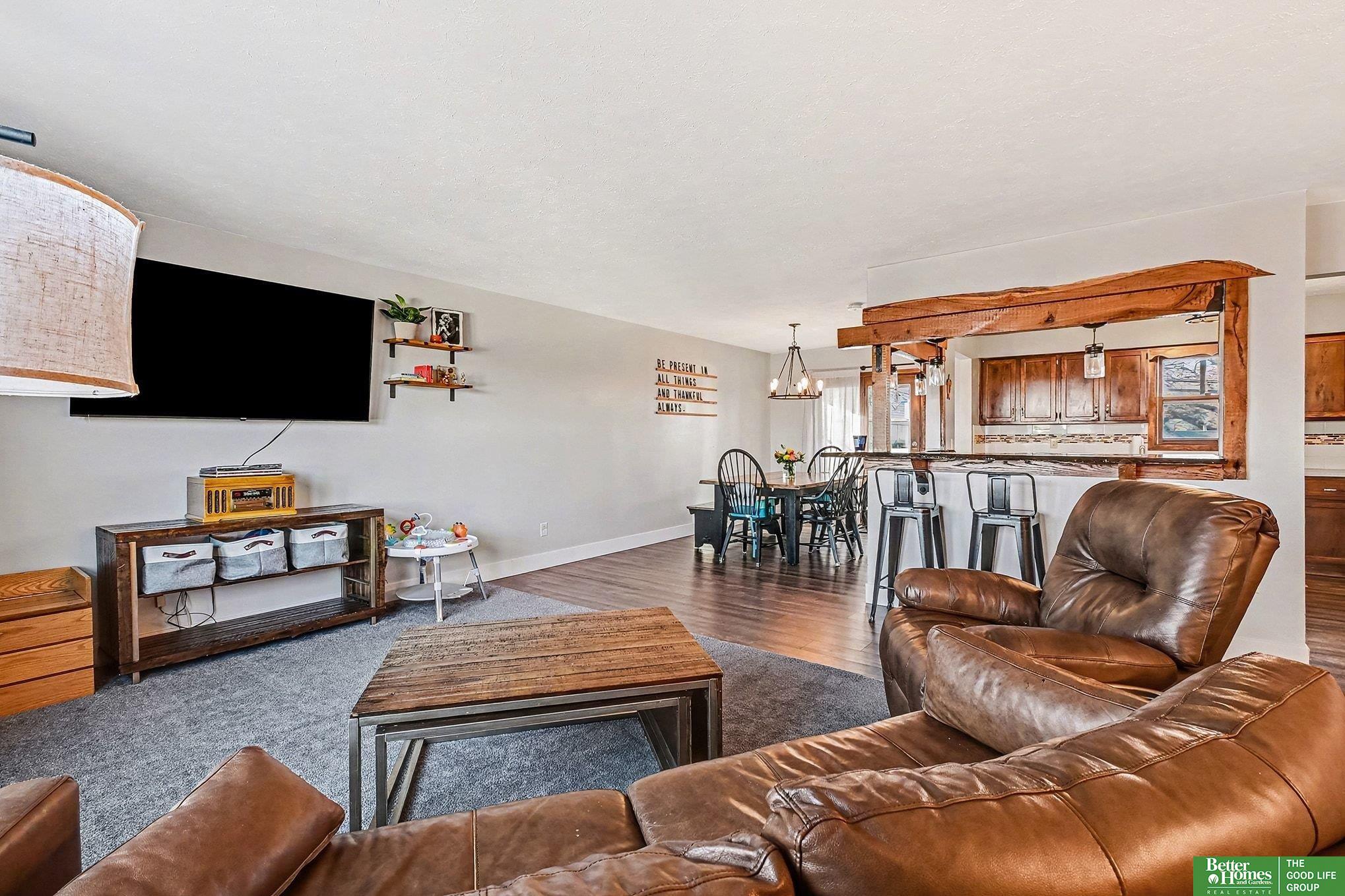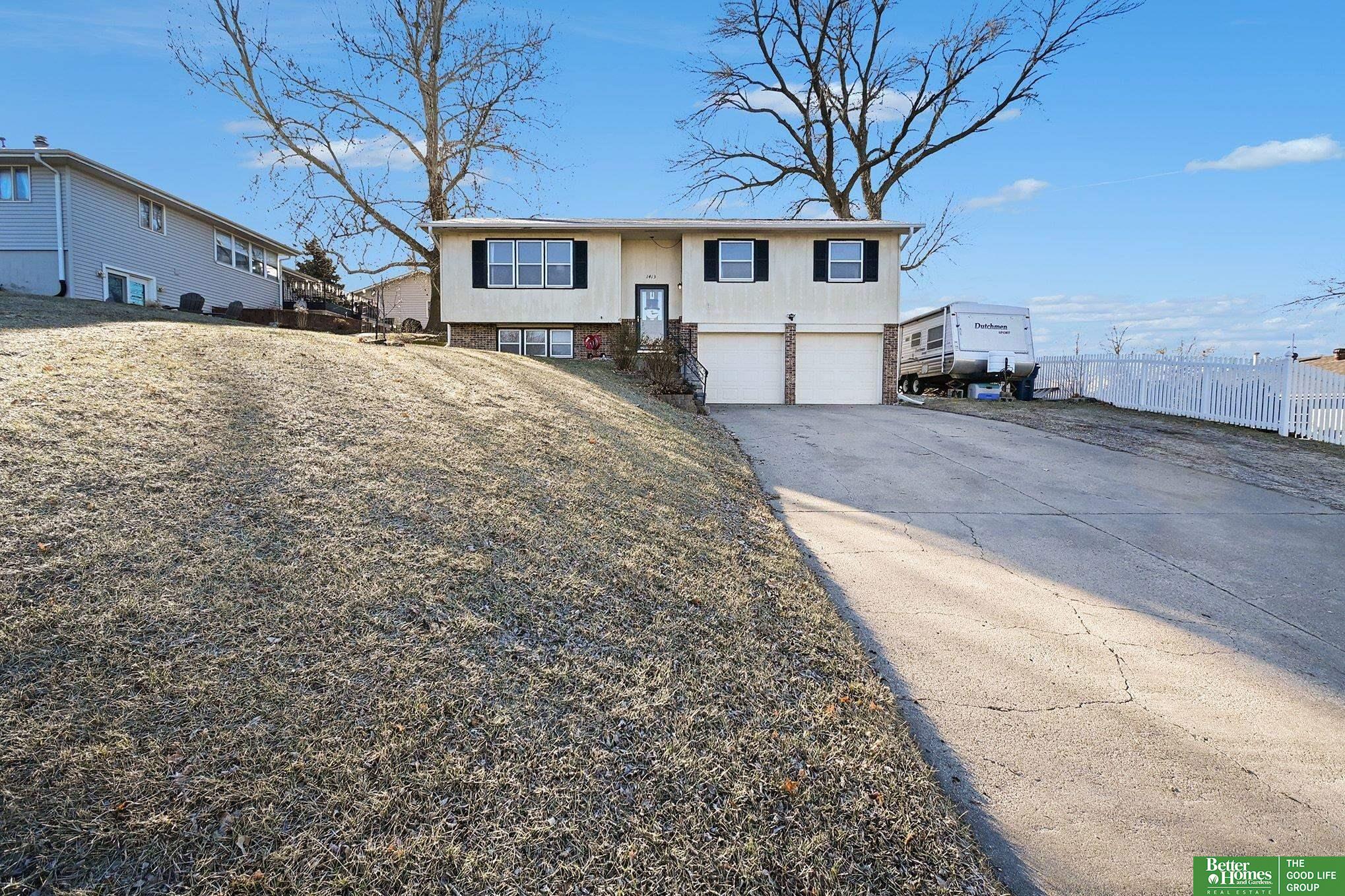 Contract pending- on market for back up offers. This move-in ready 4-bedroom, 3-bathroom home is 15 minutes away from Offutt Air Force base and 20 Minutes from Omaha making the commute easy! Boasting a 2-car garage with an electric heater and workbench, a fully fenced yard, and a backyard garden that enjoys sunlight almost all day, this home is ideal for both relaxation and productivity. Inside, newer carpet in the living room, tasteful rustic accents, and elegant light fixtures create a warm, inviting atmosphere. Additional features include a radon mitigation system, water softener, reverse osmosis water system, washer and dryer, and laundry sink in the garage, and all kitchen appliances. The flue for the wood stove was replaced in 2021. With a lower tax levy, this home is great for homeowners looking for value, comfort, and charm.
