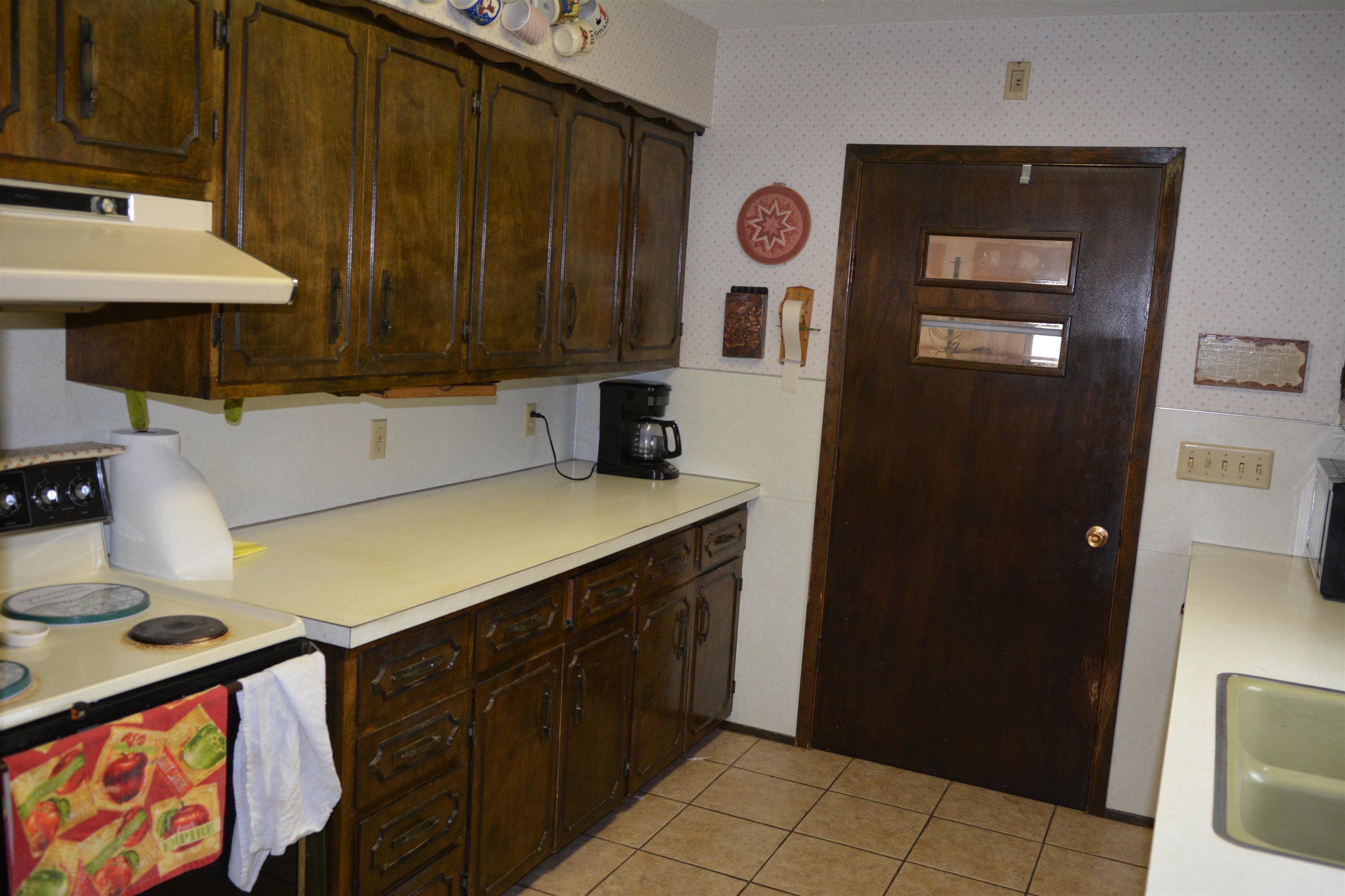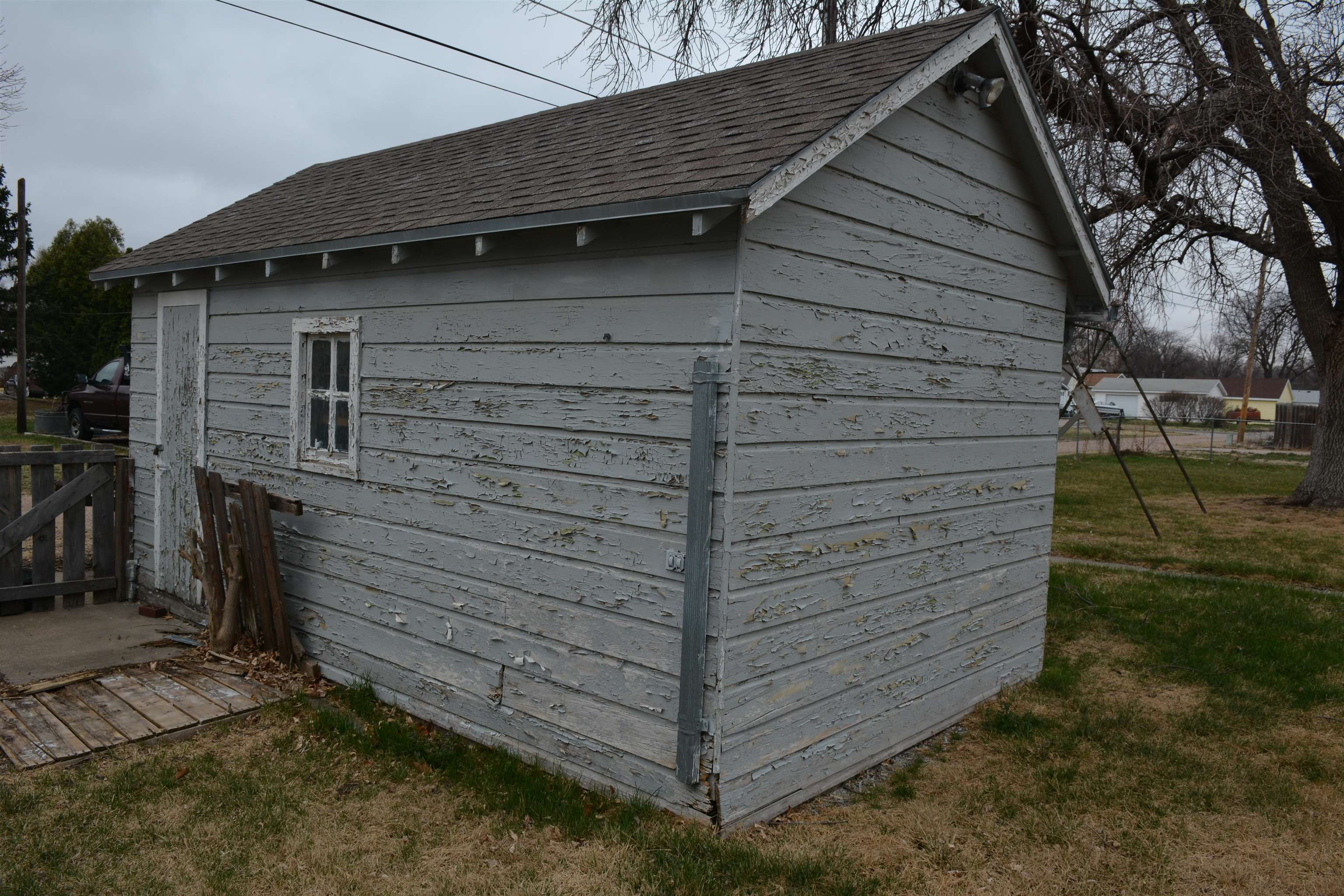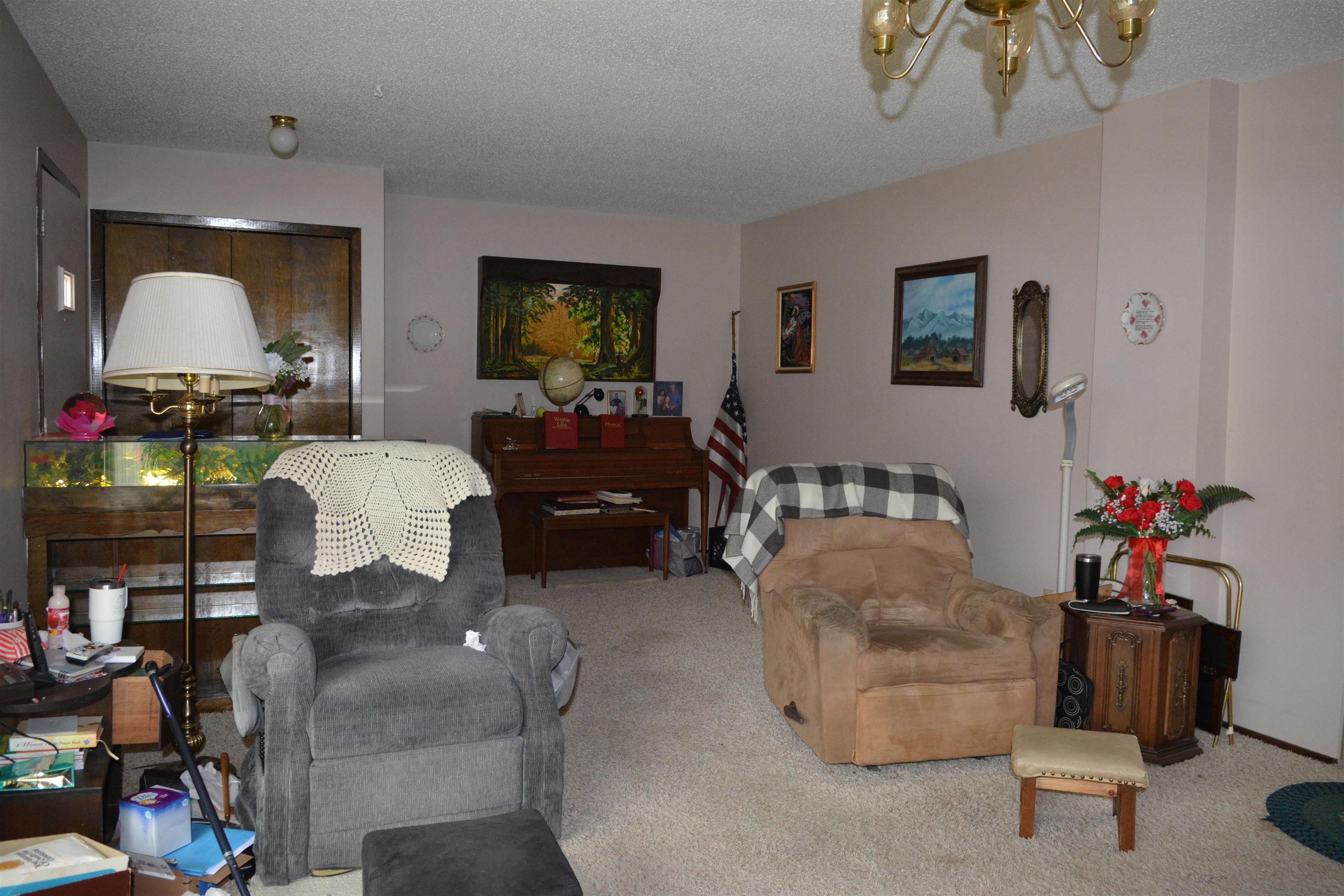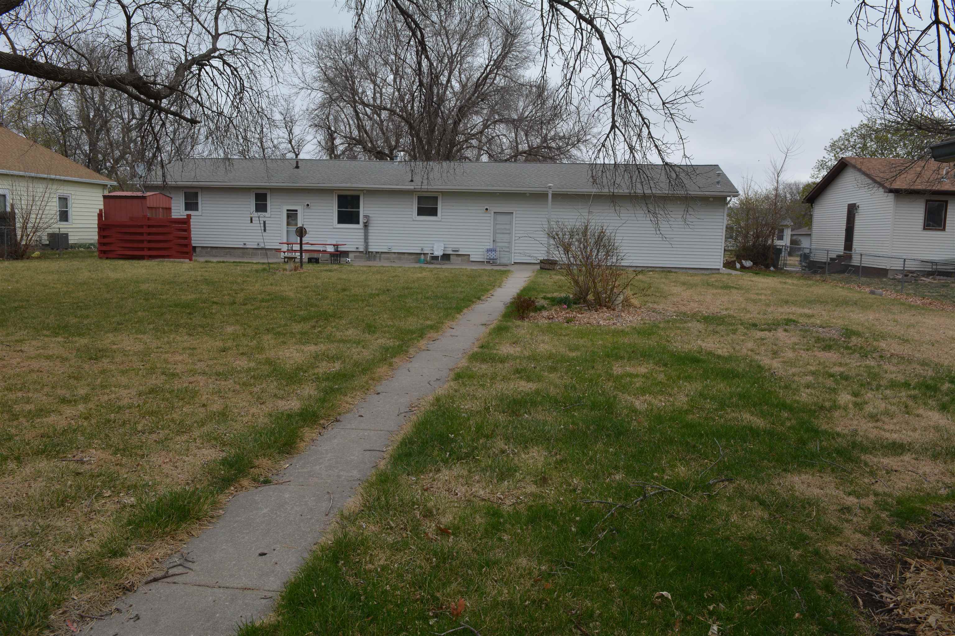 On two spacious lots, this 1975 home offers two conforming bedrooms on the main floor and two nonconforming rooms that were used as bedrooms in the past. A generous 32x23 two-car garage pairs with a four-car driveway, plus two small sheds. You'll find a storm shelter, a private well, a fenced yard, and alley access. New C-2 shingles and gutters will be replaced prior to closing. This home is ready for your updates and personal touch, making it your own!