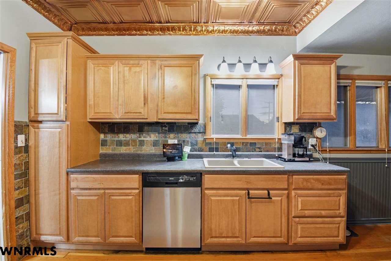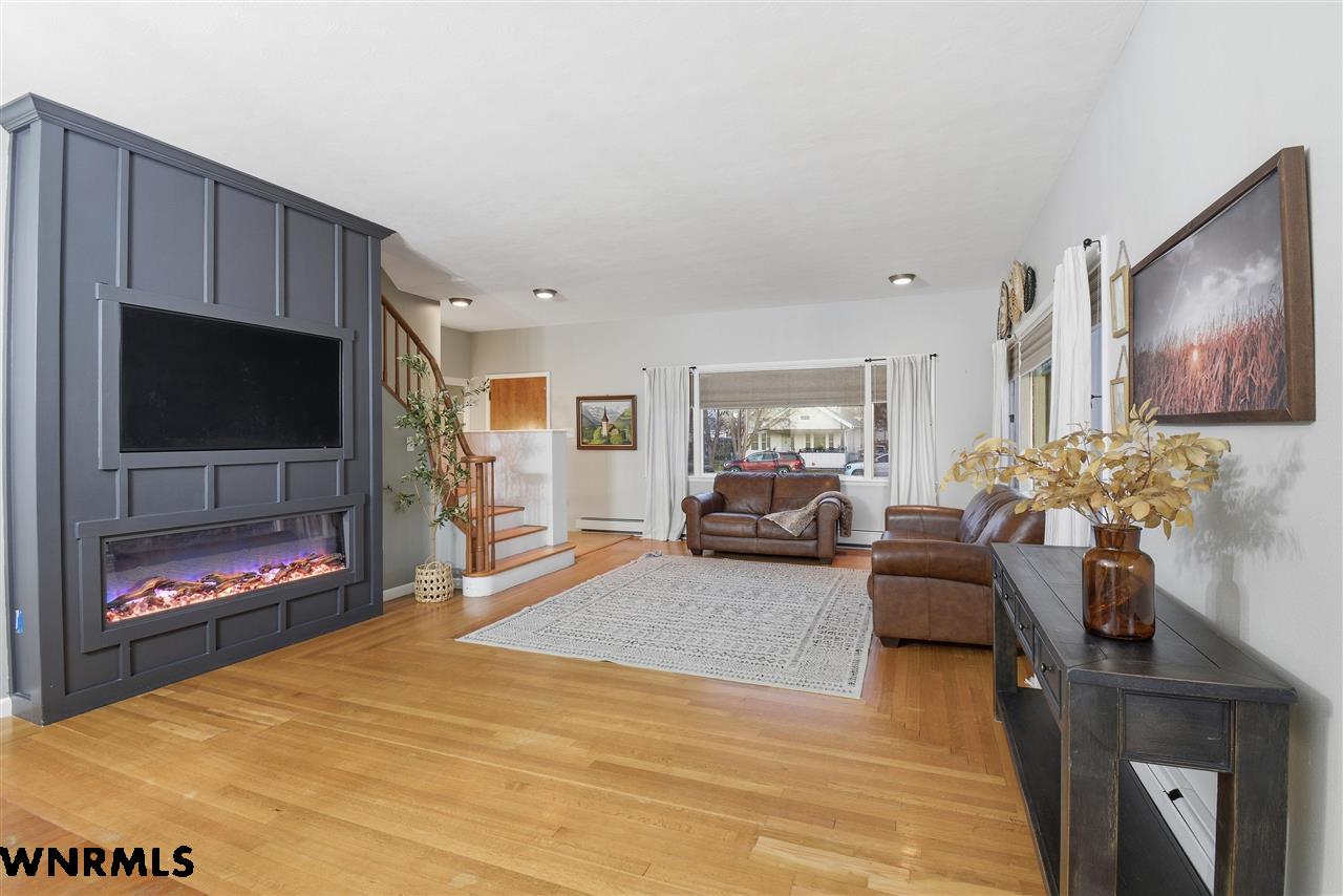 From the stunning hardwood floors to the copper ceiling in the kitchen, this home exudes warmth and charm. Beautiful colors flow throughout, creating a welcoming and vibrant atmosphere. The inviting eat-in kitchen opens to a dining area off the living room, complete with a gorgeous electric fireplace with frame TV. The home offers four spacious bedrooms and three finished bathrooms, one on each level, featuring ceramic tile and marble accents. The large basement family room provides ample space for gatherings, along with a convenient laundry area and an additional storage or workshop room. Heating is efficient with an 85% boiler and wall radiators. Outside, enjoy a private courtyard off the workshop, a double garage, and underground sprinklers.