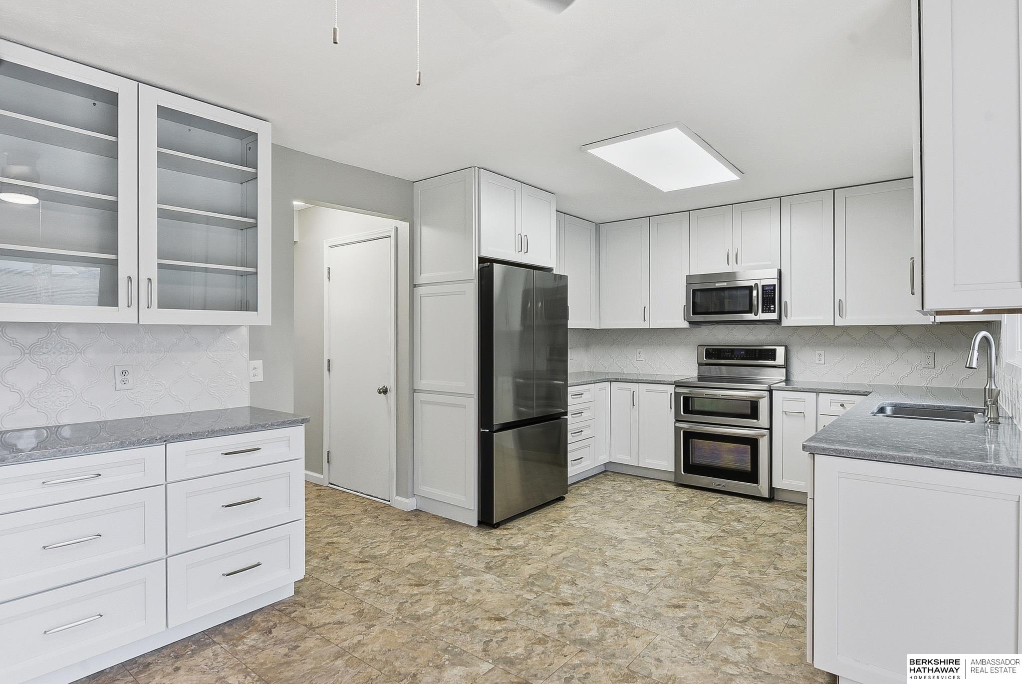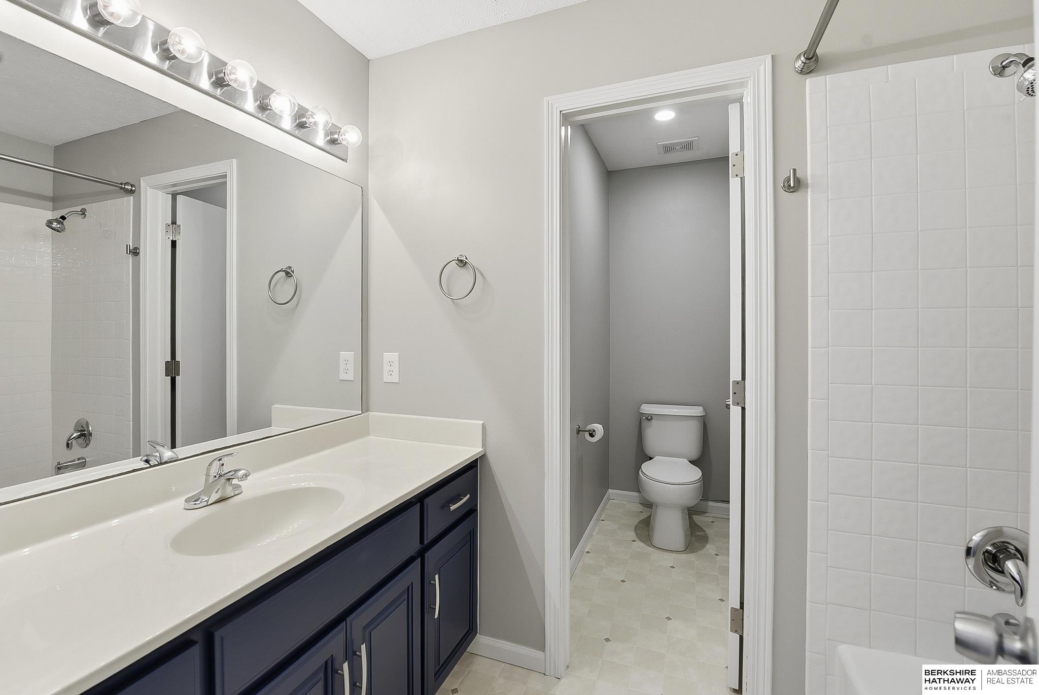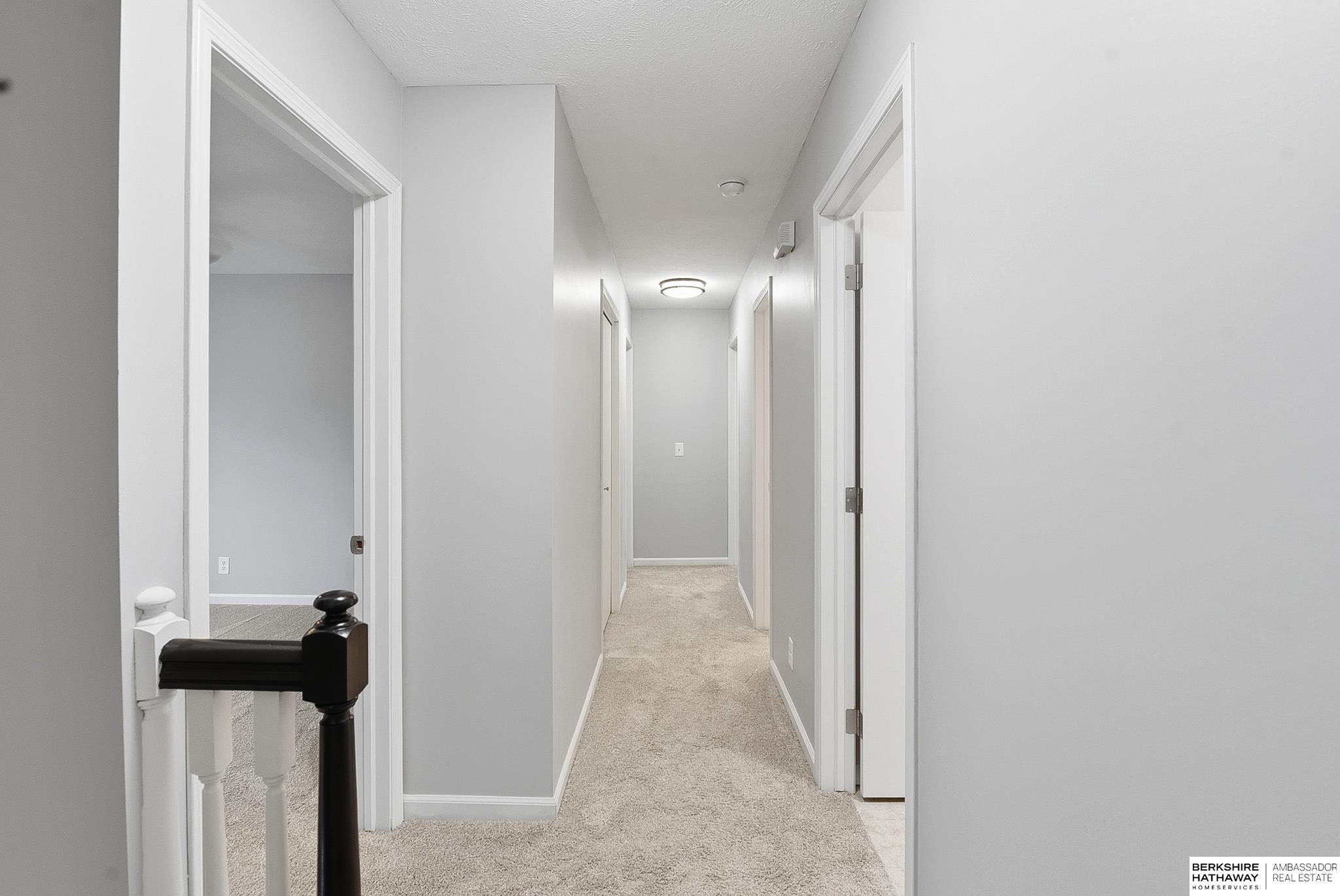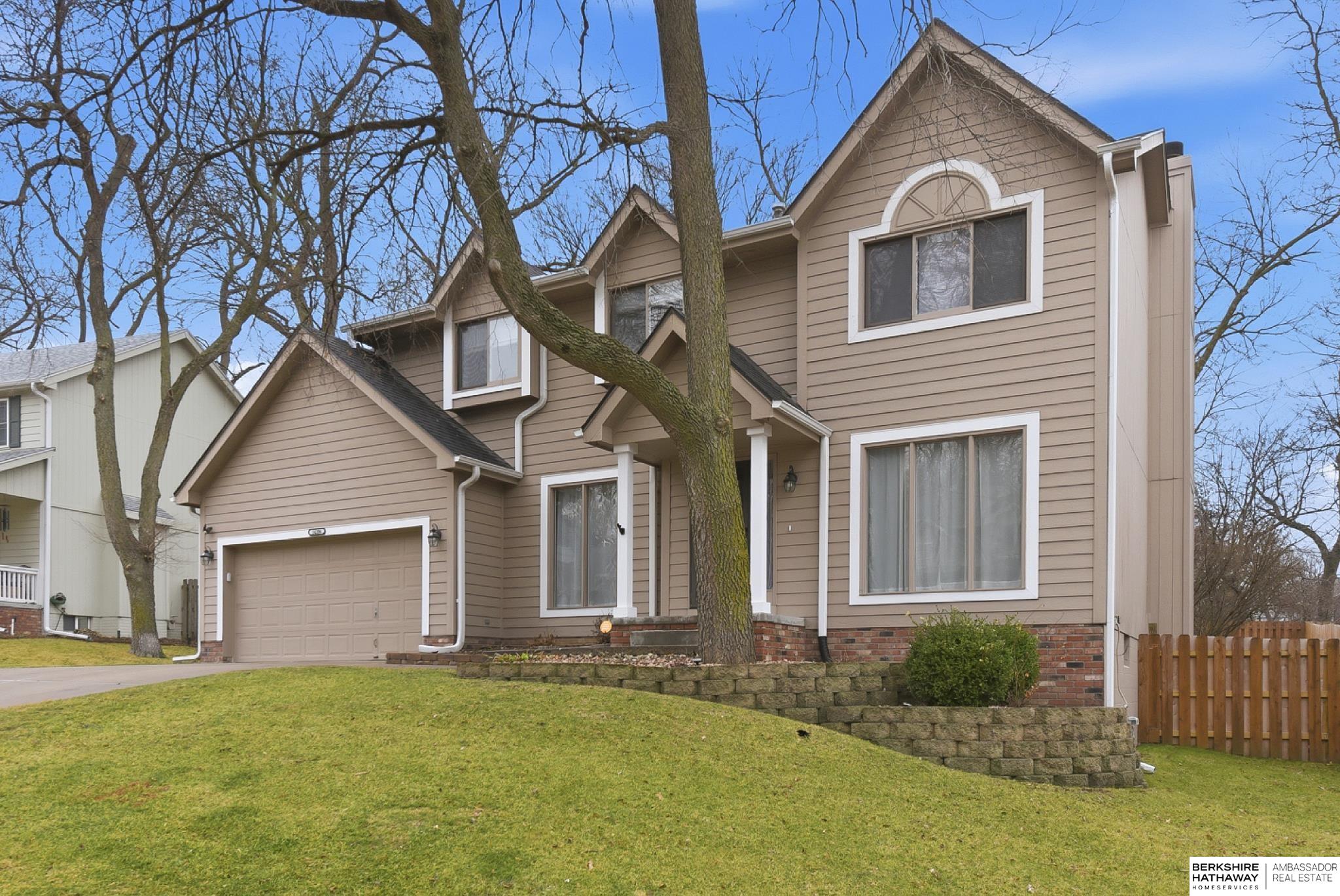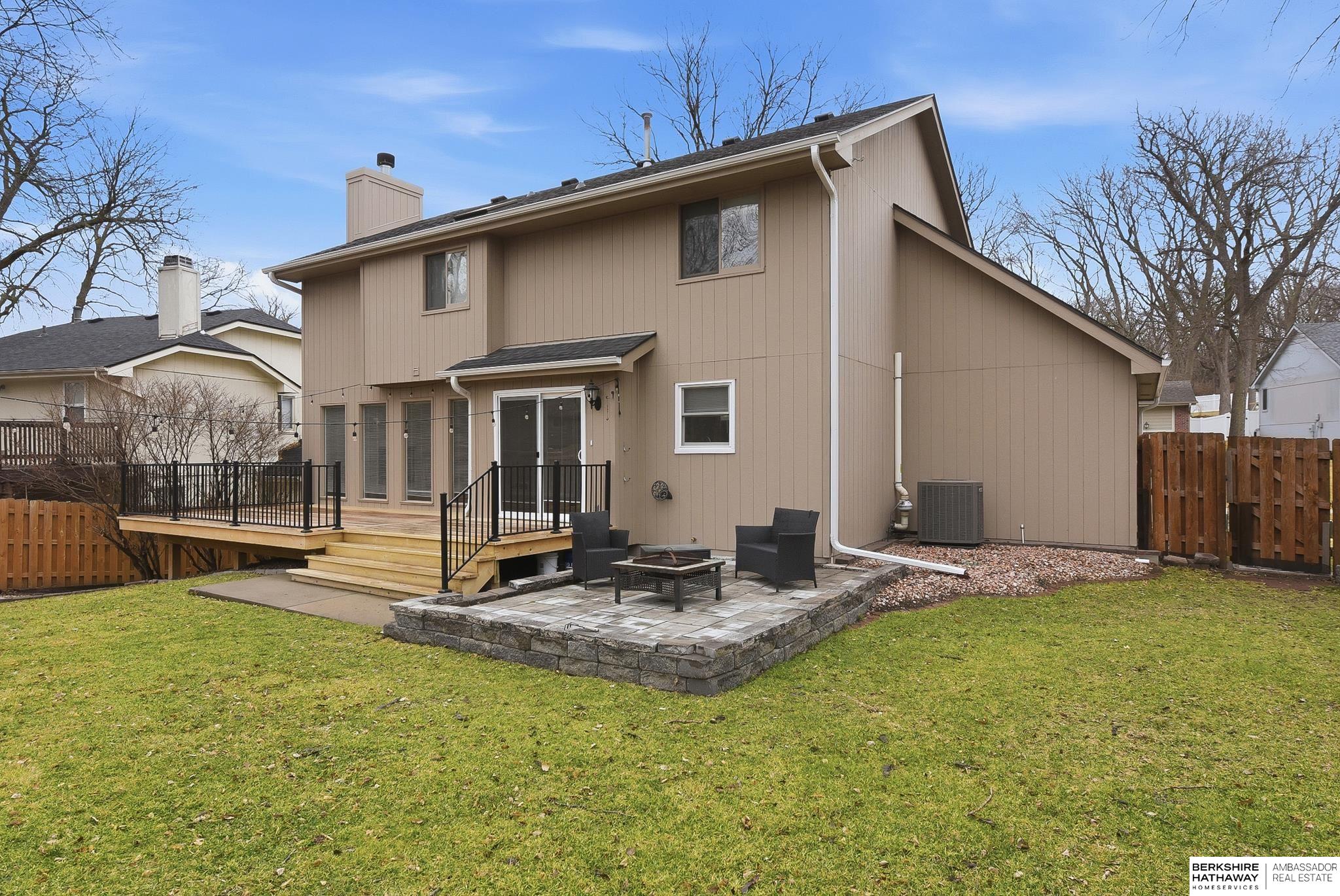 Pre-Inspected Two Story w/ many recent updates. Kit completely remodeled in 2023 w/ new cabinets (soft close doors & drawers), pull out pantry drawers, quartz countertops, all appliances stay (dishwasher - 2025, counter depth frid -2023, dbl oven), & Alterna Engineered Stone Tile floor throughout 1st floor. Spacious Primary Bdrm w/ vaulted ceiling & large Primary Bath w/ Pergo LVT, dbl sinks, whirlpool tub & large walk-in closet. Upstairs also has 3 good size Bdrms, a full Bath, & Laundry!! HVAC 2023, water heater 2024, water softener 2025, 2nd floor carpet 2023, patio sliding glass door 2023, large 28'x12' Wood Deck w/ iron railing 2024, new roof & gutters 2024, interior paint 2023, 12'x10'x8' Shed w/ skylight painted 2025, 16'x11' paver patio area, garage door opener 2025, radon fan 2025 & driveway mudjacked and cracks sealed 2026. Quiet neighborhood w/ little thru traffic, mature trees just down the street from an elementary school, playground, & close to Offutt AFB & shopping areas