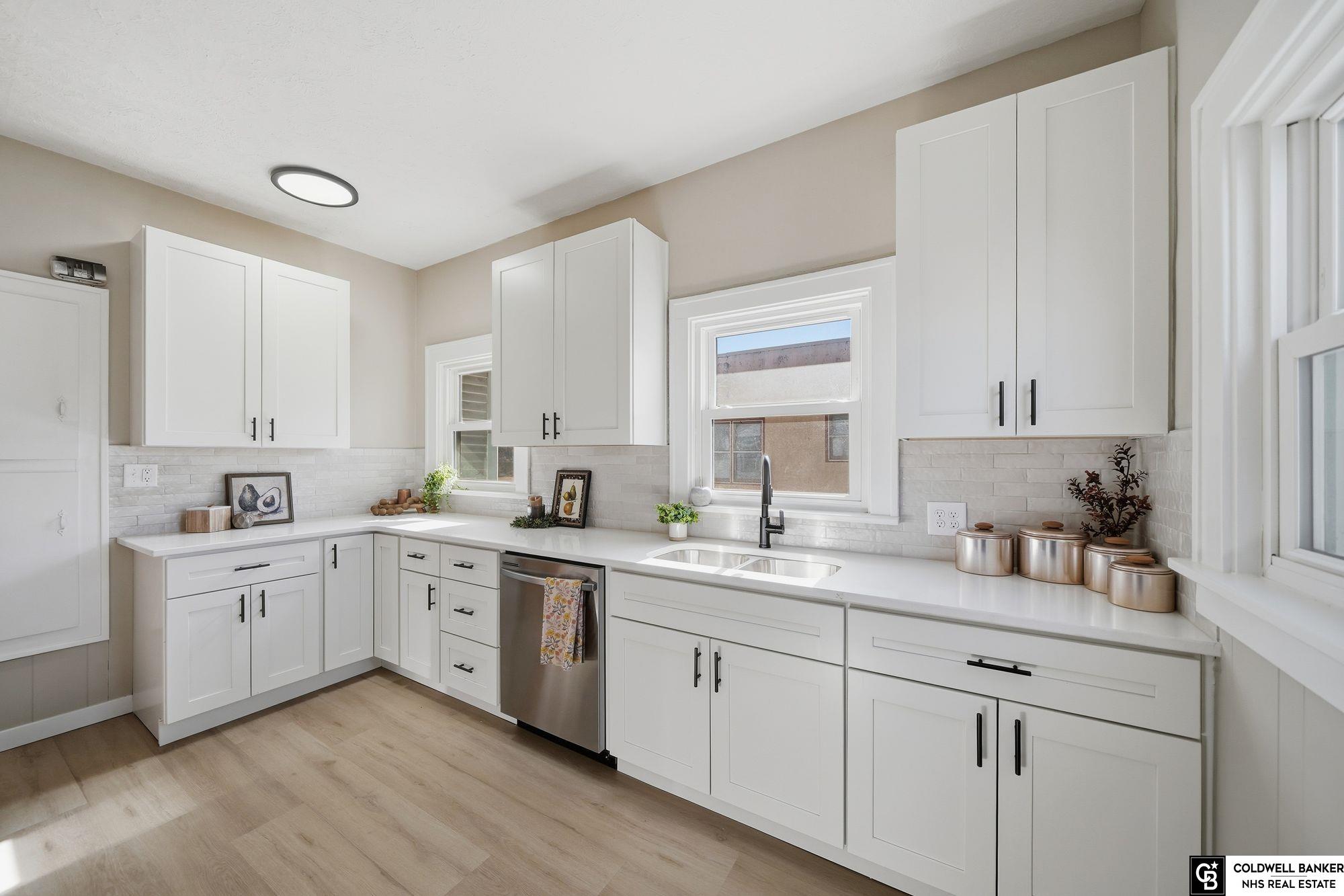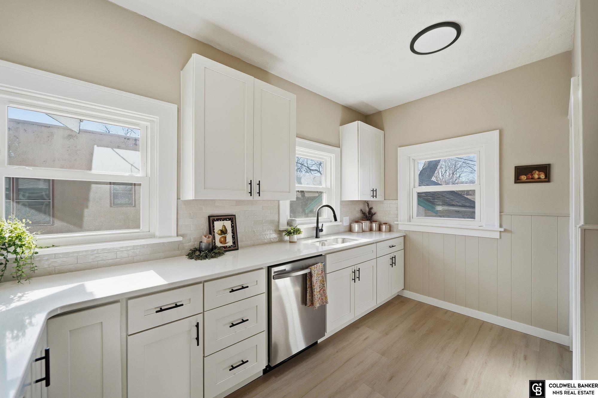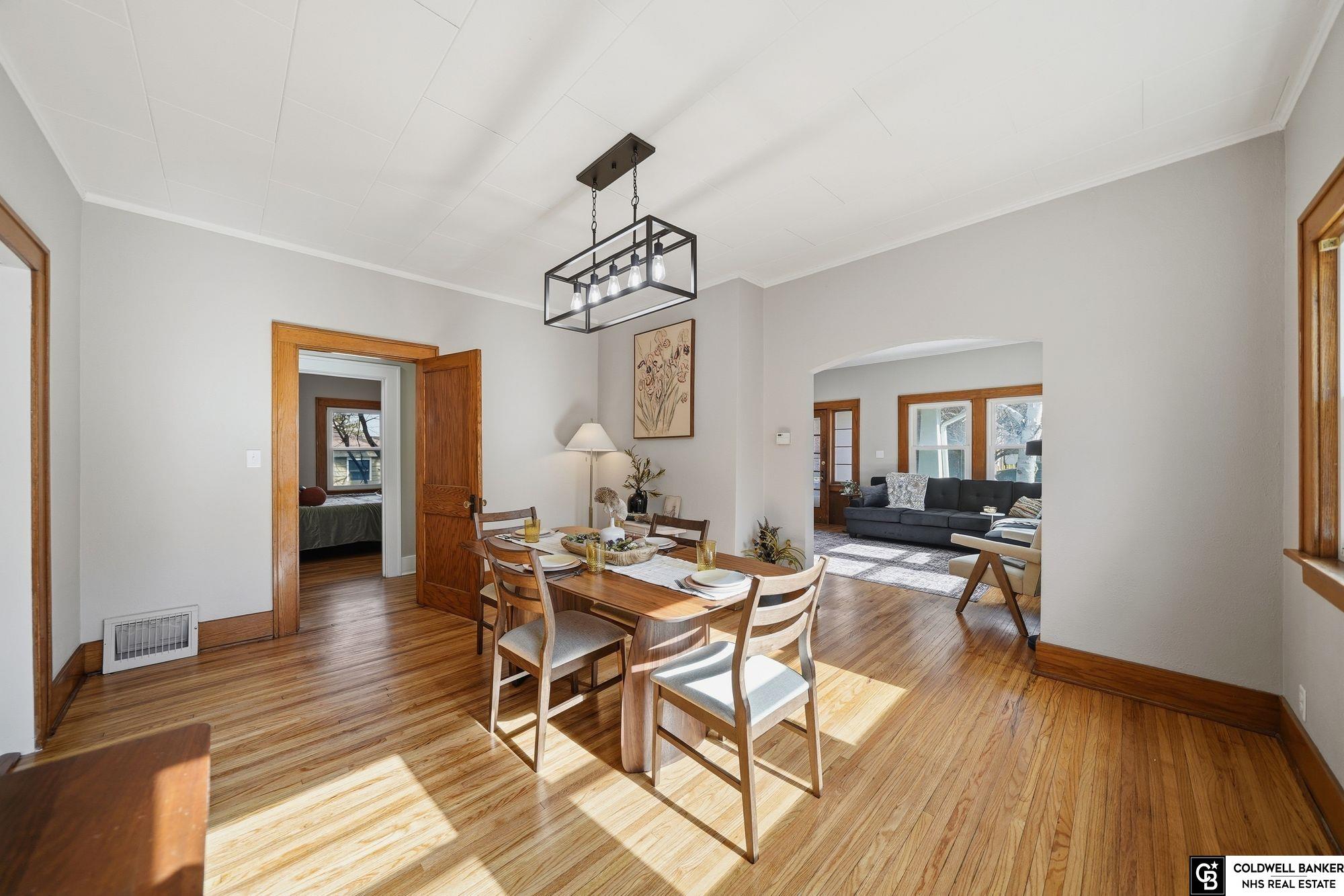 Move in ready and located directly across from UNL East! This beautifully renovated home blends classic character with modern updates throughout. Original wood floors and baseboards, plus a striking fireplace, welcome you inside. The entire interior has been refreshed with new paint, ceiling fans, light fixtures, outlets, switches and more. The main level offers over 1,200 sq ft with two large bedrooms, spacious living and dining areas, an office or bonus room, and a huge kitchen featuring brand-new soft-close cabinets, quartz countertops, and all new stainless steel appliances. The main bathroom is fully updated with new LVP flooring, a deep soaker tub, and fresh tile surround. The finished lower level includes a third non-conforming bedroom, second living space, fourth bedroom with walk-in closet, second full bath, and ample storage. Fenced in backyard with sunroom, newer vinyl windows and brand-new furnace and A/C (2025) complete this turnkey home in an unbeatable location.