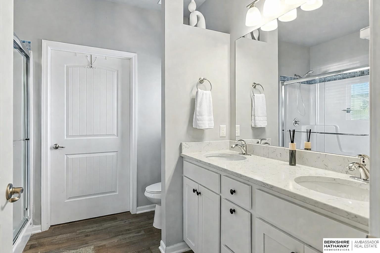 Bennington ranch on a corner lot! This 3-bedroom, 2-bath ranch blends style, comfort, and functionality throughout. Fresh interior paint and stunning luxury vinyl plank flooring flow seamlessly across the main level, creating a modern and inviting atmosphere. The kitchen shines with sleek quartz countertops, carried through to both bathrooms for a cohesive, upscale finish. The spacious primary suite offers a walk-in closet and a thoughtfully designed 3/4 bath with dual sinks. Two additional bedrooms, a full bath, and convenient main-floor laundry complete the layout. Step outside to enjoy a fully fenced yard, perfect for pets, play, or peaceful evenings at home. The expansive unfinished basement provides endless opportunities - create a custom living area, home gym, or simply take advantage of the abundant storage space. Recent updates include a brand new roof and gutters (2024). AMA.