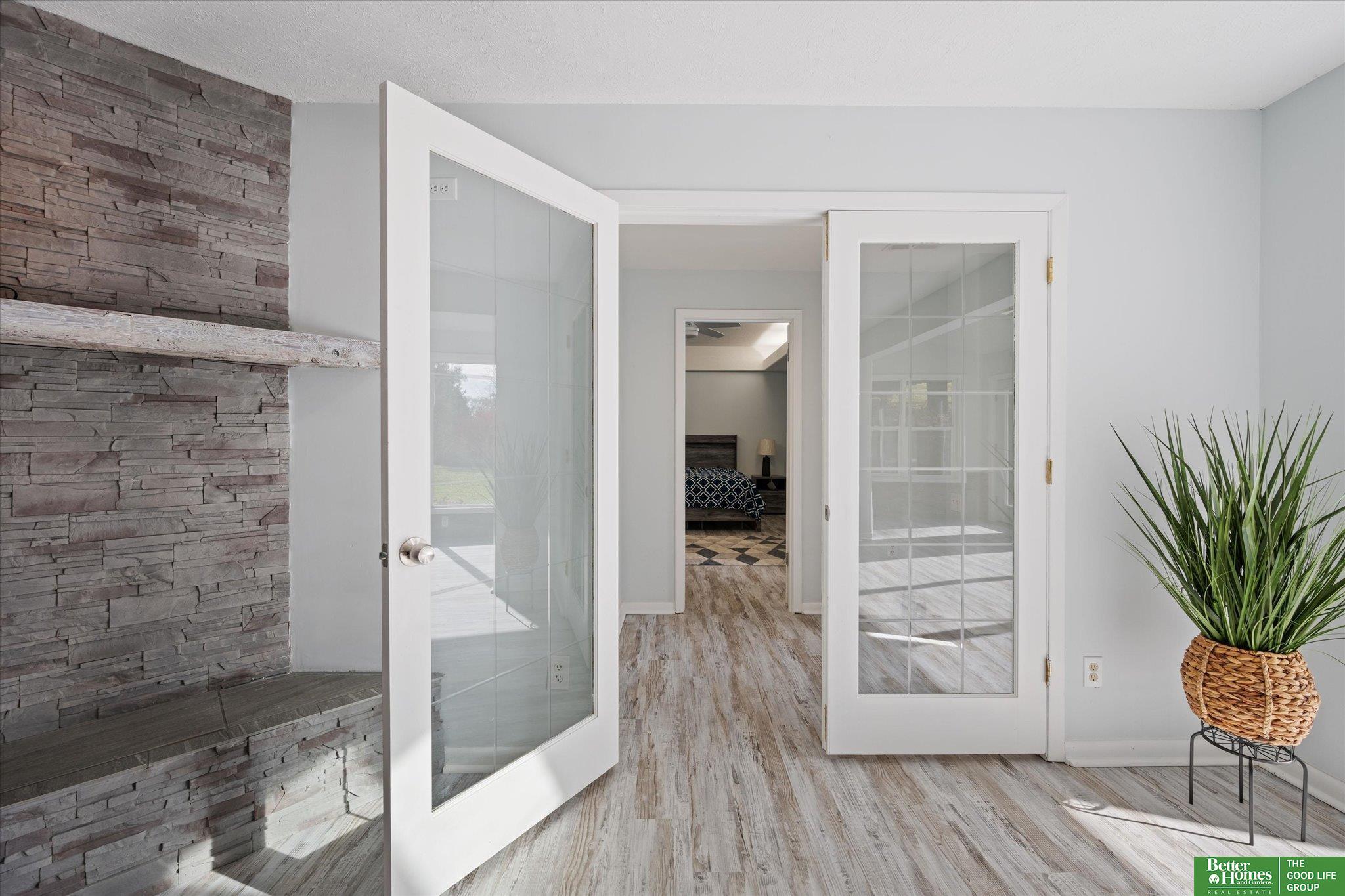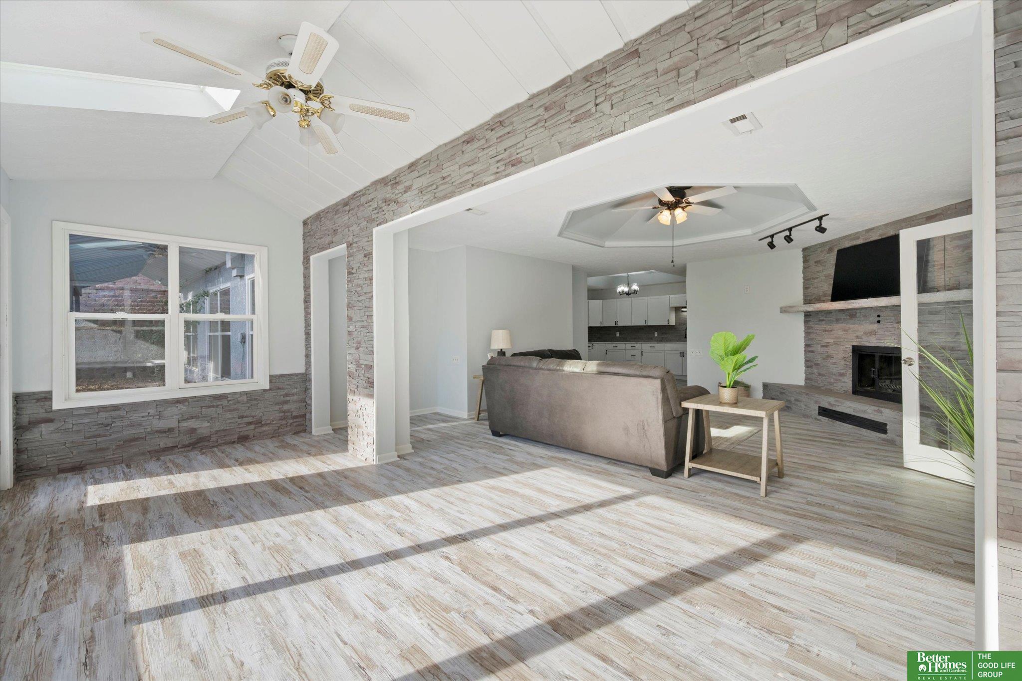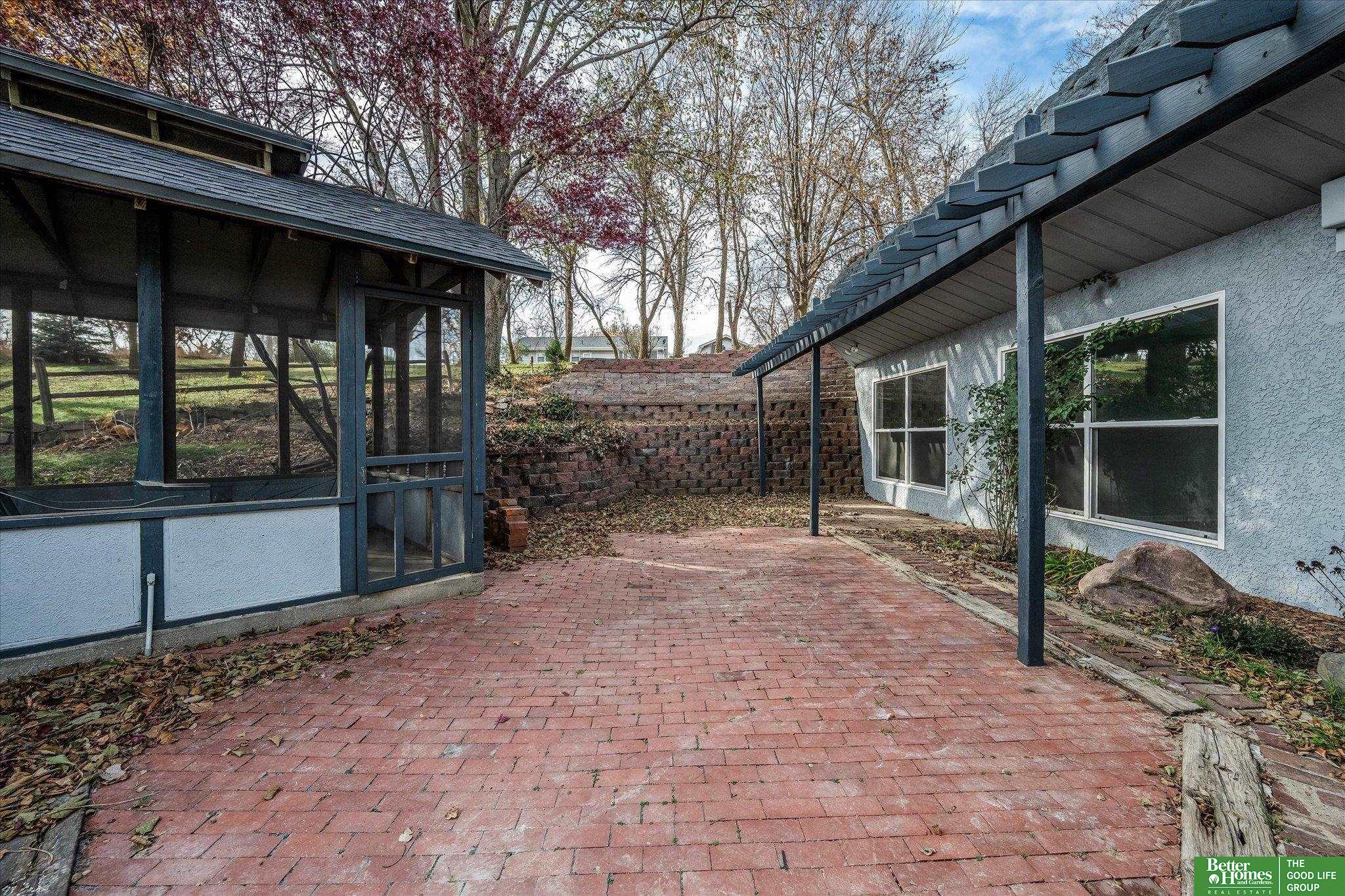 Enjoy peaceful acreage living just minutes from Omaha in this beautifully updated ranch home on a picturesque 1-acre lot. Offering 2,500+ sq ft, this home features a fully updated kitchen with new cabinetry, quartz countertops, stainless steel appliances, and adjoining dining area. Bright, open living room with stunning stone fireplace and an inviting sunroom perfect for year-round enjoyment. Two primary suites, each with private ensuite baths and walk-in closets, plus two additional spacious bedrooms and two additional bathrooms. Convenient laundry room with extra storage. Fresh paint and new flooring throughout. Outdoor amenities include a private gazebo, fire pit area, and natural landscaping creating a peaceful retreat. Oversized 2-car garage, additional storage room, and large shed provide ample space for vehicles, tools, and hobbies. Rare opportunity for updated acreage living close to city conveniences. AMA.