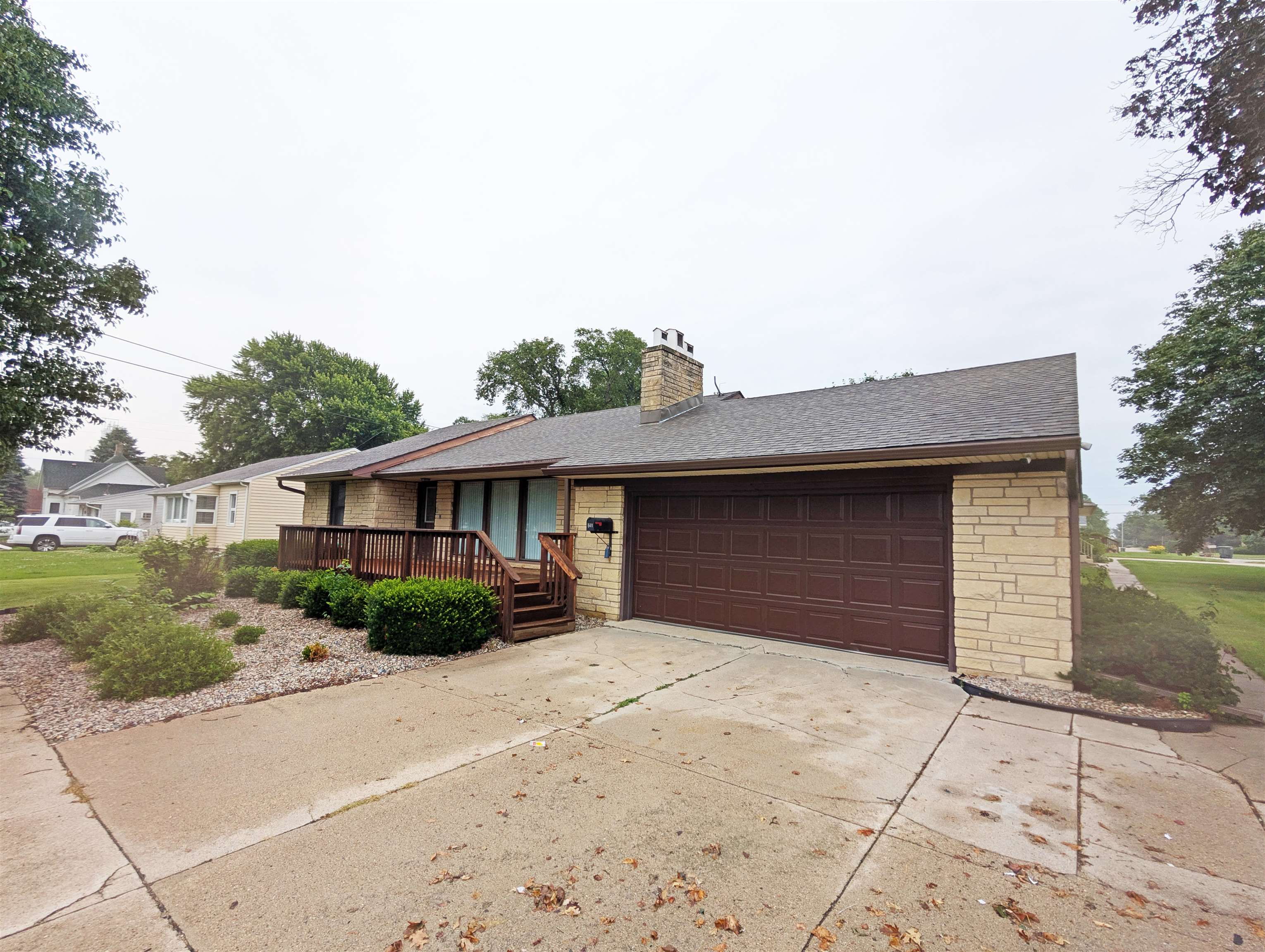 Welcome to this beautifully maintained and thoughtfully updated ranch-style home located on a spacious corner lot in Shelby. Built in 1956, this home offers nearly 1,200 sq ft of comfortable living space on both the main floor and finished basement—perfect for those seeking a move-in-ready property with modern upgrades and classic charm. The main level features 2 bedrooms and a newly remodeled bathroom. The updated kitchen is a standout, showcasing custom cabinetry, a center island, and stainless steel appliances—all included. Windows and exterior doors have been updated. Downstairs, the recently remodeled basement (completed in 2024) includes a cozy living area complete with a wood-burning stove, a second bathroom, and additional finished space ideal for a rec room, home office, or possibility of guest room. The attached 2-car garage includes a convenient workshop/storage room at the back—great for hobbies or extra storage. Outside, you'll love sitting on the large deck overlooking the well-established landscaping with mature trees, perfect for shade. Don’t miss the opportunity to own this charming, move-in-ready home in a quiet small-town setting. Schedule your showing today! **Some photos have been virtually staged**