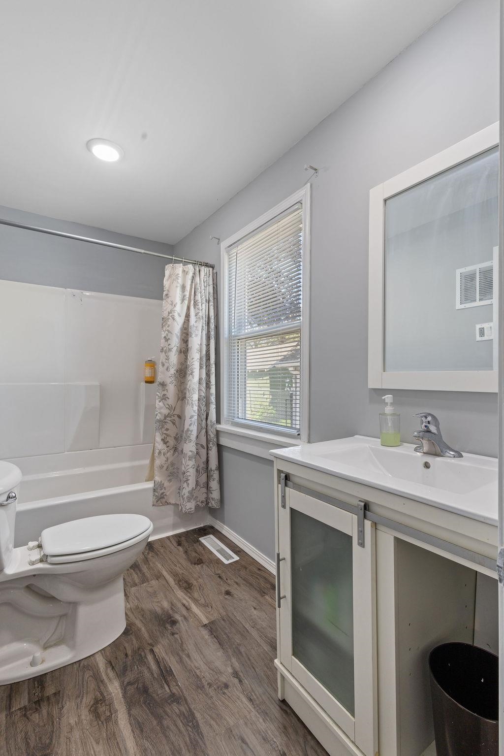 Welcome home to this beautifully updated 4-bedroom, 1-bath property offering space, functionality, and peace of mind with major improvements already completed. From the moment you arrive, you’ll notice the fresh exterior featuring new siding, a new roof, new driveway, and a new front door—all completed in 2024 for added curb appeal and long-term value. Inside, you’ll find updated flooring throughout, refinished kitchen cabinets, and freshly painted interior doors and trim, creating a clean and inviting feel. The bathroom has been refreshed with a new tub and surround (completed in April 2026), while a new refrigerator (March 2026) and washer and dryer (2024) are included—making this home move-in ready. Both the front and back porches have been refinished, and take advantage of the fenced-in backyard—perfect for pets, kids, or entertaining. A single detached garage adds convenience and additional storage. With major updates including new windows, siding, roof, and more already completed, this home offers comfort, updates, and value.