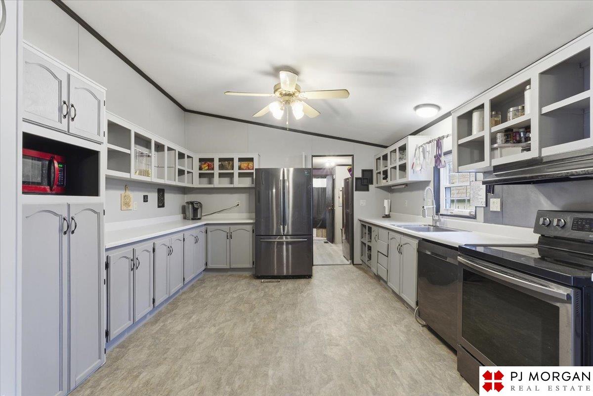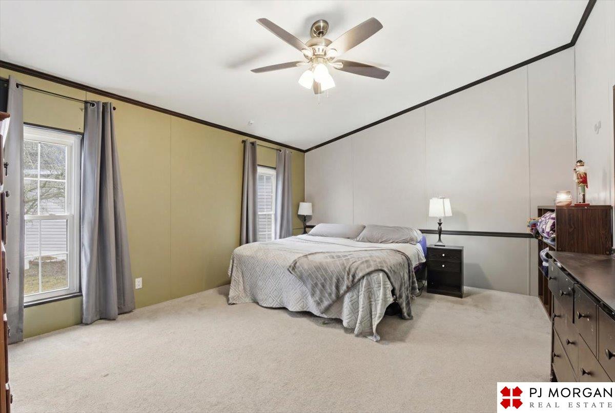 Rare FOUR-bedroom, 2-bathroom mobile home in the sought-after Millard School District. Spanning nearly 1,900 sq. ft., this home features a fresh interior with new paint throughout and updated bathrooms, including a primary bath with a whirlpool jetted tub. Major structural updates include a newer roof and a professionally leveled foundation. The property backs directly to a nature preserve and is within walking distance of Lake Zorinsky. Exterior includes a huge storage shed. Neighborhood amenities feature a pool and clubhouse. Move-in ready and priced to sell. Schedule your private showing today!