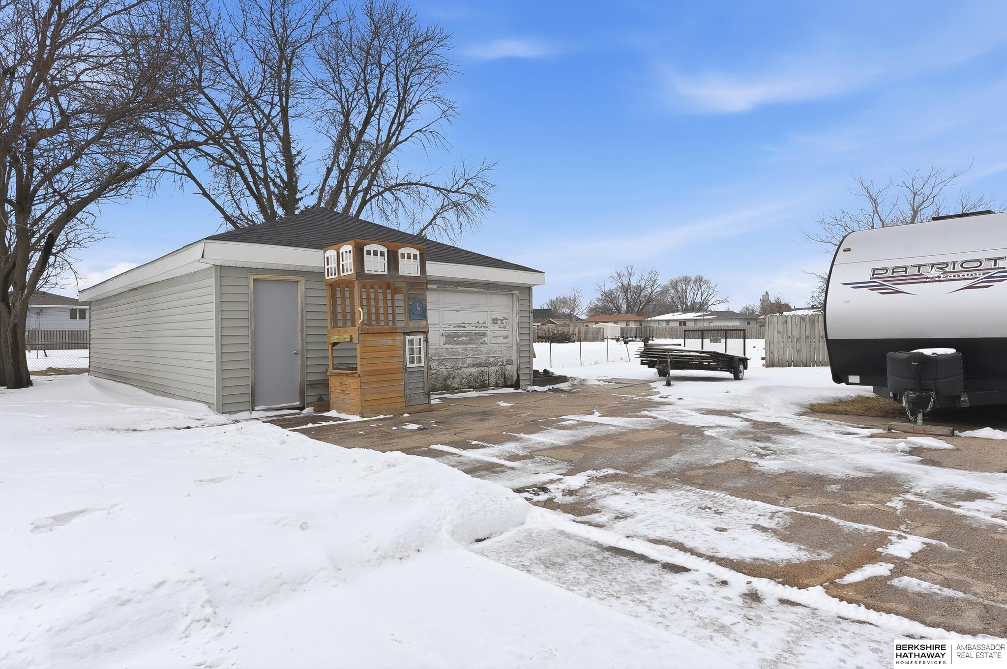 Beautifully updated 3-BR, 4-car ranch home located in East Fremont. Once you walk into this home you will appreciate the attention to detail & the love that has been put into it! The home features 3 BR, 1 BA, informal dining area, hardwood flooring throughout, large basement rec room w/ bar area, non-conforming potential 4th BR in basement, large, fenced backyard with an additional, spacious 2-car garage, large & easily accessible concrete pad that will be perfect for parking and storing your RV or boat. Major updates that have been done recently include: 2025 basement rec room renovated, non-conforming basement bedroom renovated, sump pump & drain tile installed, and door to garage installed. 2024 new roof & gutters, exterior painted, full bathroom renovation, new concrete garage floor, new insulation & walls in the garage, & new water softener installed. 2023 new furnace & A/C installed, support beams installed by Thrasher on the South and West basement walls as a preventive measure.