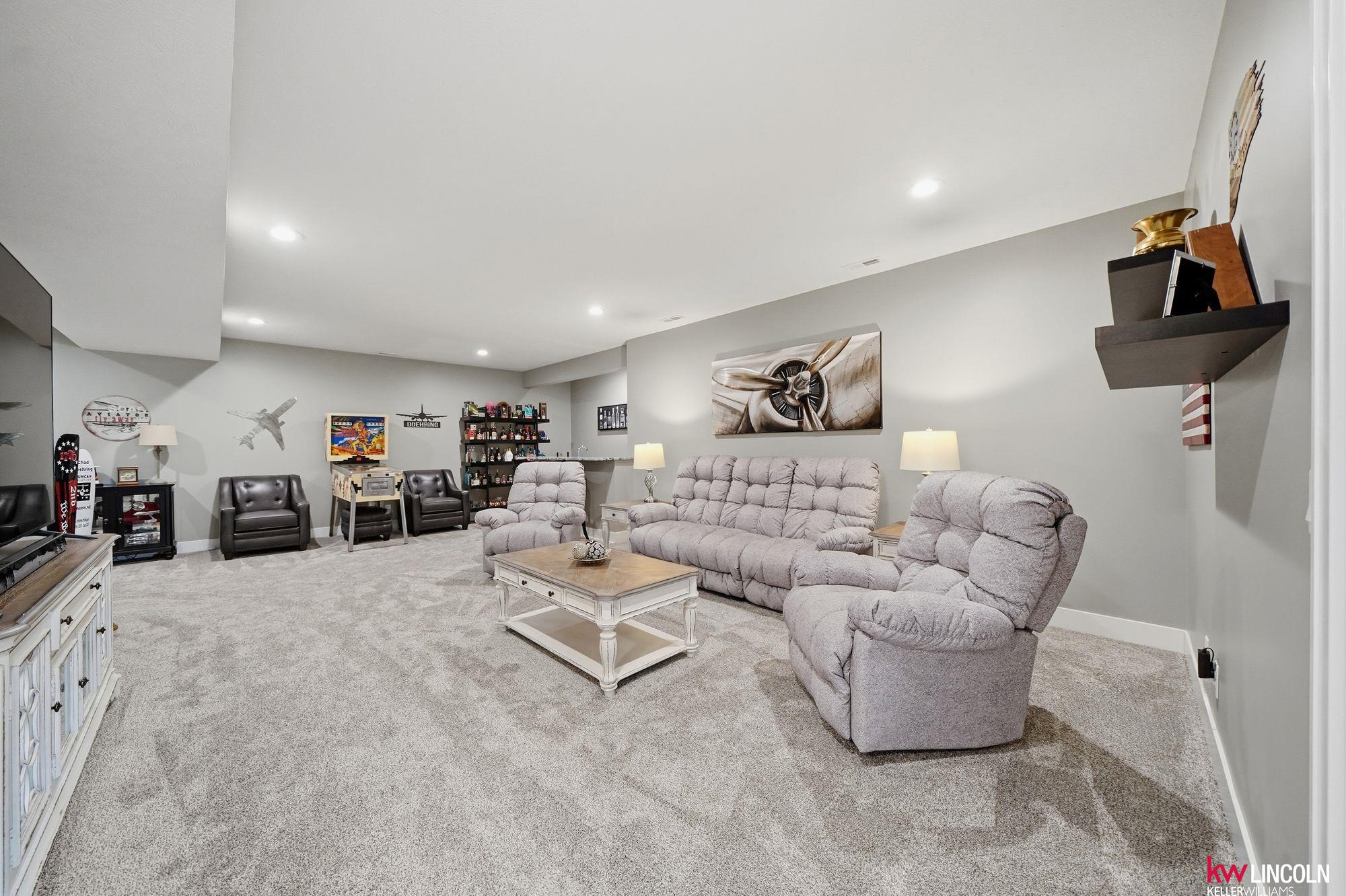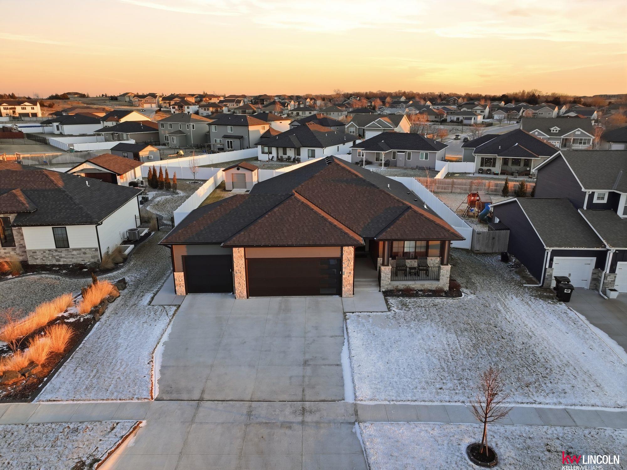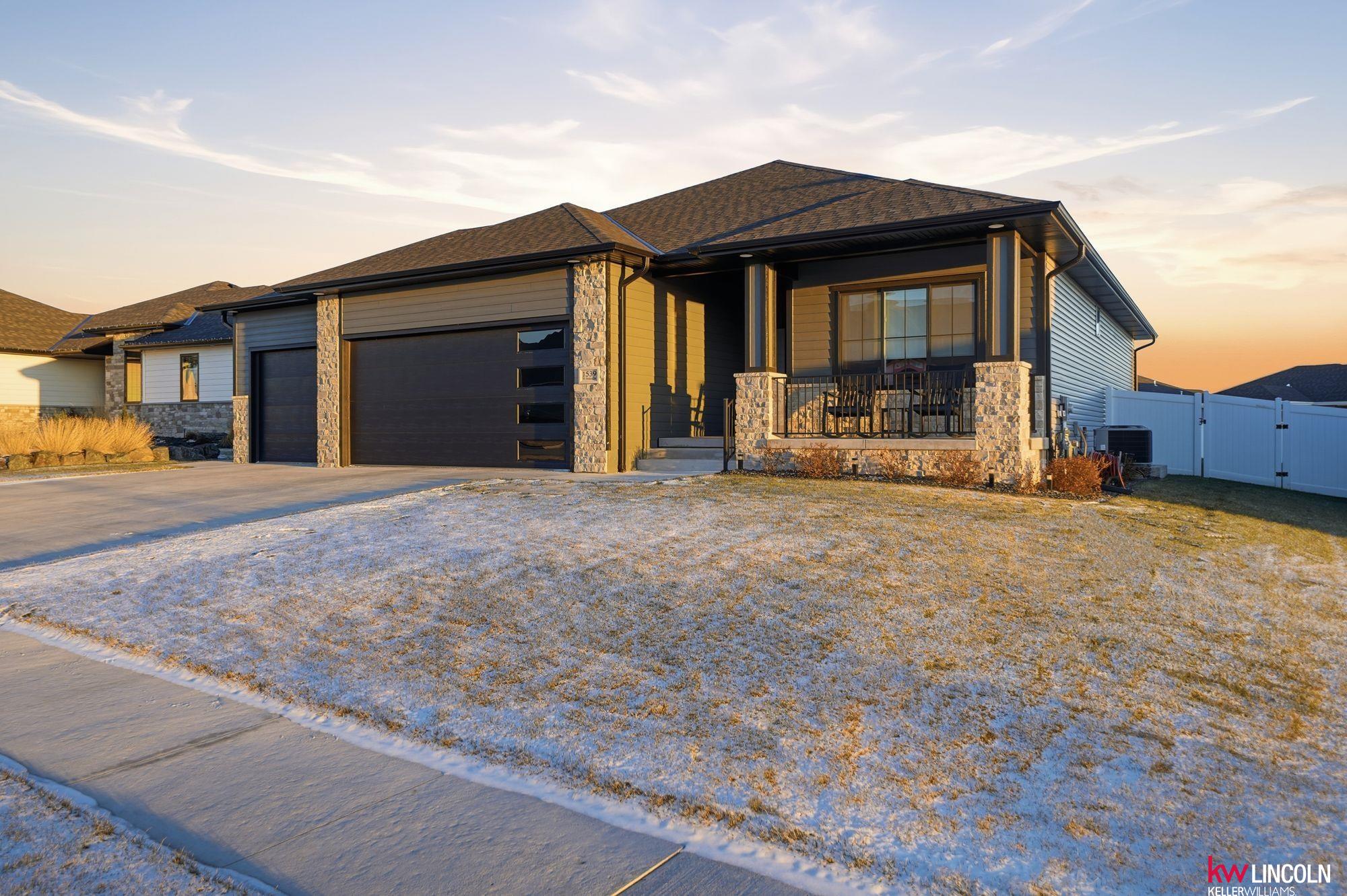 This STUNNING ranch home has the highest finishes/upgrades throughout. 2BR’s up & 2BR’s down. Oversized 3-car garage, fully insulated & finished. 11’ flat ceilings & 9’ elsewhere incl bsmt. The main floor features a living room, w/Natural stone fireplace, a beautiful kitchen w/soft-close drawers & doors, crown molding, granite, 7’ island w/seating, stainless steel appls, large walk-in pantry w/built-in freezer area. Bench with coat hooks at garage entry w/tons of custom cabinetry & first floor laundry! Primary bedroom has double sinks, tiled walk-in shower & soaker tub. A 2nd bedroom & 2nd full bath on main floor. The finished bsmt has 2 bedrooms, 1 w/walk-in closet, 1 bathroom, large living room w/amazing, custom wet bar area. Plus, lots of storage space! A covered back extended patio with beautiful stamped concrete, above-ground pool/deck area. Full vinyl privacy fence & shed on slab are huge bonuses! This home has so many extras & is ready for the next owners. Schedule your tour now