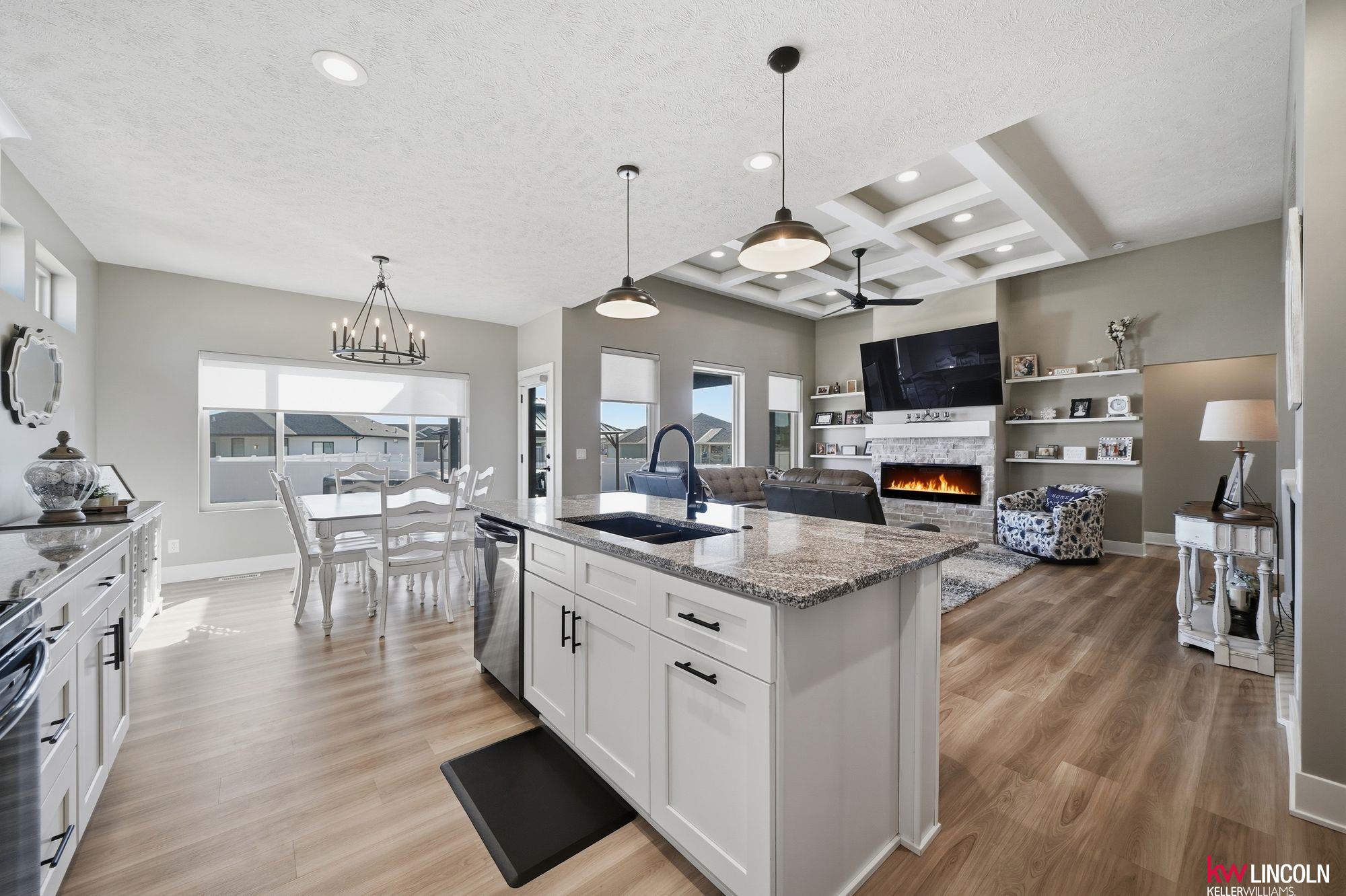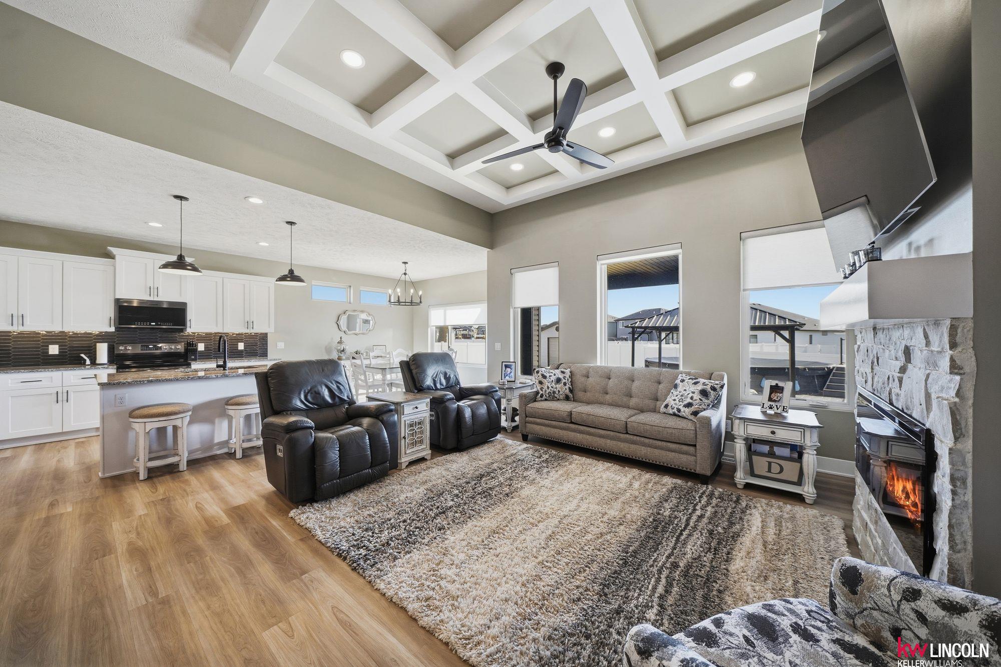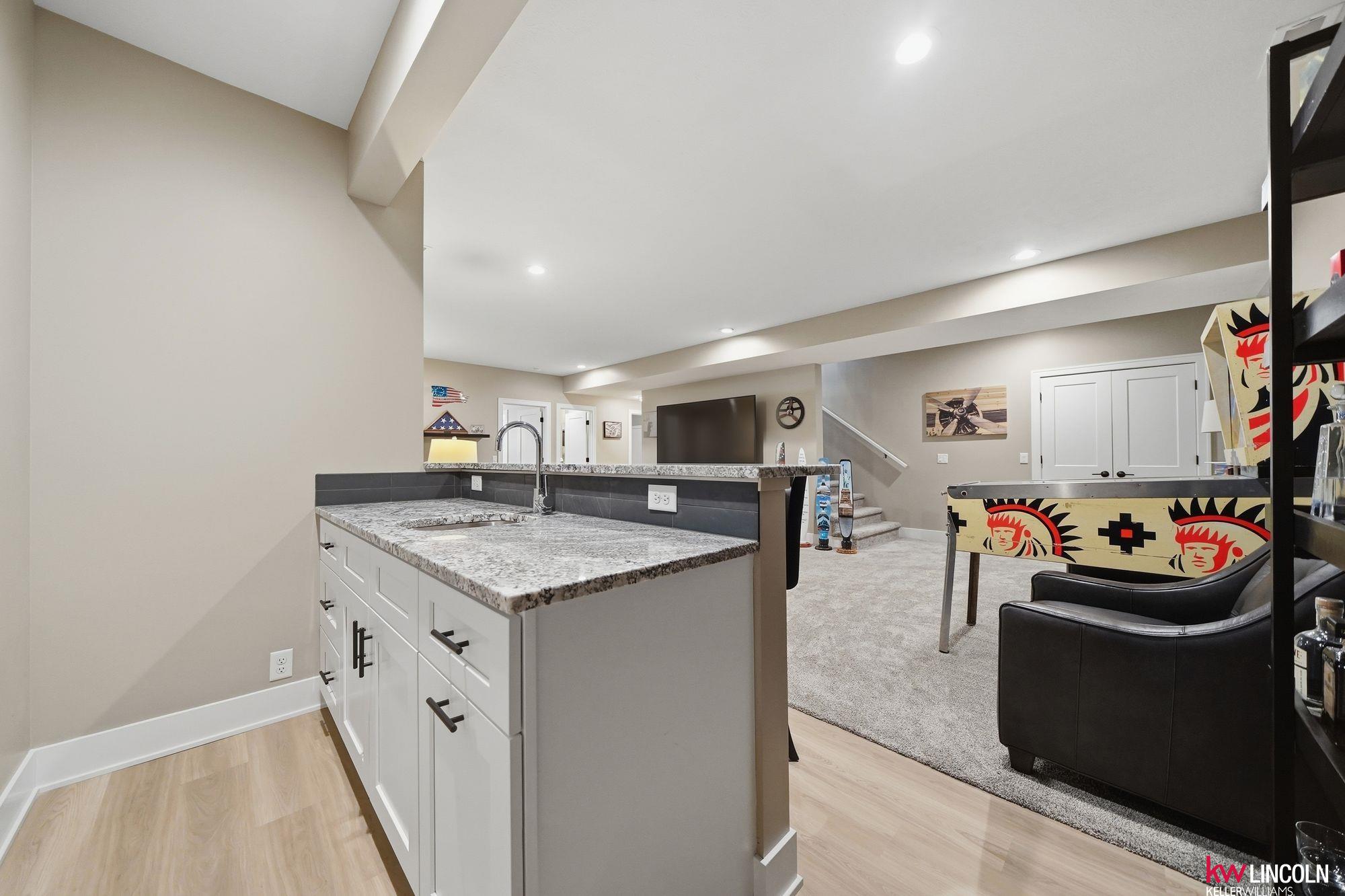 This STUNNING ranch home has the highest finishes/upgrades throughout. 2BR’s up & 2BR’s down. Oversized 3-car garage, fully insulated & finished. 11’ flat ceilings & 9’ elsewhere incl bsmt. The main floor features a living room, w/Natural stone fireplace, a beautiful kitchen w/soft-close drawers & doors, crown molding, granite, 7’ island w/seating, stainless steel appls, large walk-in pantry w/built-in freezer area. Bench with coat hooks at garage entry w/tons of custom cabinetry & first floor laundry! Primary bedroom has double sinks, tiled walk-in shower & soaker tub. A 2nd bedroom & 2nd full bath on main floor. The finished bsmt has 2 bedrooms, 1 w/walk-in closet, 1 bathroom, large living room w/amazing, custom wet bar area. Plus, lots of storage space! A covered back extended patio with beautiful stamped concrete, above-ground pool/deck area. Full vinyl privacy fence & shed on slab are huge bonuses! This home has so many extras & is ready for the next owners. Schedule your tour now