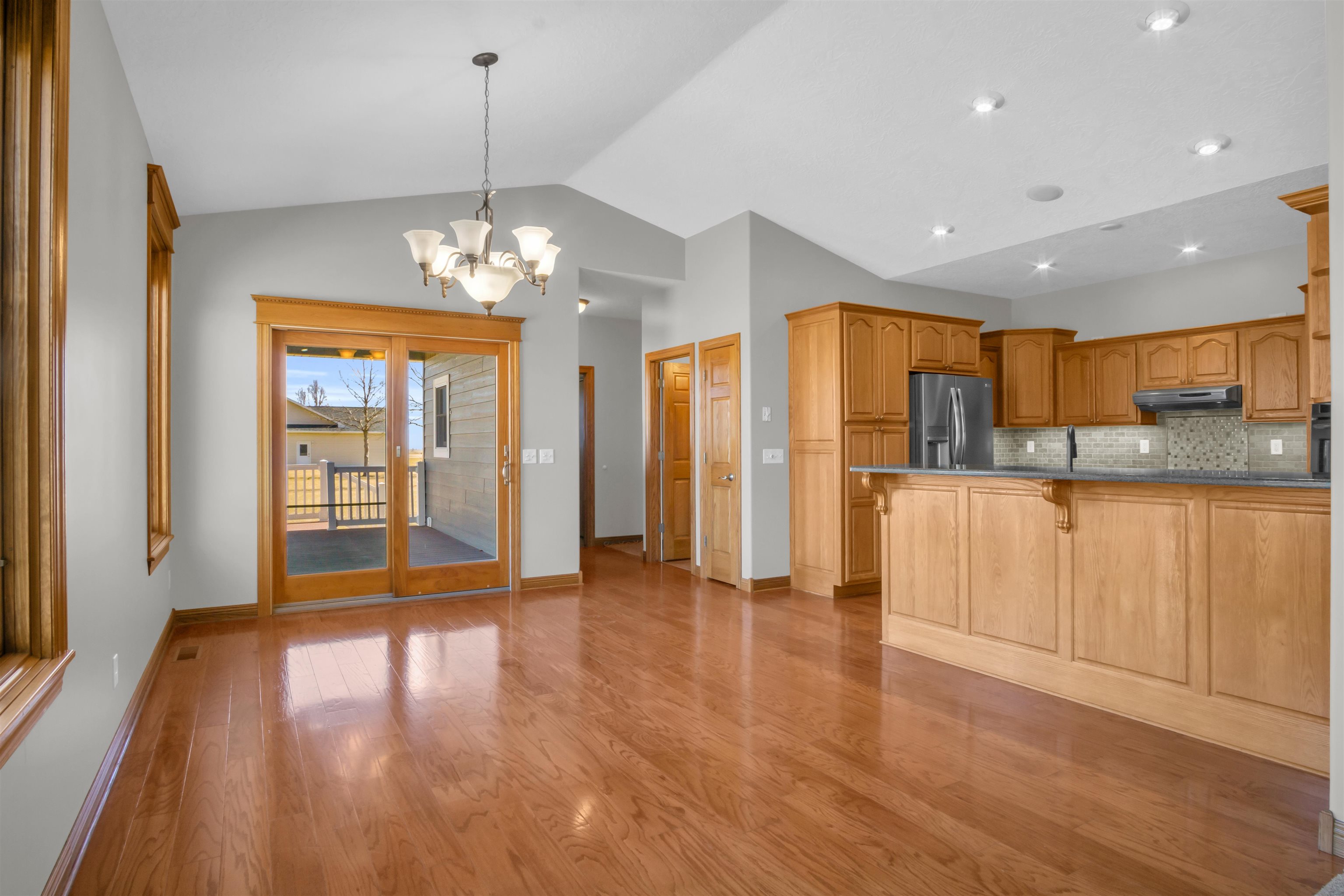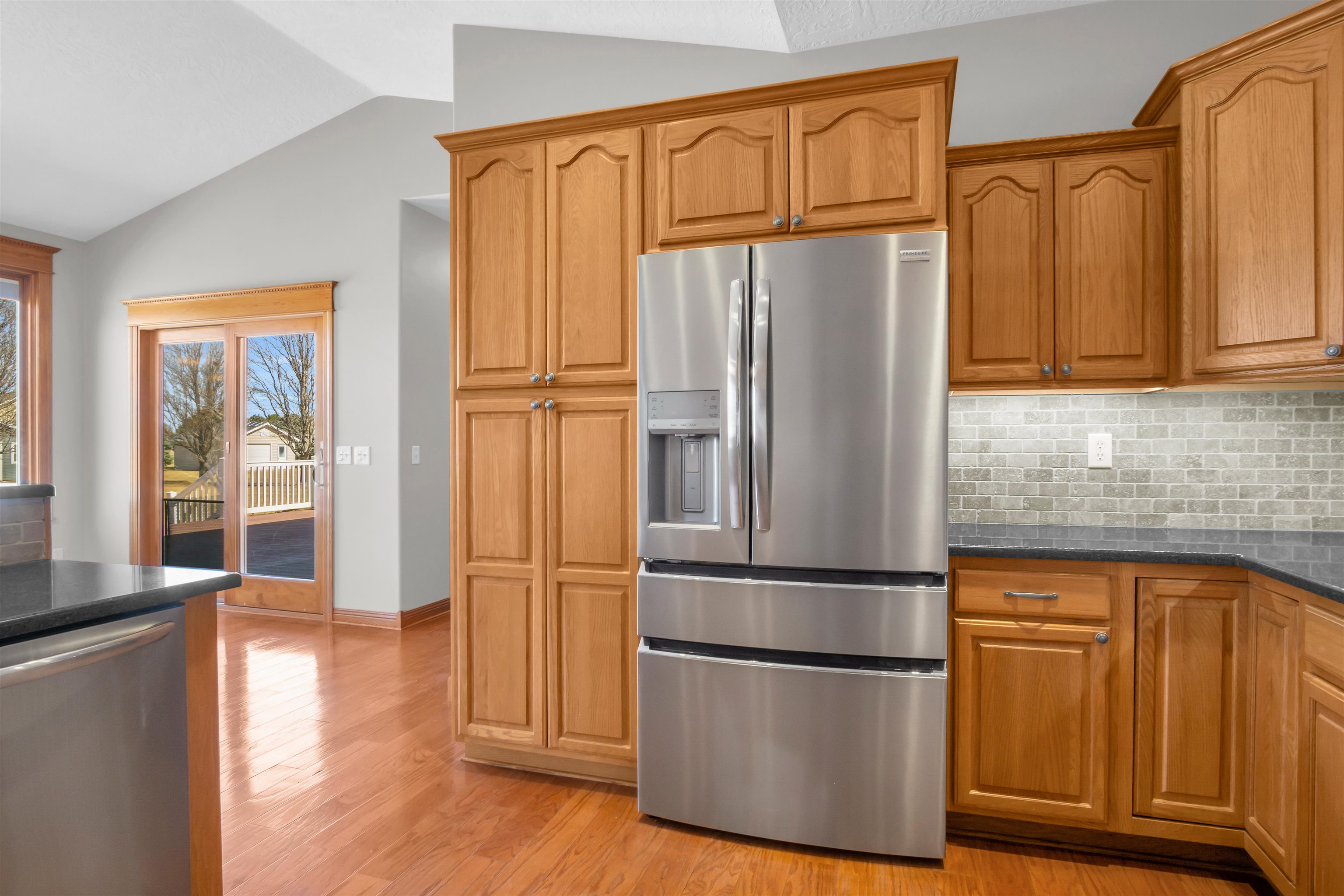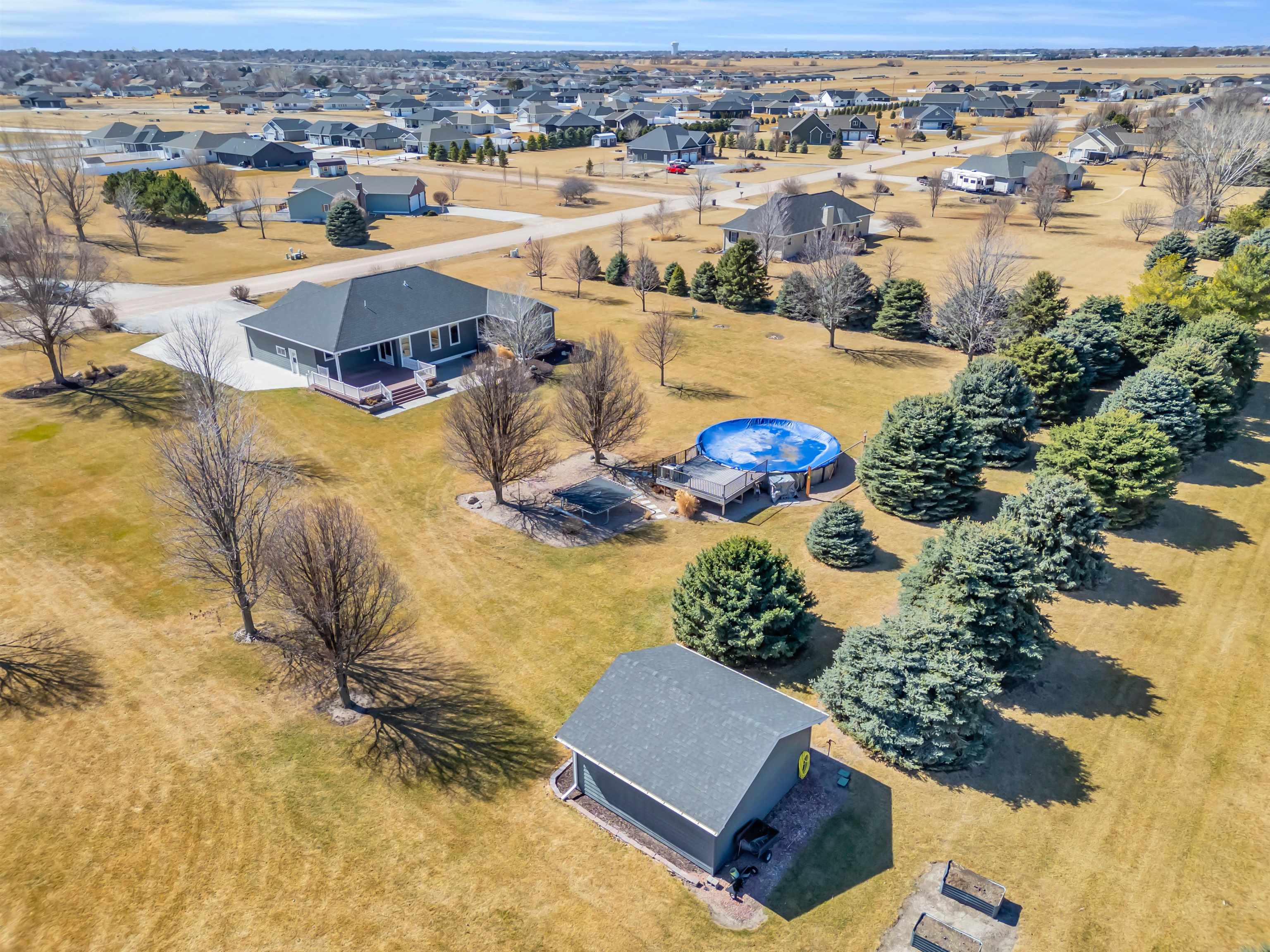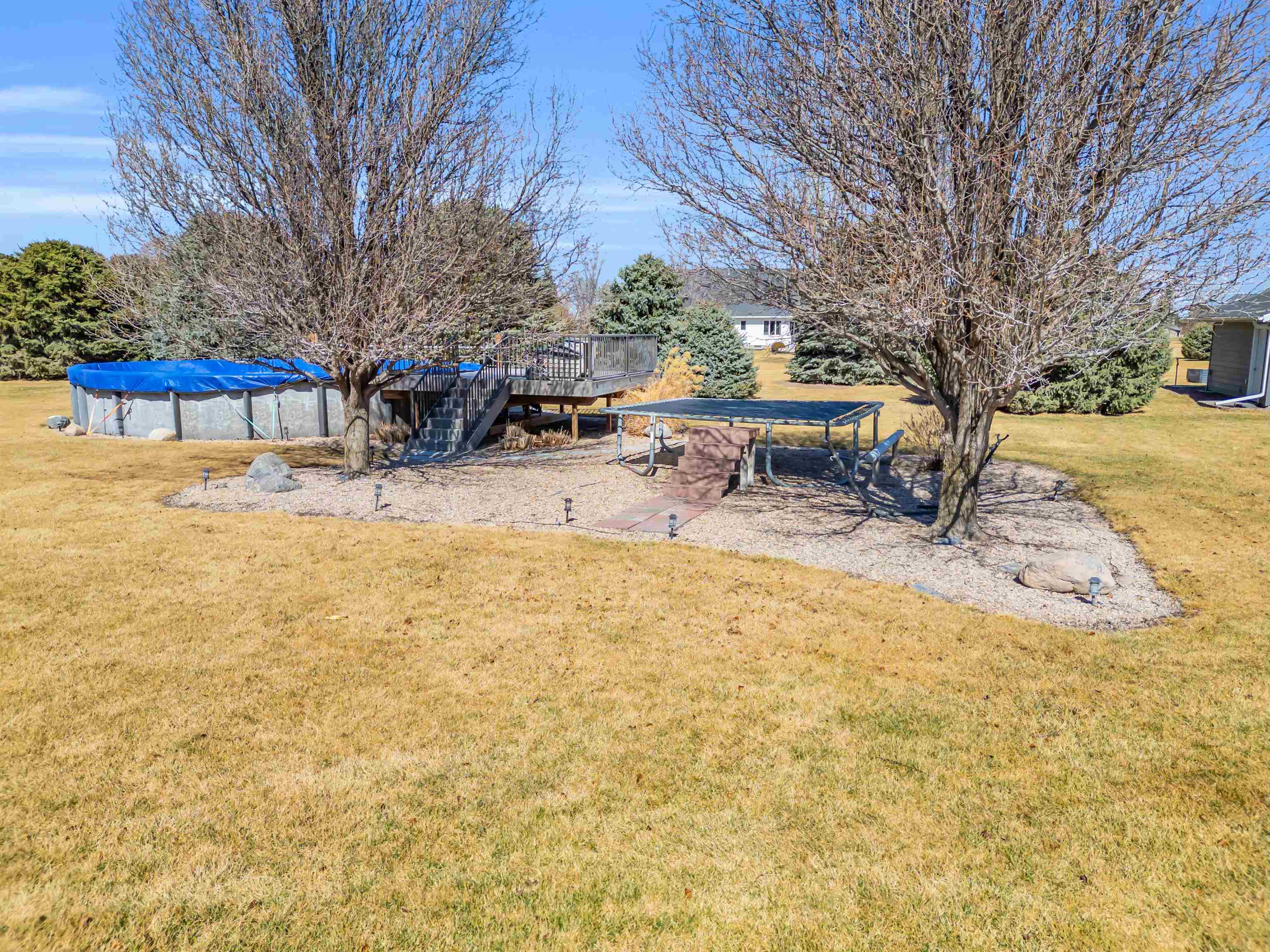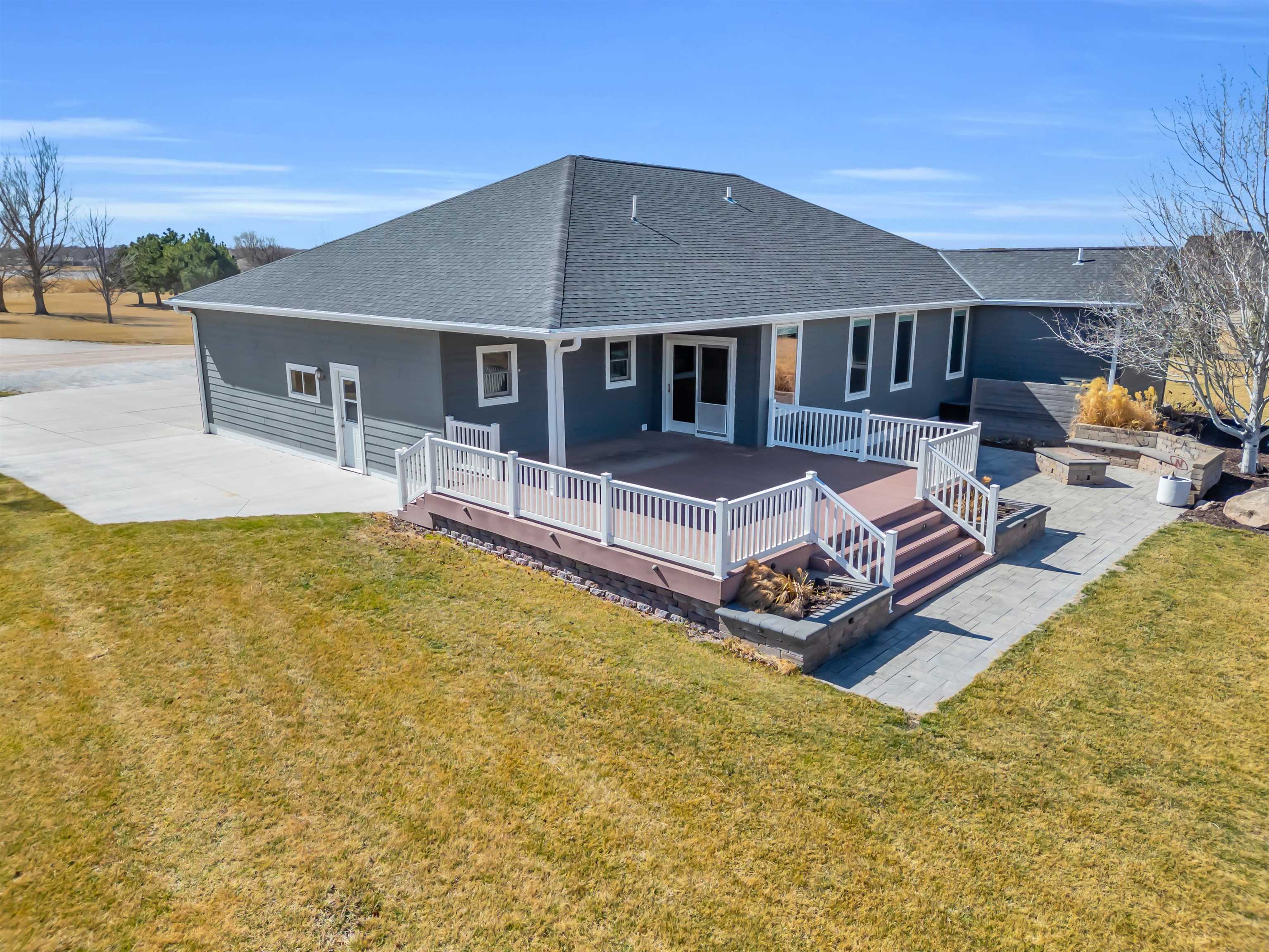 This beautiful home in a sought-after neighborhood features 5 bedrooms, 4 bathrooms, and a large 3-car garage, all on 1.6 acres. Located just outside city limits, yet feeling like you're in Kearney, this home boasts numerous updates, including Pella windows with shades, LP Smart Siding, a double septic system leach field, a Culligan water softener, replaced HVAC, updated bathrooms, and a new roof and gutters to be installed before closing. The kitchen offers oak cabinets with quartz countertops, newer appliances, and true hardwood floors in both the kitchen/dining area and the entry. The primary suite includes a large bedroom, a bath with a deep soaker tub and onyx shower, and a wonderful closet system. The basement features a large family room with a fireplace, 2 conforming bedrooms, a kids' playroom, and 2 storage rooms. Enjoy a huge deck, a propane fire pit with cobblestone, an above-ground pool with a salt filter system, a trampoline, and a finished 20x20 garden shed. This 1-owner home has been extremely well-maintained. Come take a look!