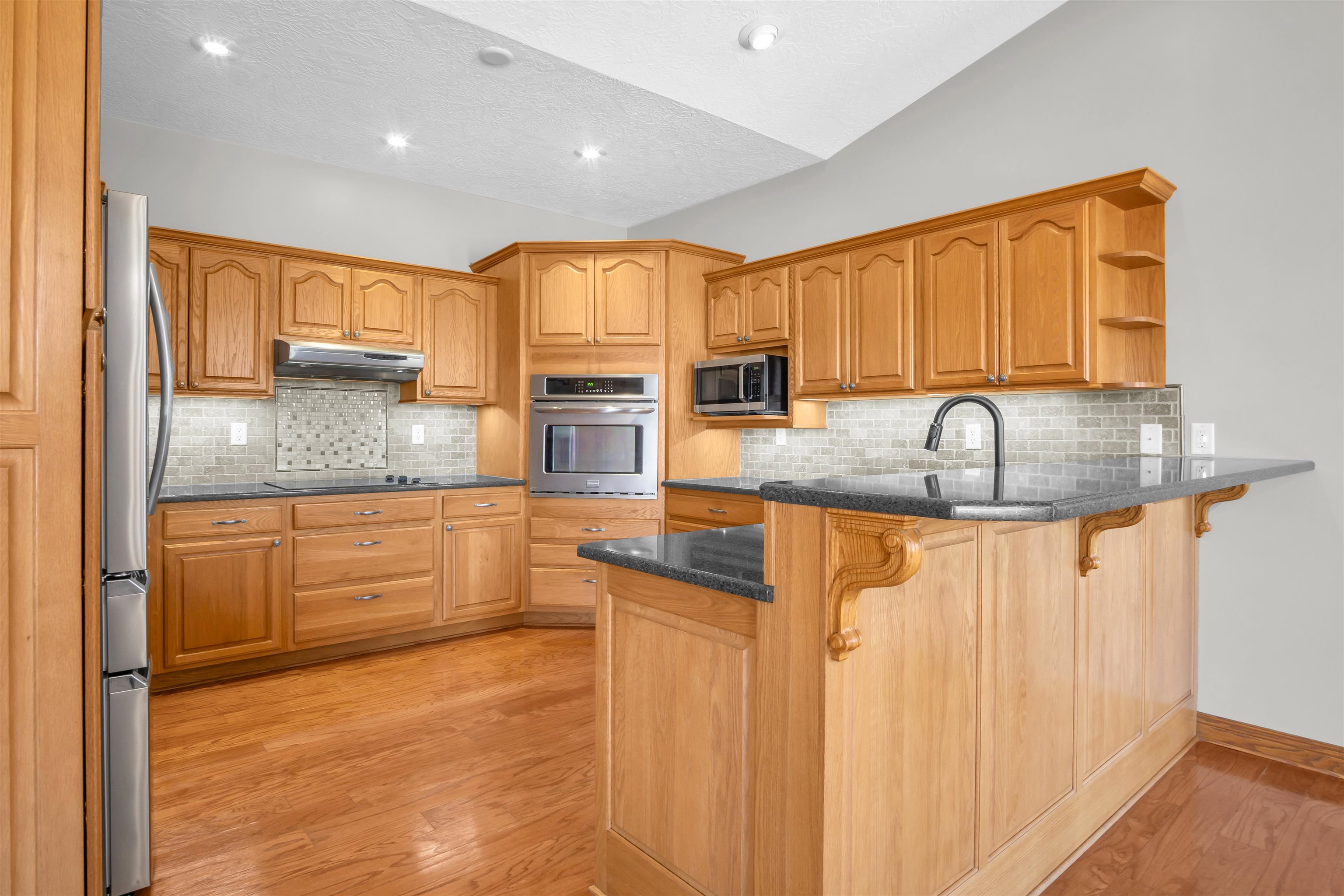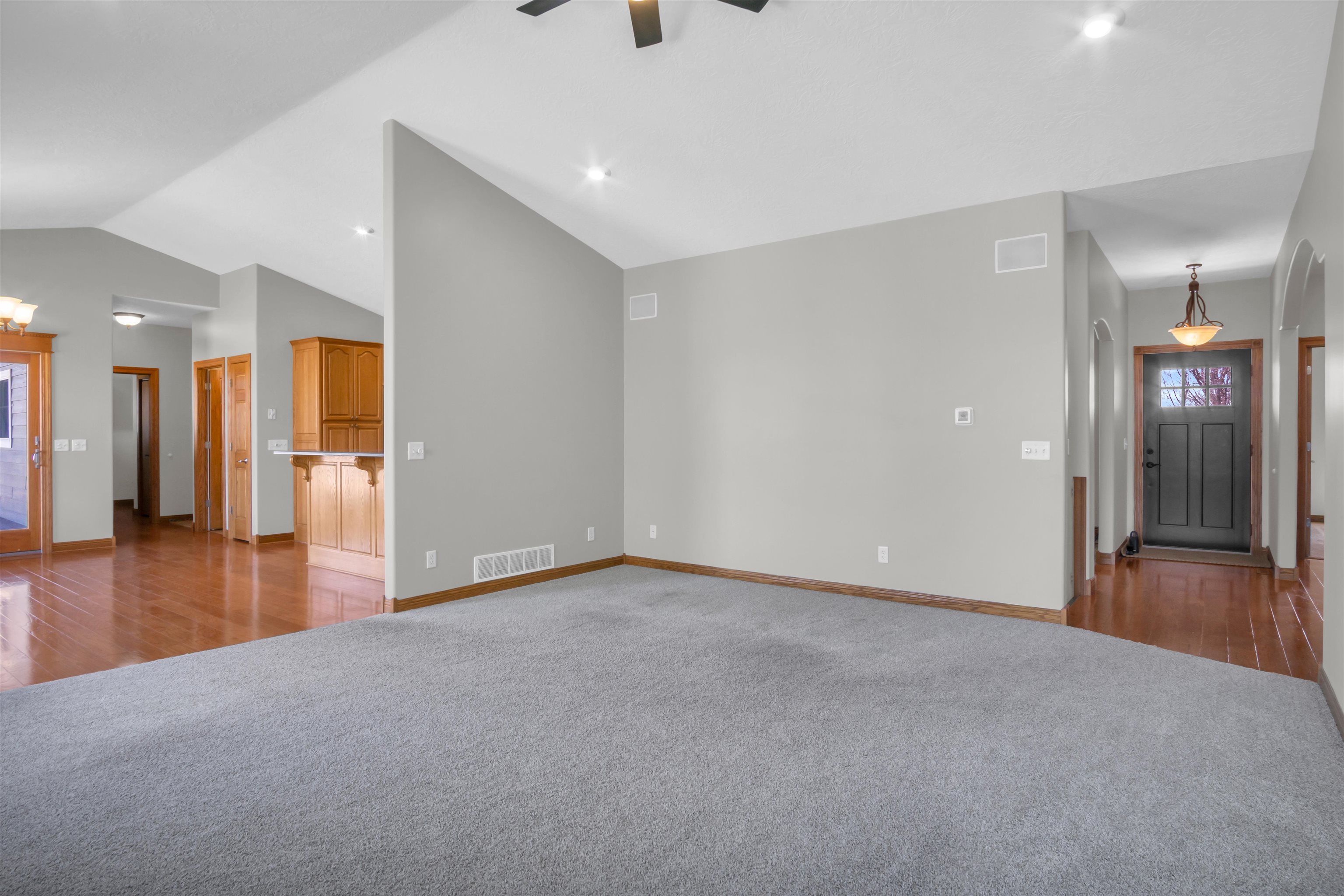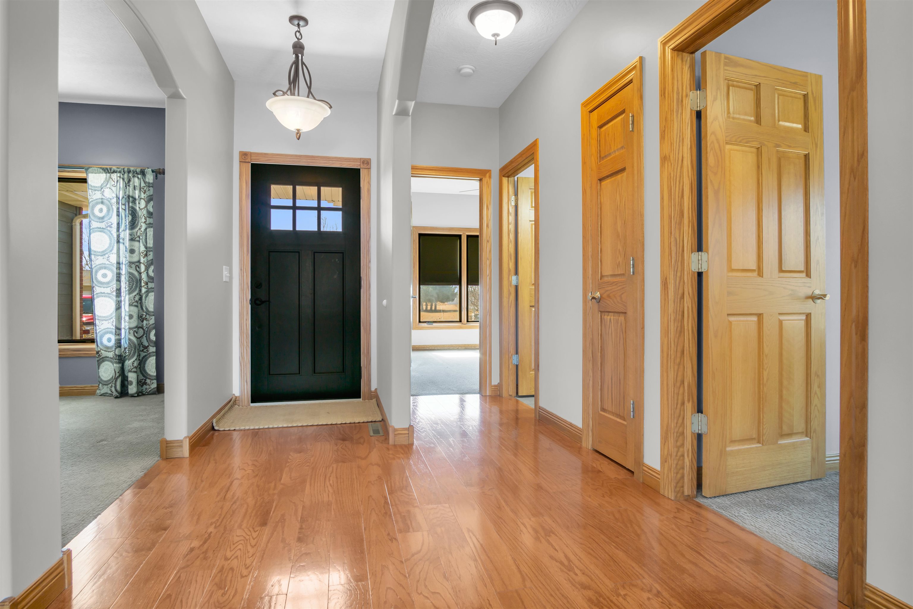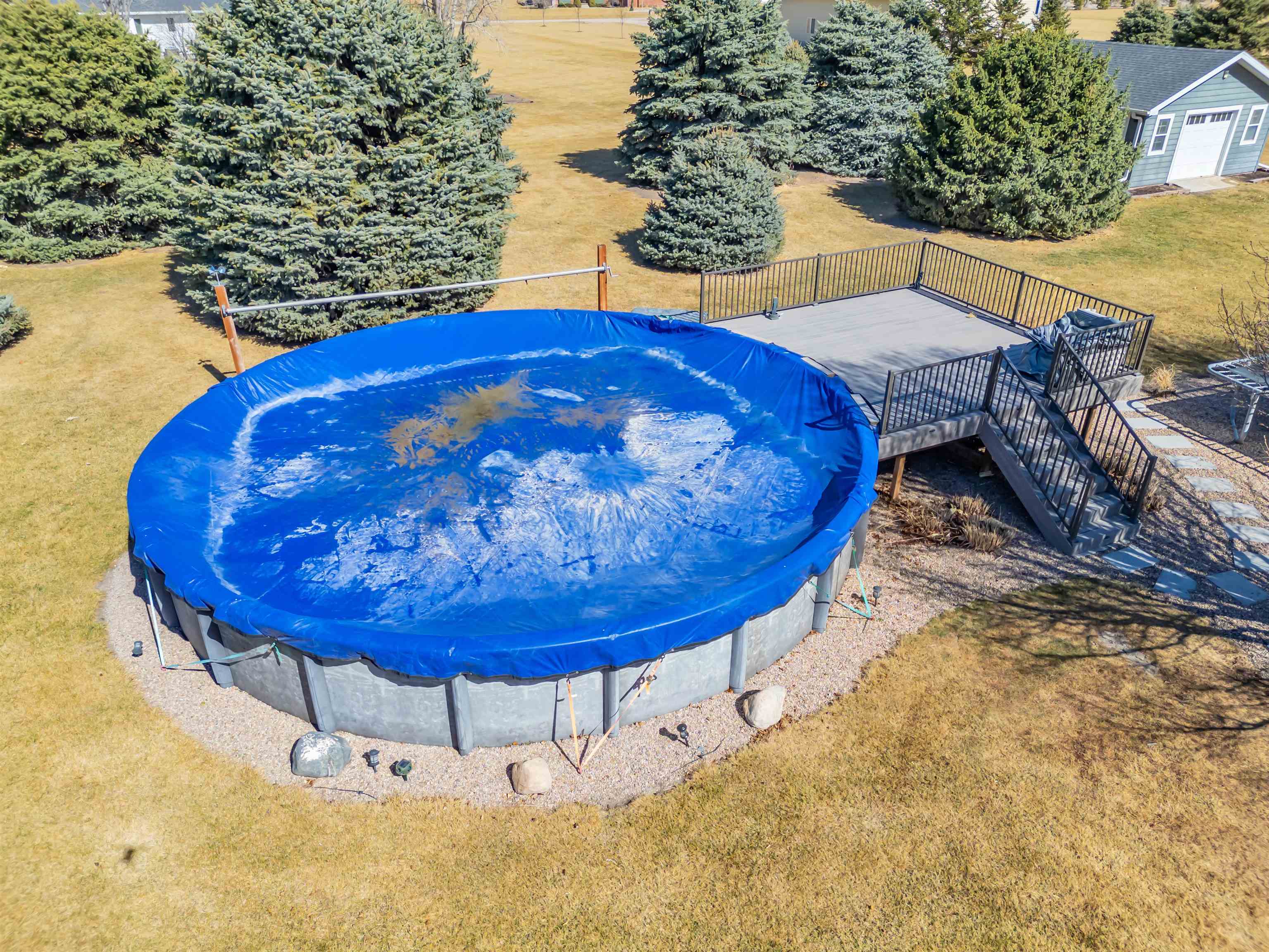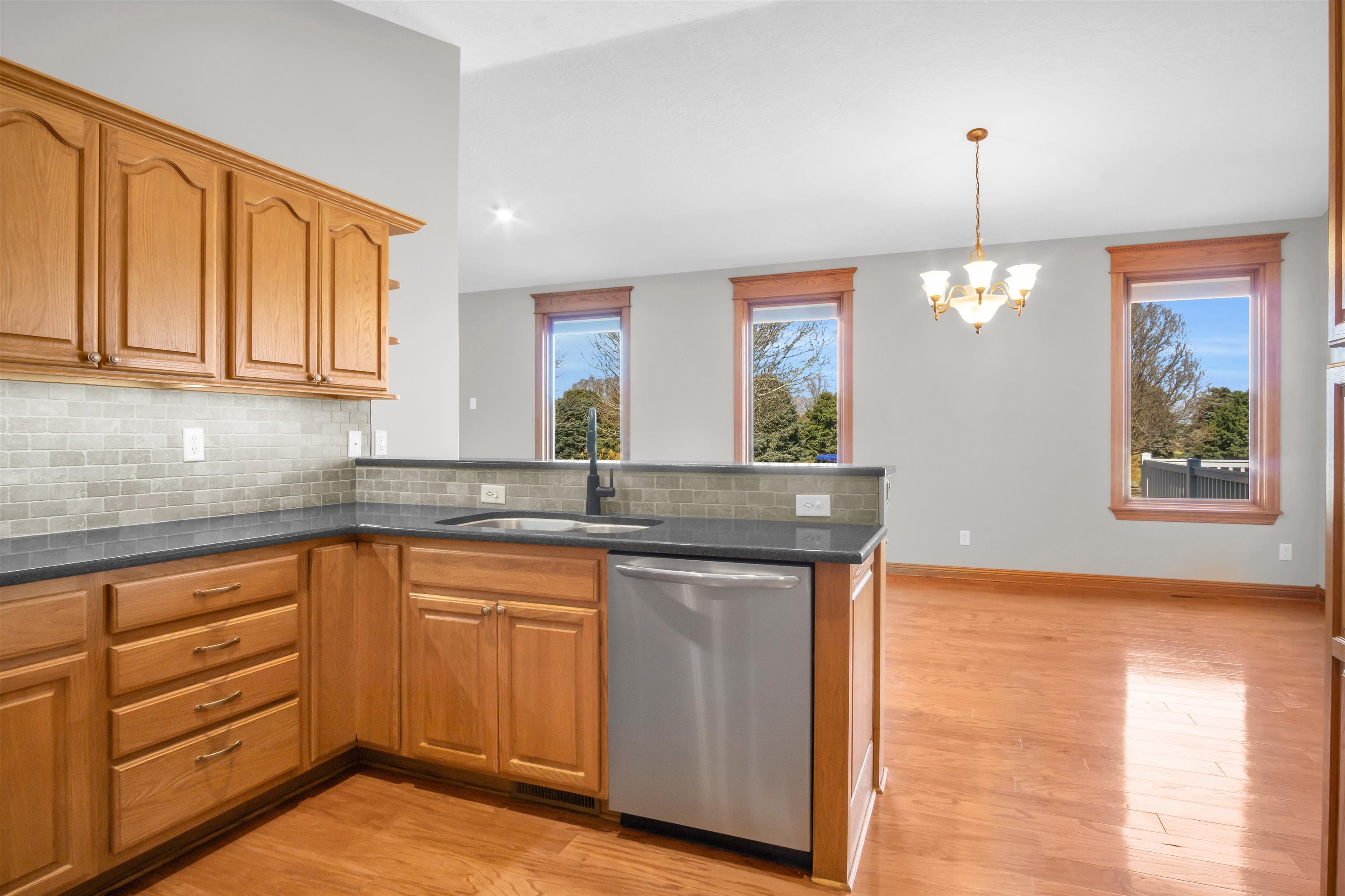 This beautiful home in a sought-after neighborhood features 5 bedrooms, 4 bathrooms, and a large 3-car garage, all on 1.6 acres. Located just outside city limits, yet feeling like you're in Kearney, this home boasts numerous updates, including Pella windows with shades, LP Smart Siding, a double septic system leach field, a Culligan water softener, replaced HVAC, updated bathrooms, and a new roof and gutters to be installed before closing. The kitchen offers oak cabinets with quartz countertops, newer appliances, and true hardwood floors in both the kitchen/dining area and the entry. The primary suite includes a large bedroom, a bath with a deep soaker tub and onyx shower, and a wonderful closet system. The basement features a large family room with a fireplace, 2 conforming bedrooms, a kids' playroom, and 2 storage rooms. Enjoy a huge deck, a propane fire pit with cobblestone, an above-ground pool with a salt filter system, a trampoline, and a finished 20x20 garden shed. This 1-owner home has been extremely well-maintained. Come take a look!