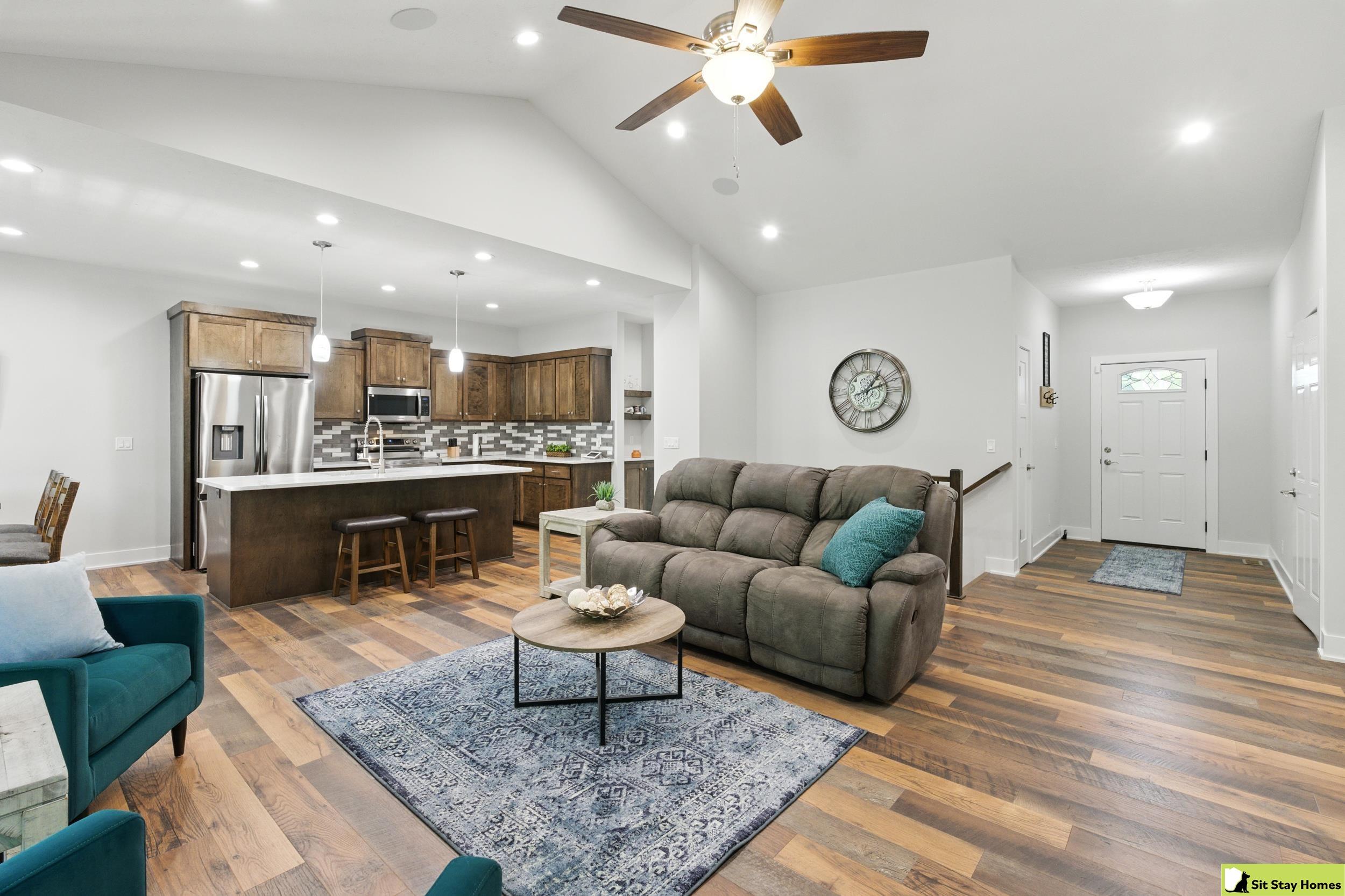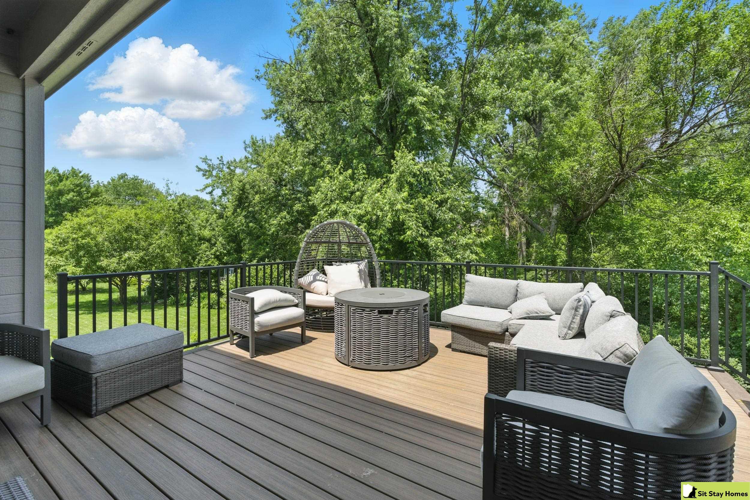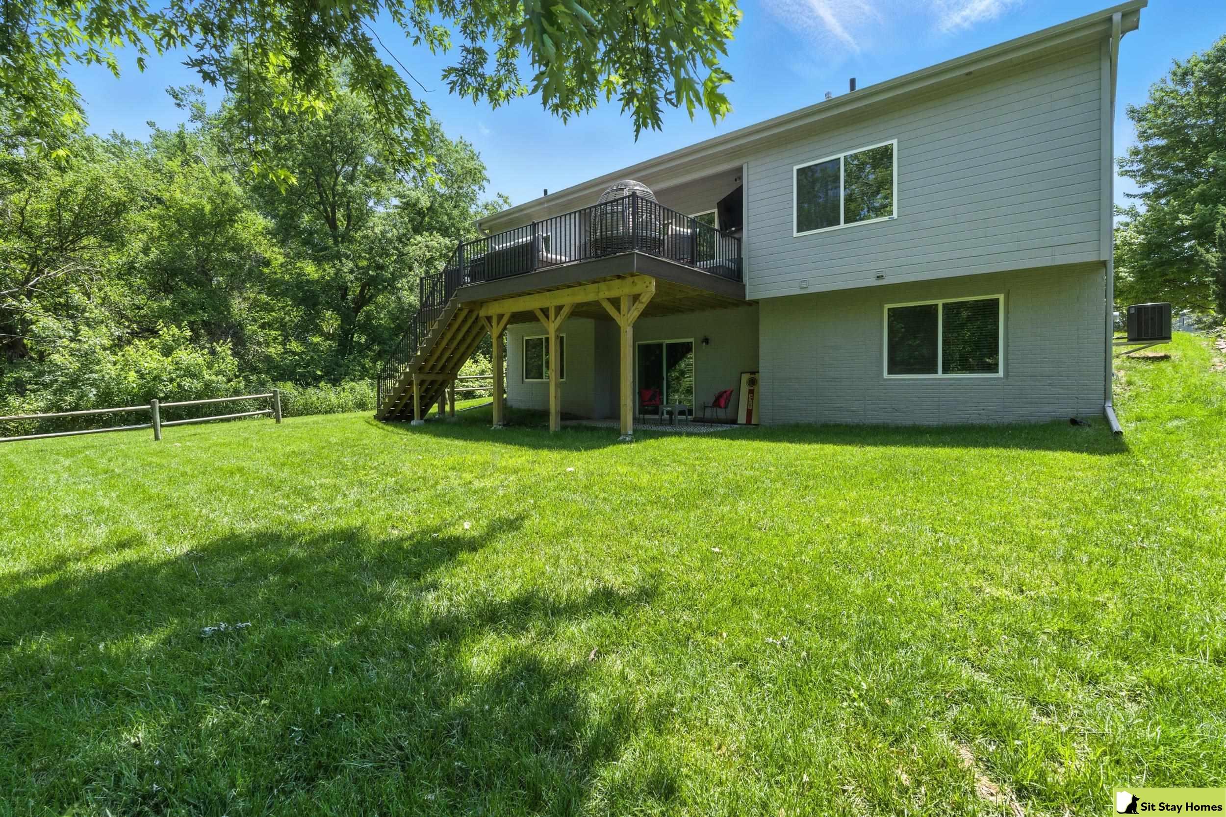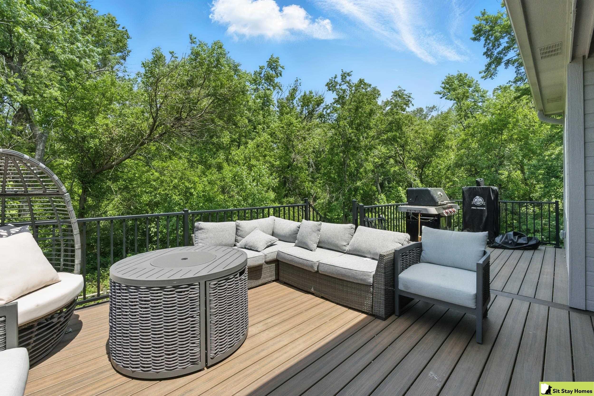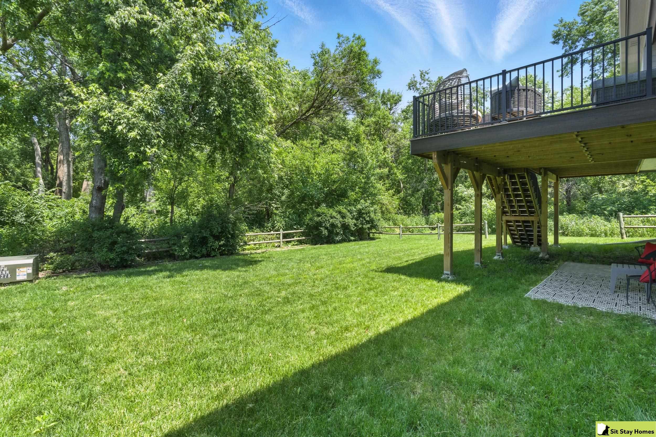 Incredible custom home almost new home backs wooded area! Amazing extra large trex deck, wired for outdoor TV & speakers. This home has no behind, front, or across the street neighbors. The view is all trees. Inside, you’ll love the two spacious main-floor suites—perfect for guests or multigenerational living. The lower level 3rd bedroom is also very large & has a walk in shower. Finishes throughout include quartz counter tops, high end luxury vinyl plank flooring & tile, custom railings, recessed lighting, & large windows with wooded views. The main floor living/kitchen area has built in Sonos speakers & a fun coffee area w/shelving. The walk-out basement adds even more space with a rec room, another living area and plumbing ready for a future wet bar. Outside there's durable LP SmartSide siding, 50-year shingles, & the appliances are still under warranty. Check out the LOW taxes and convenient location. All measurements are approximate.