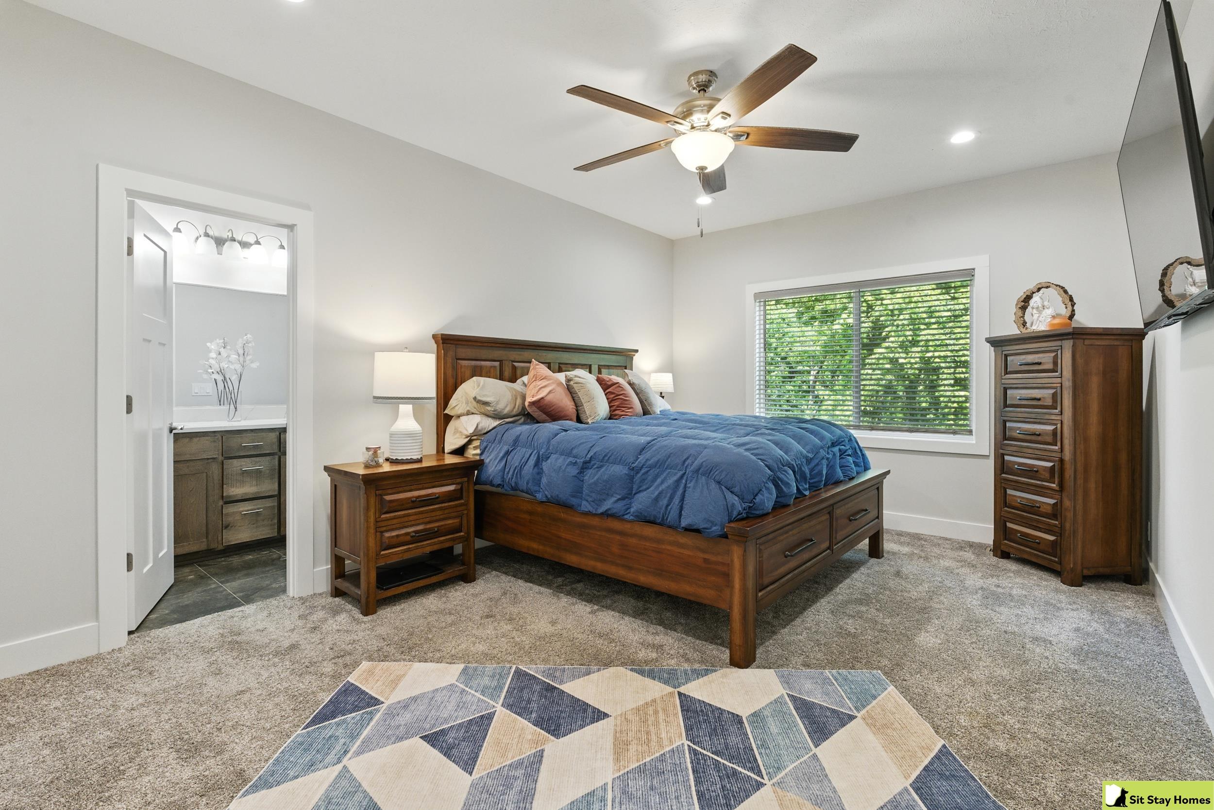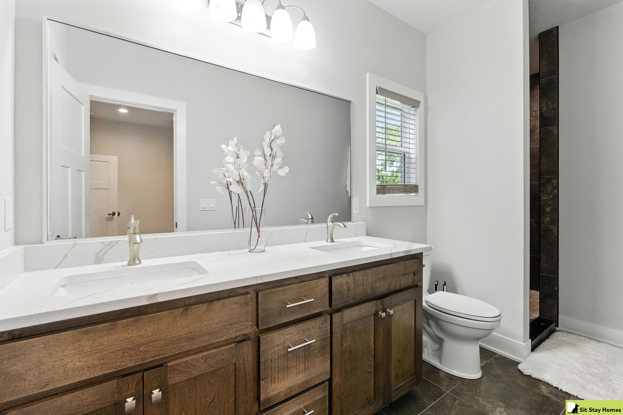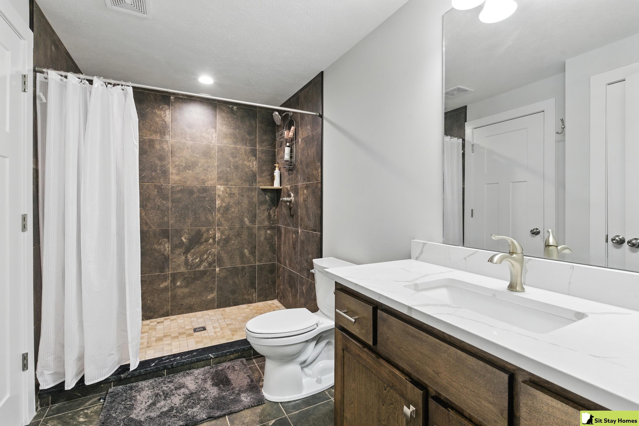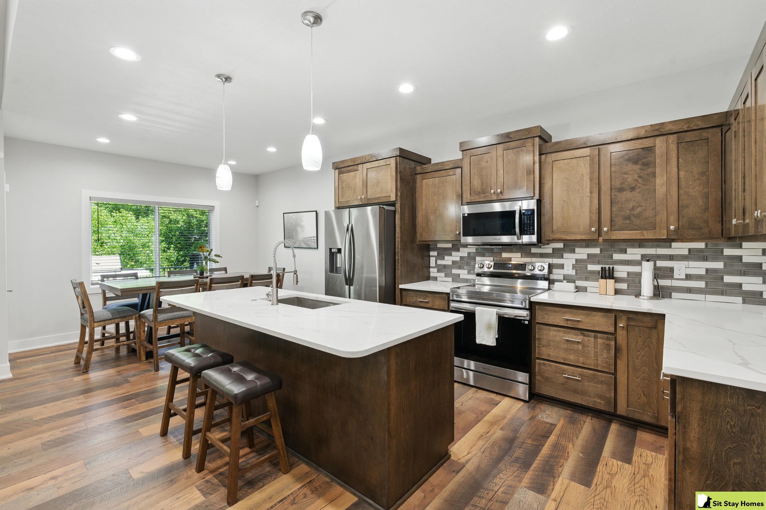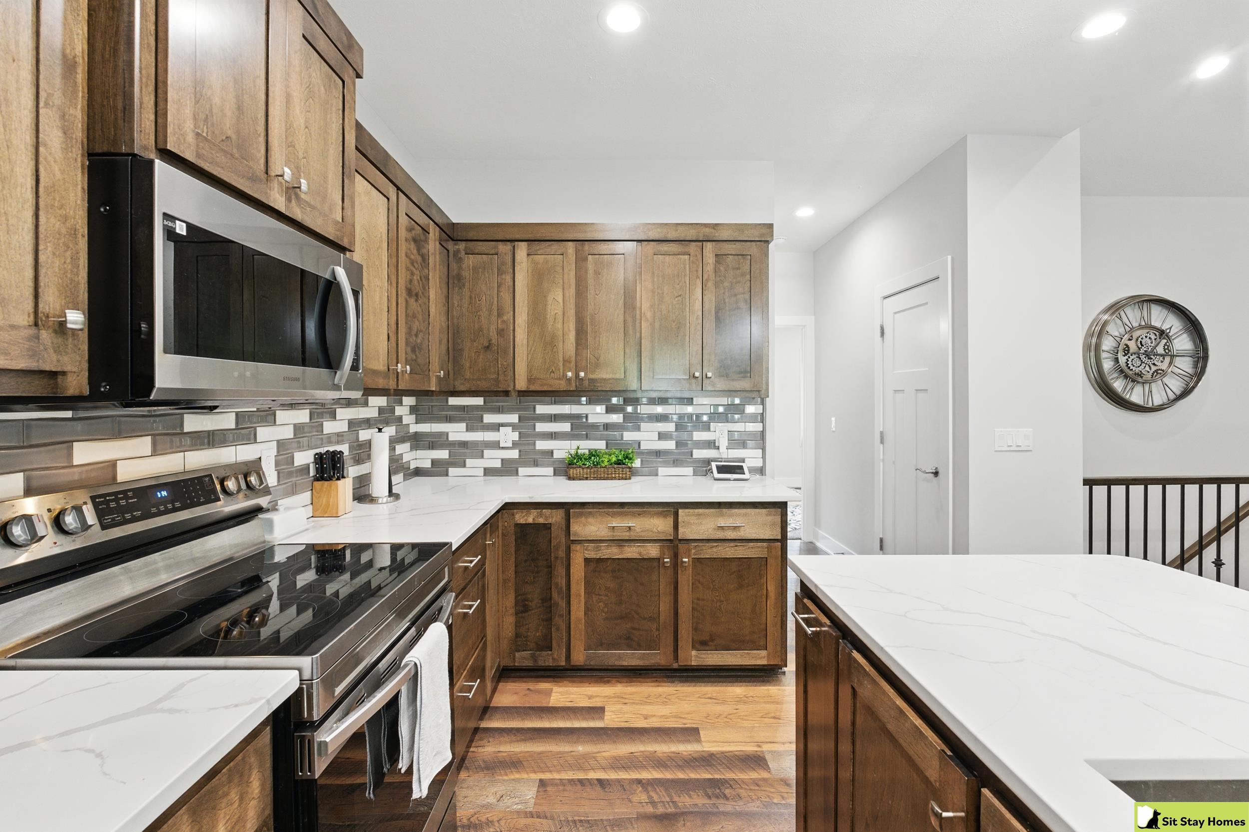 Incredible custom home almost new home backs wooded area! Amazing extra large trex deck, wired for outdoor TV & speakers. This home has no behind, front, or across the street neighbors. The view is all trees. Inside, you’ll love the two spacious main-floor suites—perfect for guests or multigenerational living. The lower level 3rd bedroom is also very large & has a walk in shower. Finishes throughout include quartz counter tops, high end luxury vinyl plank flooring & tile, custom railings, recessed lighting, & large windows with wooded views. The main floor living/kitchen area has built in Sonos speakers & a fun coffee area w/shelving. The walk-out basement adds even more space with a rec room, another living area and plumbing ready for a future wet bar. Outside there's durable LP SmartSide siding, 50-year shingles, & the appliances are still under warranty. Check out the LOW taxes and convenient location. All measurements are approximate.