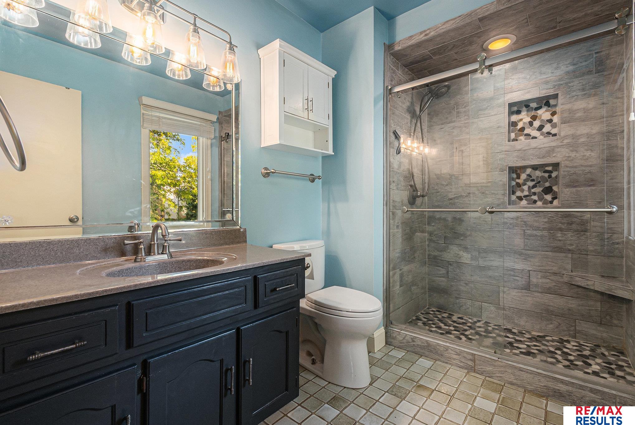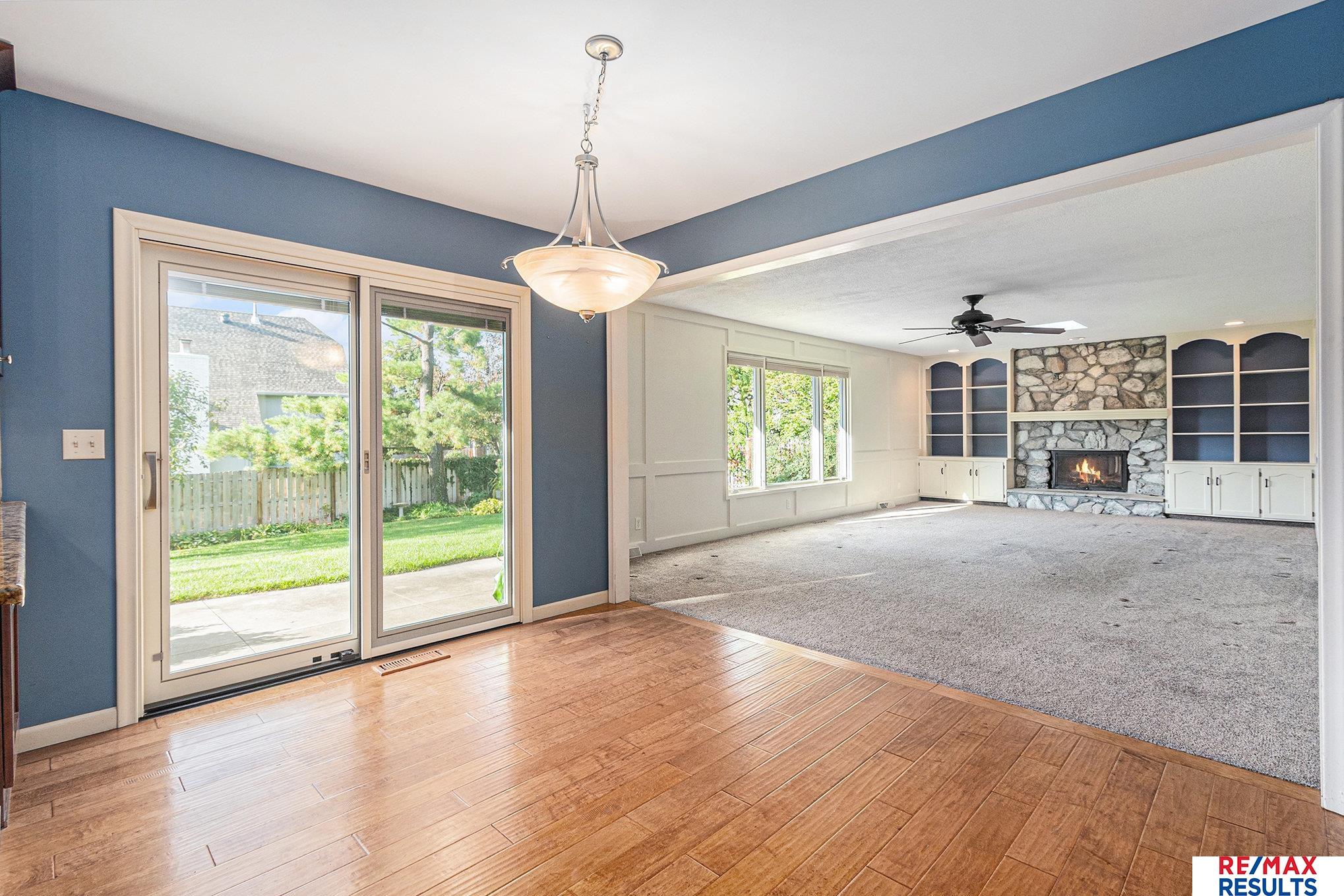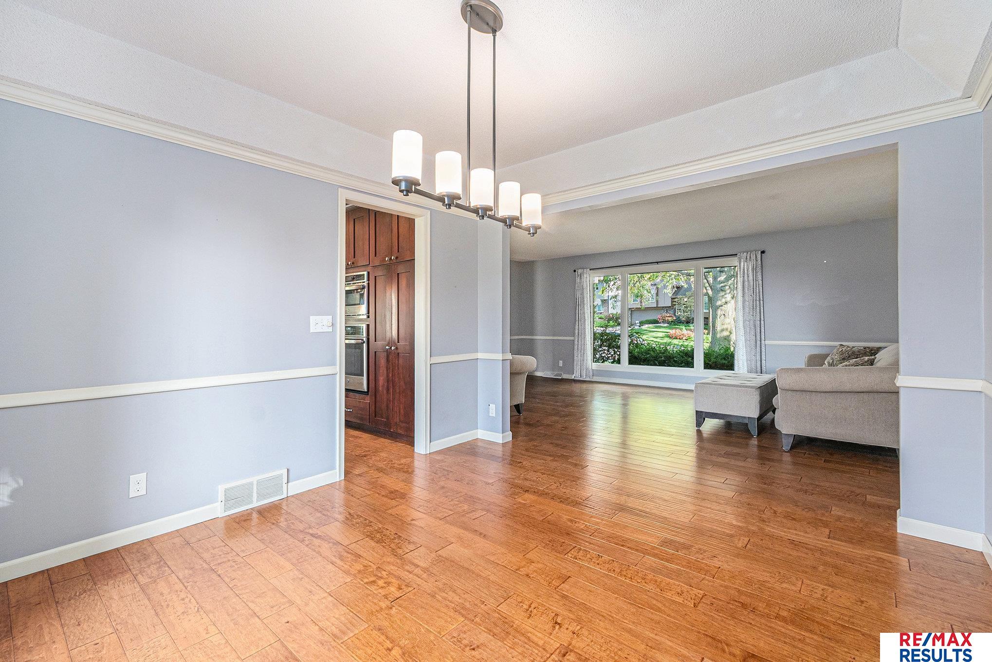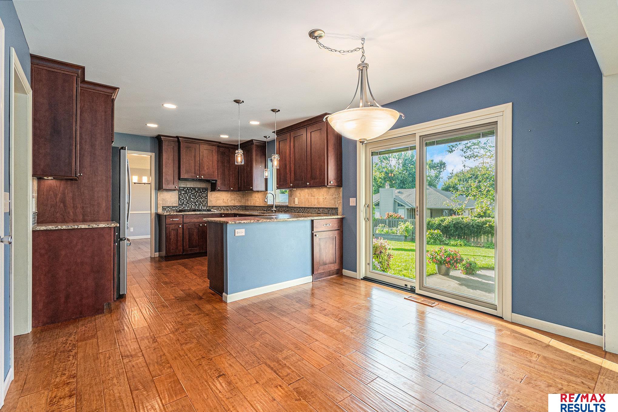 WOW — this pre-inspected, southeast-facing gem is a true retreat in the heart of the Millard North school district! The park-like yard is framed by mature trees, lush landscaping, and a privacy fence, all kept vibrant with a sprinkler system. Inside, the gorgeous kitchen steals the show with updated cabinetry, granite counters, stylish backsplash, high-end stainless appliances, and beautiful wood floors. You’ll love the elegant lighting throughout and the great room’s detailed painted woodwork, built-ins, and stunning floor-to-ceiling stone fireplace. The primary suite offers a spa-like tiled shower and a massive walk-in closet, while the lower level is perfect for entertaining with a spacious rec room, half bath, and incredible storage. All major appliances — including washer and dryer — are included. Just three blocks from the neighborhood Park, tennis courts, and the Papio Trail, this home has the perfect mix of comfort, beauty, and location!