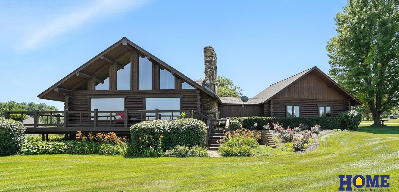 BRAND NEW ROOF (Class 4 Shingles) has been added to this beautiful home at Lakeside Estates! Nestled on 6 acres, this one-of-a-kind lakefront log cabin offers breathtaking views. Meticulously cared for, this home radiates pride of ownership. The heart of the home is the living & informal dining area, where large windows frame the peaceful lake views. The second level bedroom opens to a private deck with sweeping vistas of the lake and countryside. Outdoors, a wraparound deck offers the ideal space for enjoying the tranquil surroundings. Unwind by the firepit area or enjoy the private 10-acre lake, perfect for fishing or paddle boating. A detached 2-car garage with shop and finished loft area provide versatile space for hobbies or storage. Detached garage also has 100 amp electrical capacity and 50 amp electrical RV Hookup. Recent updates include new Pella windows, freshly stained exterior logs, newly painted deck and brand new hot water heater. Don't miss this opportunity!