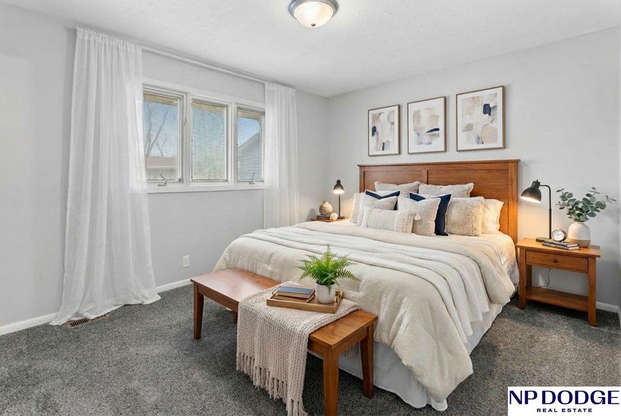 Adorable, updated, and completely move-in ready this Woodhaven cul-de-sac gem makes an impression from the moment you arrive! The refreshed kitchen shines with stainless steel appliances, a bright dining area, and direct access to the brand-new deck perfect for morning coffee or summer evenings. You'll appreciate three comfortable bedrooms, including a spacious primary suite with an updated bath. The finished lower level offers a cozy fireplace and the perfect setting for game days or movie nights. Major updates include HVAC (2021) and convenient between-the-glass blinds. Step outside to a fully fenced yard with a storage shed and space to relax or play. Located in the award-winning Millard School District, with a walking trail to Woodhaven Park right at the end of the cul-de-sac!