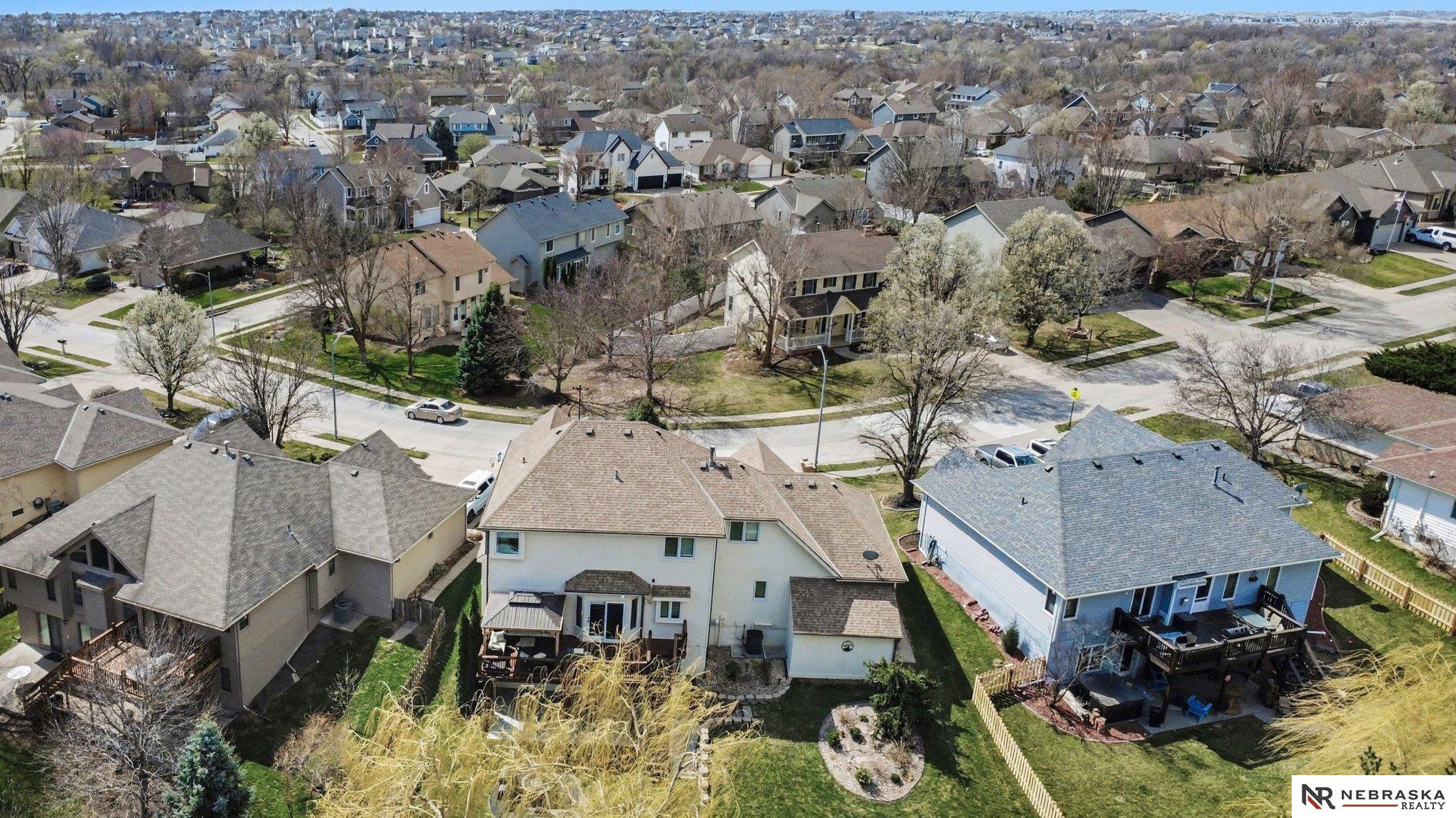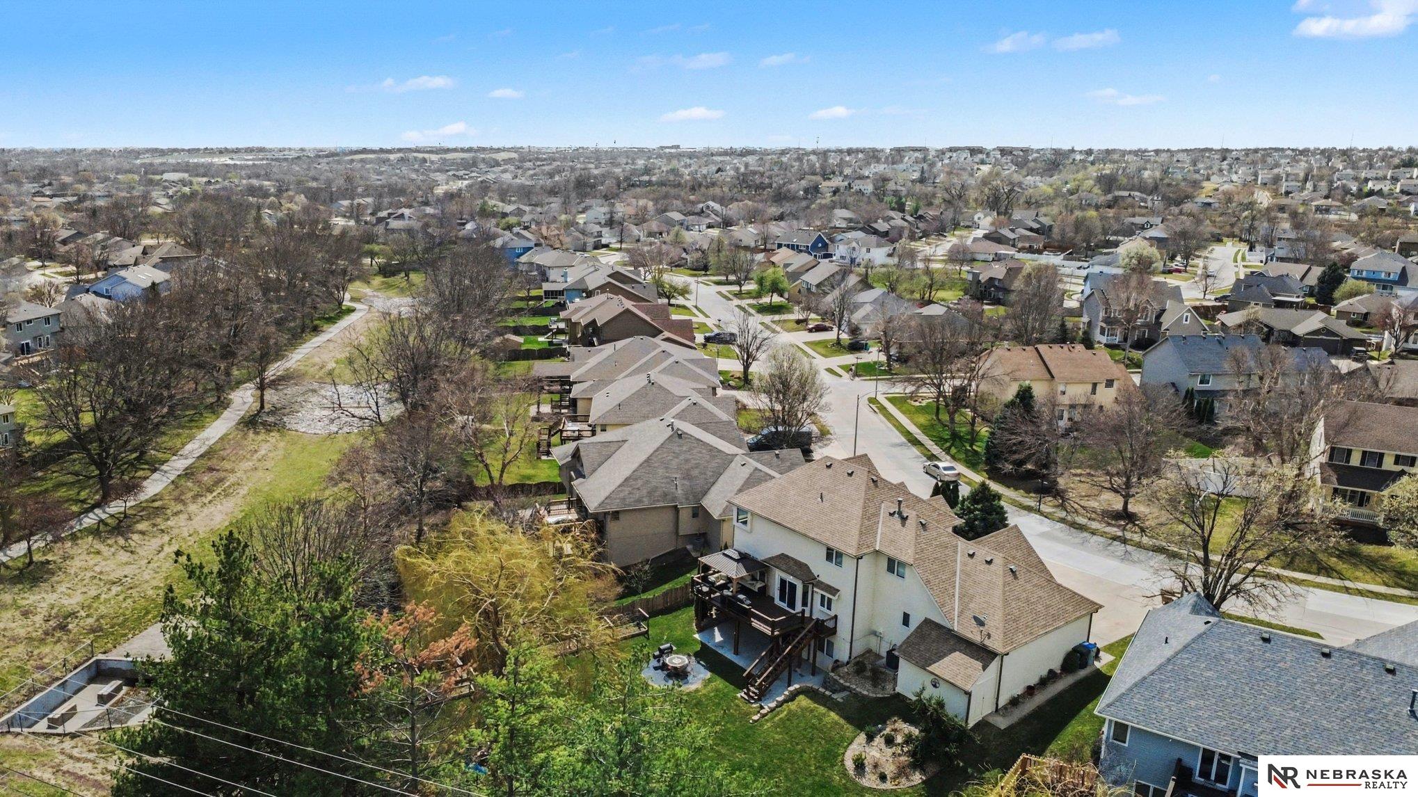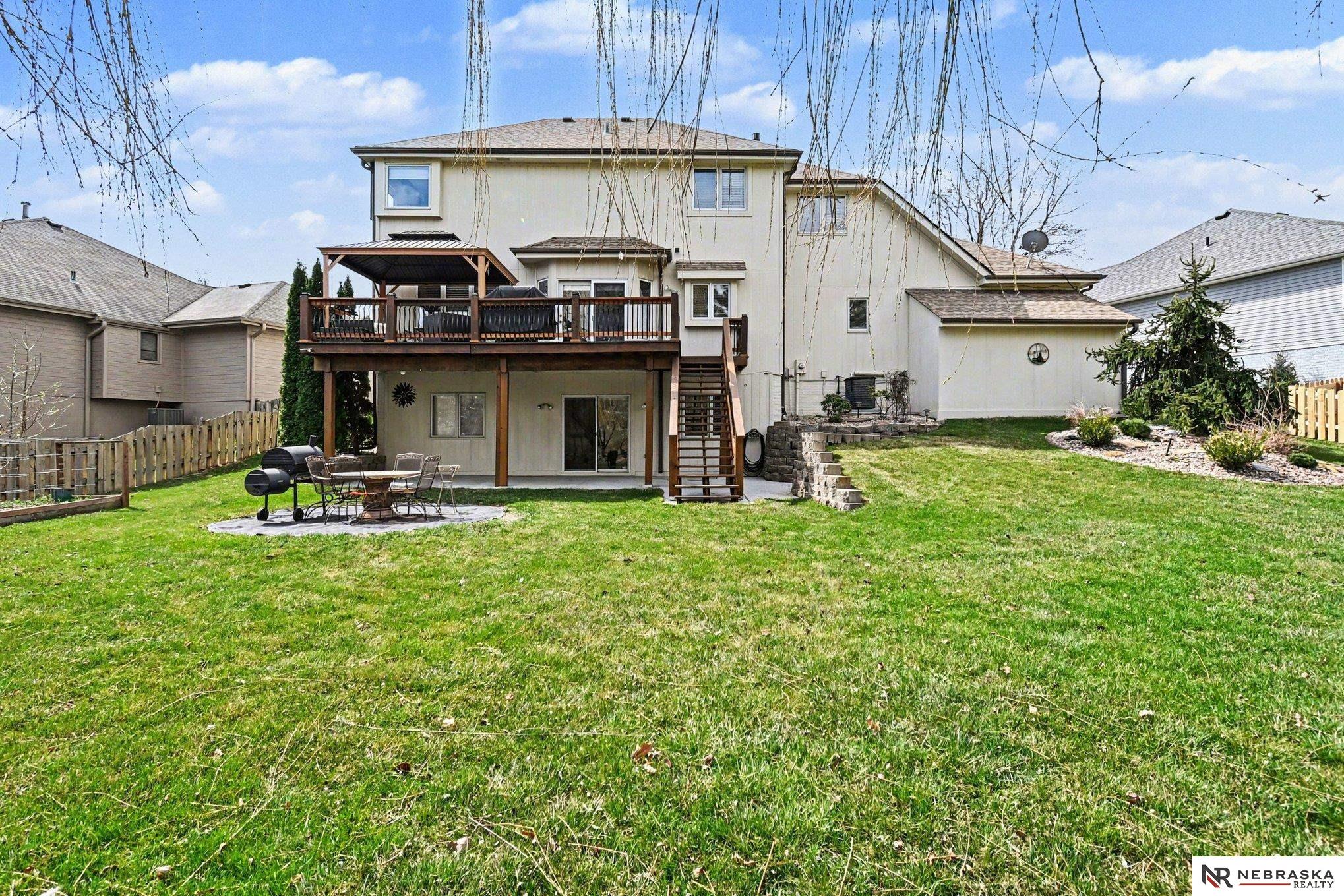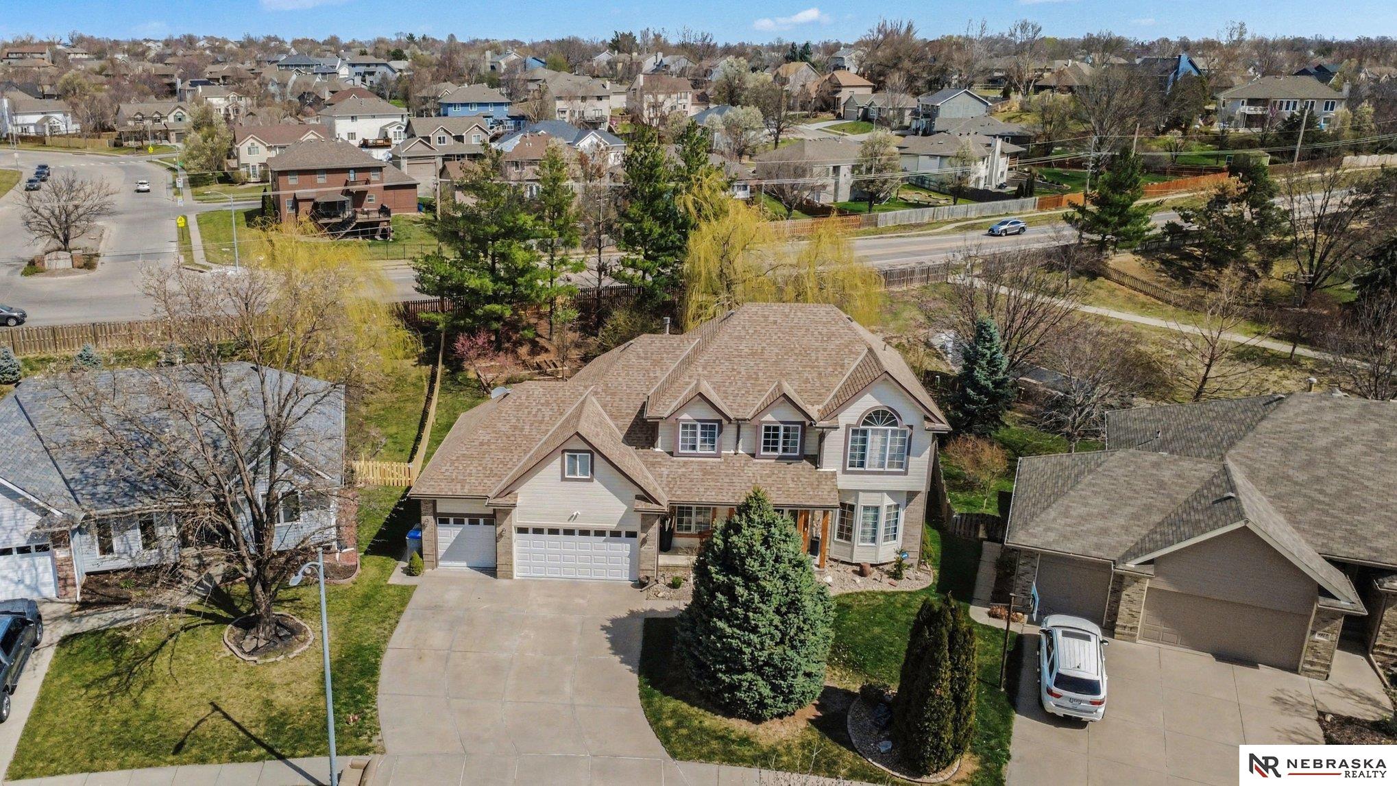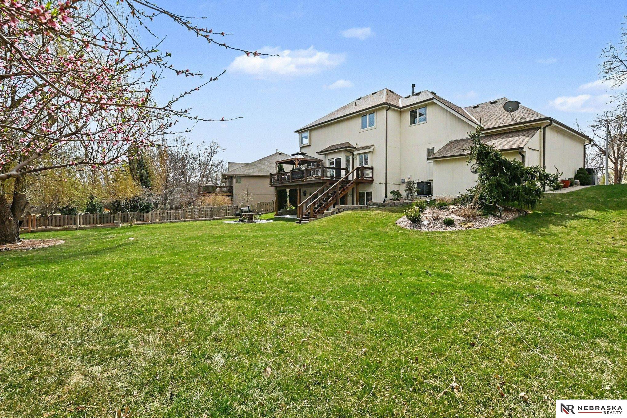 Move-in ready 2-story walkout home in Omaha at 16002 Audrey St! Offering just under 3,400 sq ft with 4 bedrooms, 4 bathrooms, and 2 kitchens, this home is perfect for multi-generational living or entertaining. Features include ceramic tile entry, 9’ ceilings, open-concept main floor, formal and informal dining, and main floor laundry. The kitchen boasts stone countertops and overlooks a large deck with stairs to a park-like backyard with mature trees. Upstairs includes 4 bedrooms and a spacious primary suite with dual vanities, tub, shower, and walk-in closet. The expansive finished walkout basement with 3/4 bathroom and second kitchen adds flexibility. Heated 3-car garage, UGS, partially fenced yard, and prime Omaha location near shopping, dining, and schools.