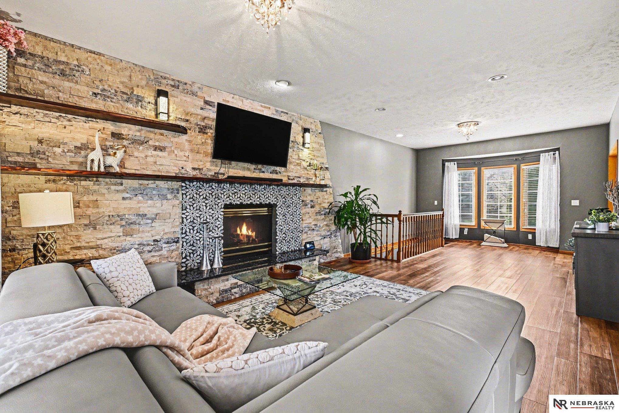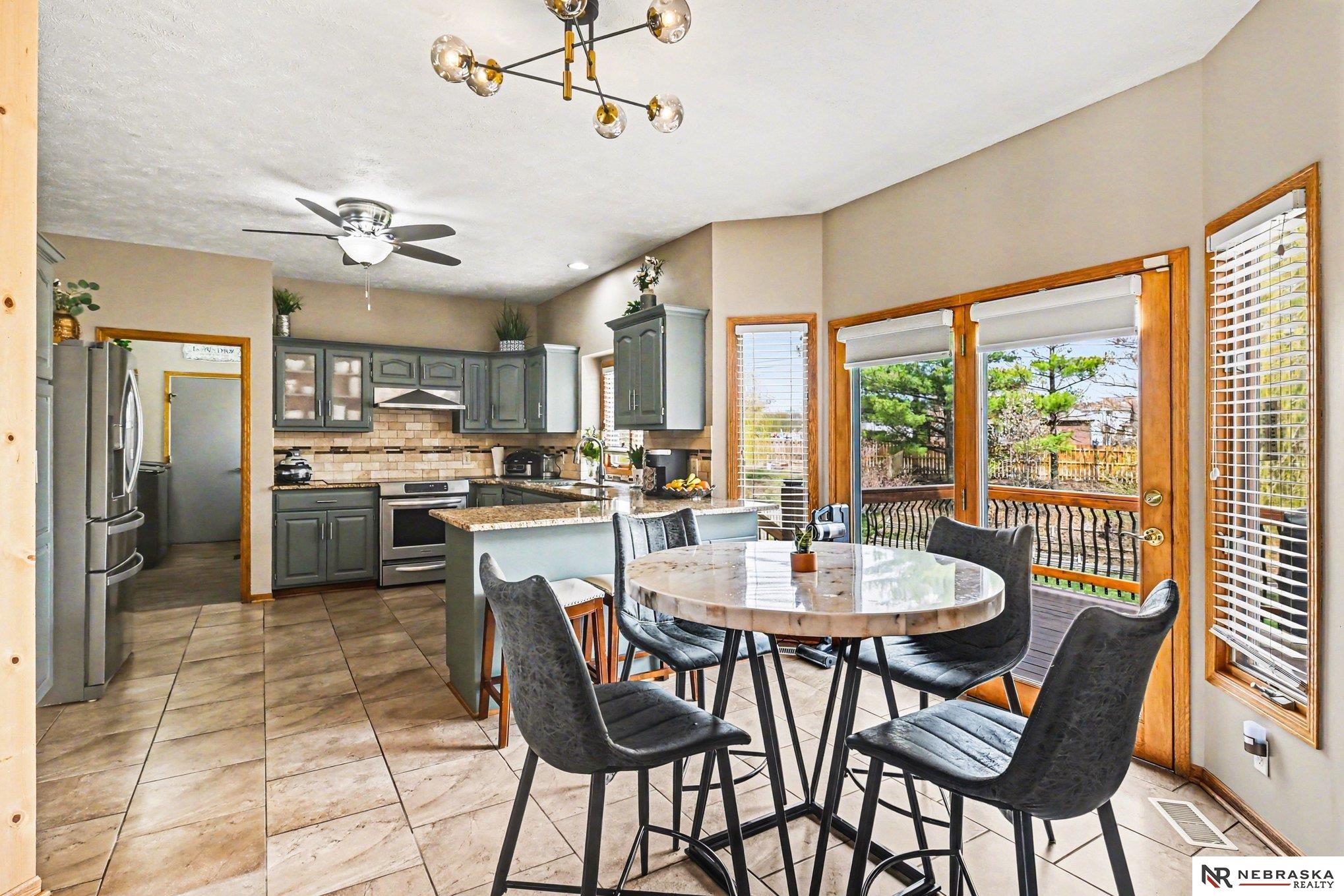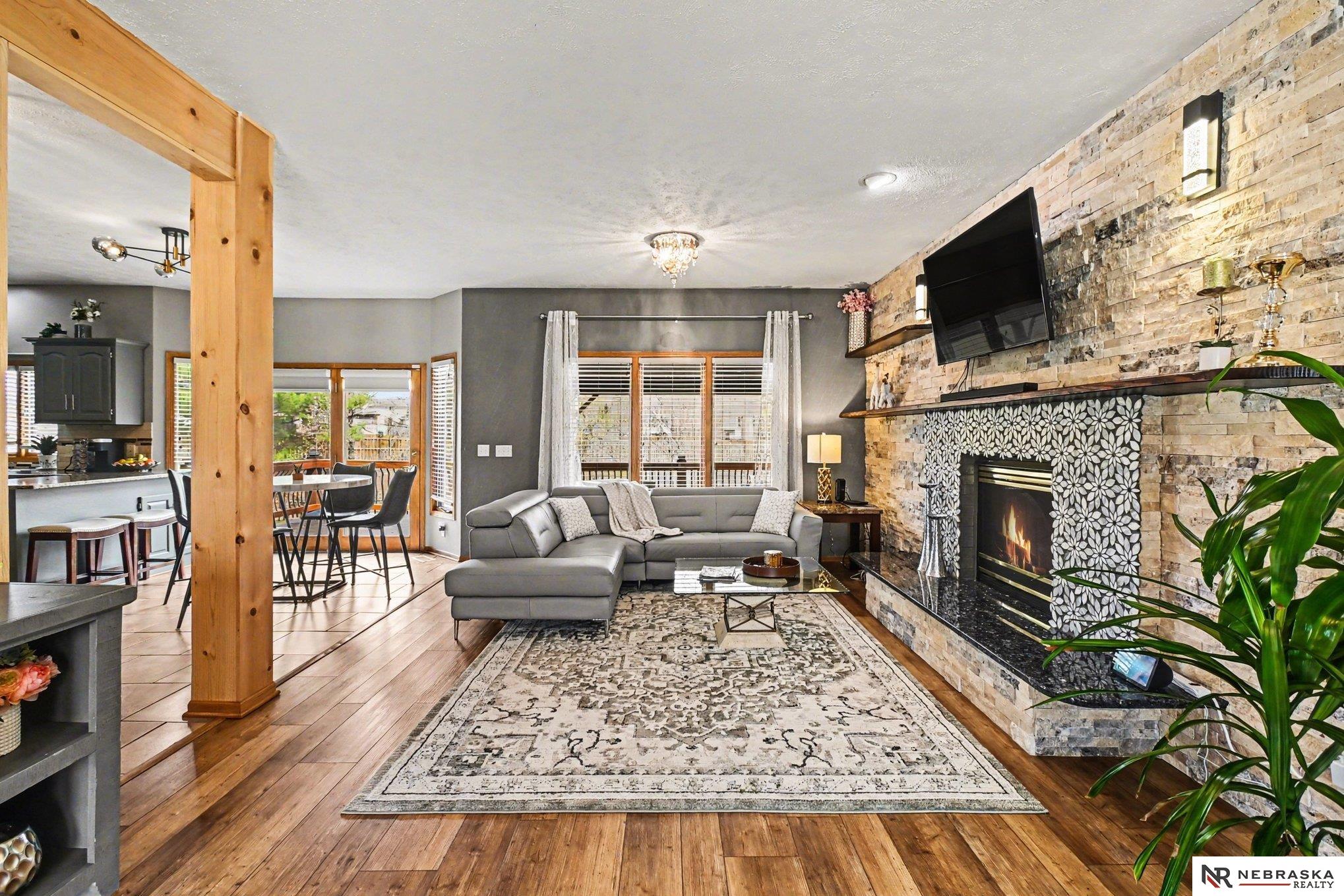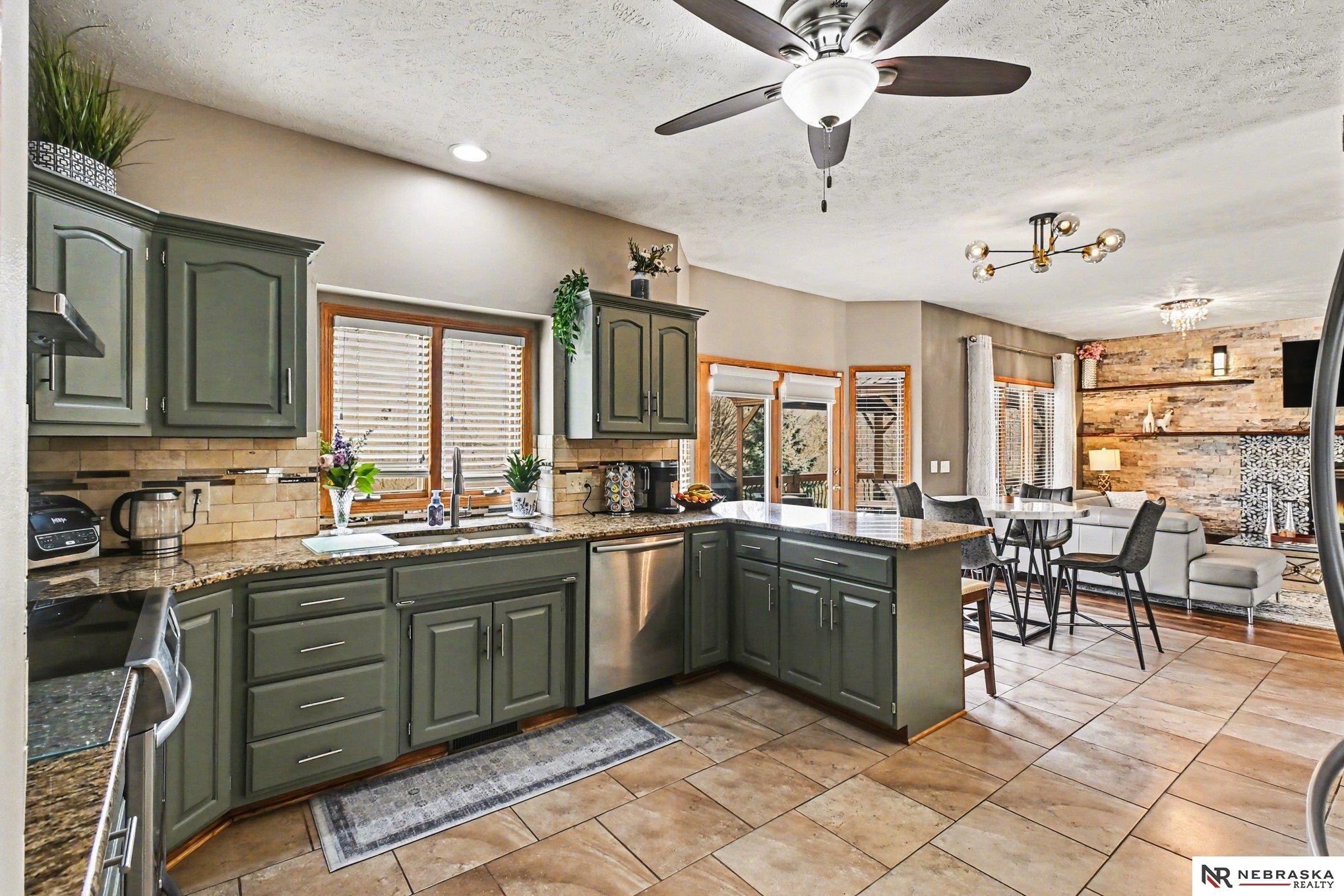 Move-in ready 2-story walkout home in Omaha at 16002 Audrey St! Offering just under 3,400 sq ft with 4 bedrooms, 4 bathrooms, and 2 kitchens, this home is perfect for multi-generational living or entertaining. Features include ceramic tile entry, 9’ ceilings, open-concept main floor, formal and informal dining, and main floor laundry. The kitchen boasts stone countertops and overlooks a large deck with stairs to a park-like backyard with mature trees. Upstairs includes 4 bedrooms and a spacious primary suite with dual vanities, tub, shower, and walk-in closet. The expansive finished walkout basement with 3/4 bathroom and second kitchen adds flexibility. Heated 3-car garage, UGS, partially fenced yard, and prime Omaha location near shopping, dining, and schools.
