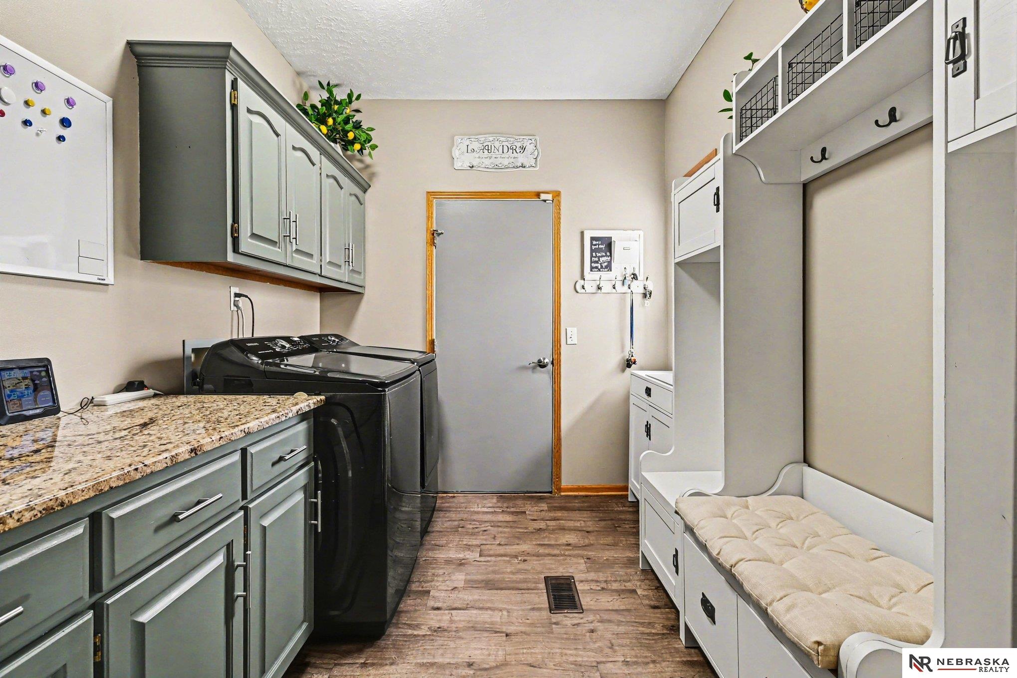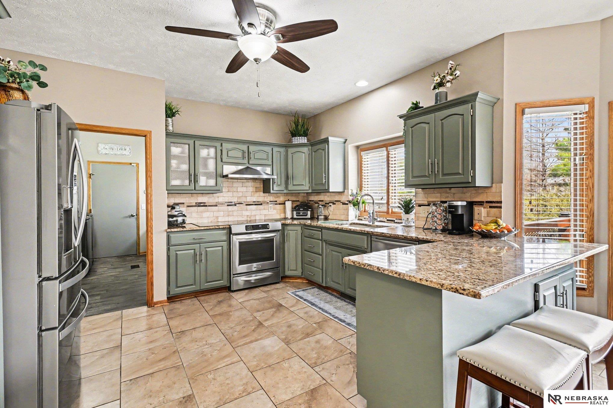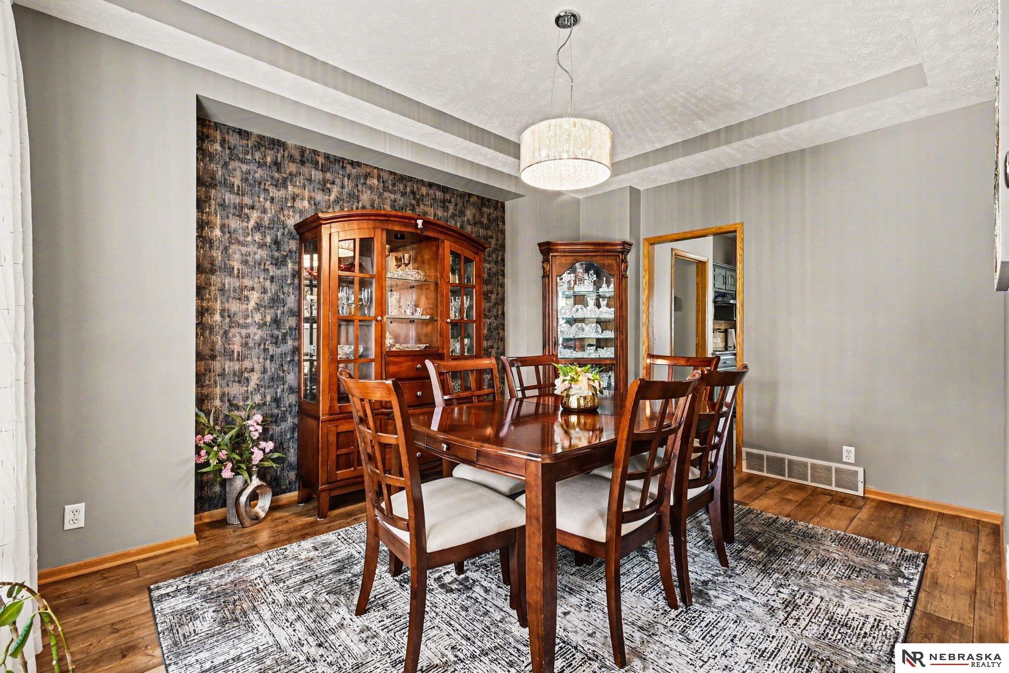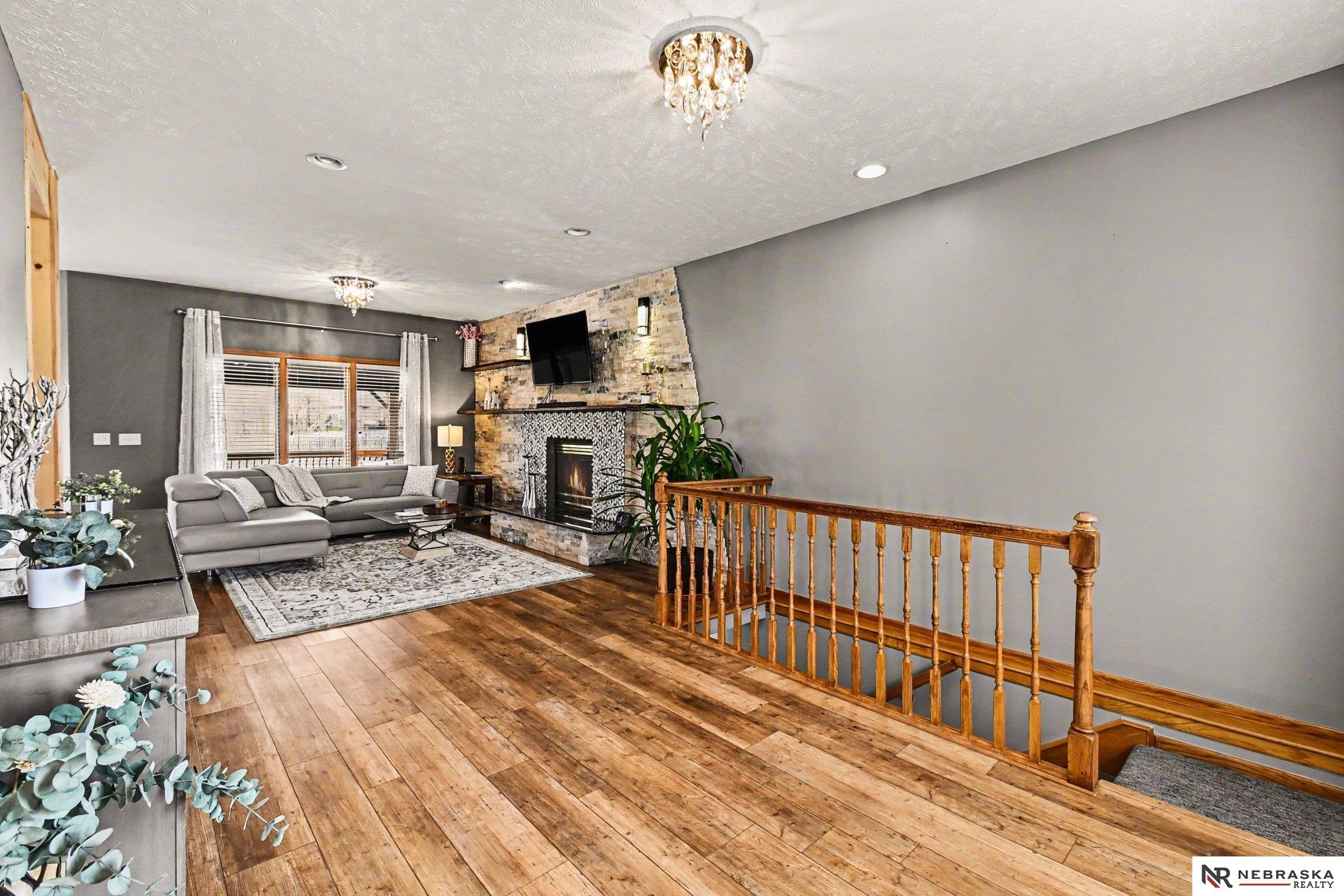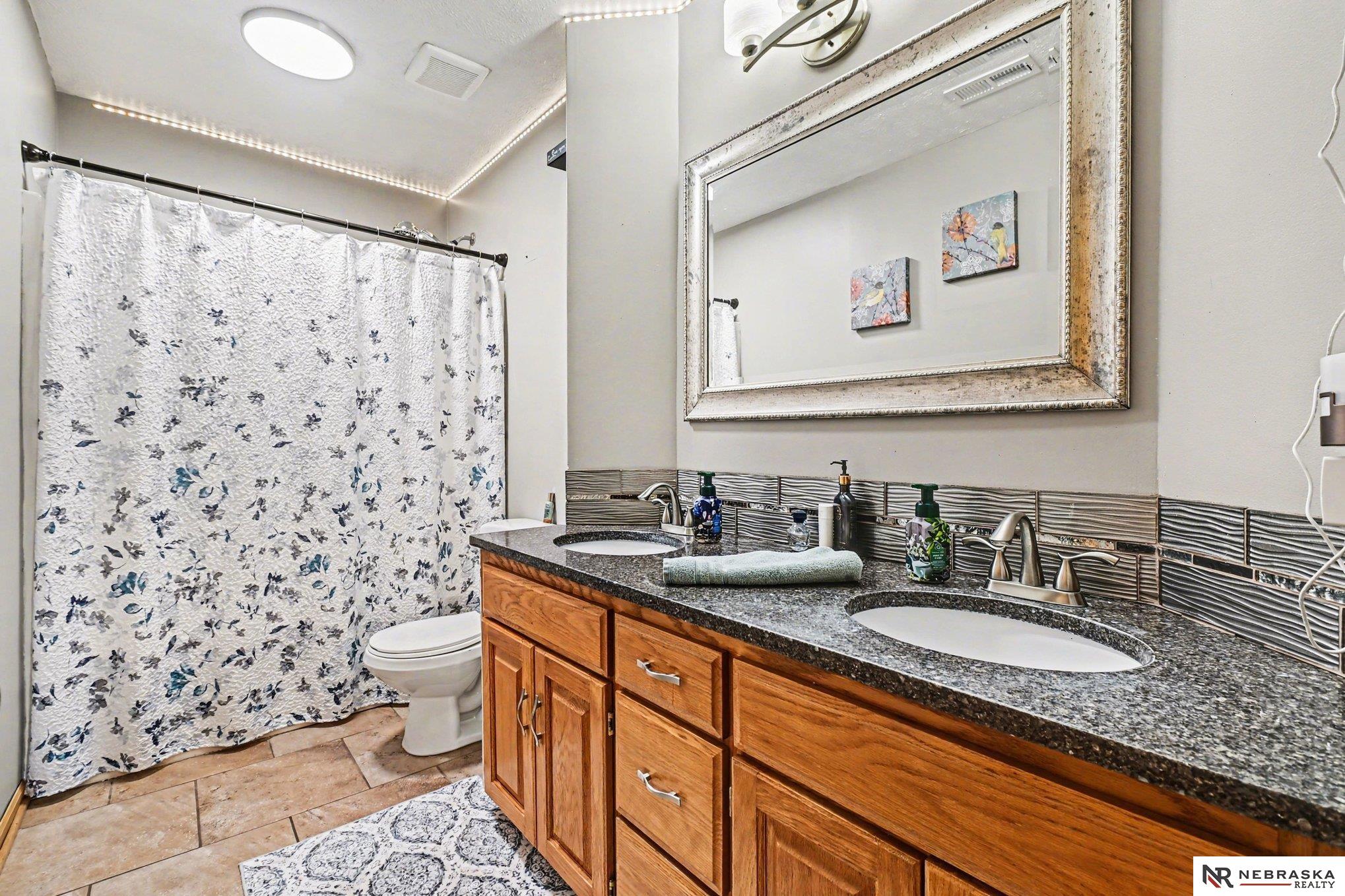 Move-in ready 2-story walkout home in Omaha at 16002 Audrey St! Offering just under 3,400 sq ft with 4 bedrooms, 4 bathrooms, and 2 kitchens, this home is perfect for multi-generational living or entertaining. Features include ceramic tile entry, 9’ ceilings, open-concept main floor, formal and informal dining, and main floor laundry. The kitchen boasts stone countertops and overlooks a large deck with stairs to a park-like backyard with mature trees. Upstairs includes 4 bedrooms and a spacious primary suite with dual vanities, tub, shower, and walk-in closet. The expansive finished walkout basement with 3/4 bathroom and second kitchen adds flexibility. Heated 3-car garage, UGS, partially fenced yard, and prime Omaha location near shopping, dining, and schools.