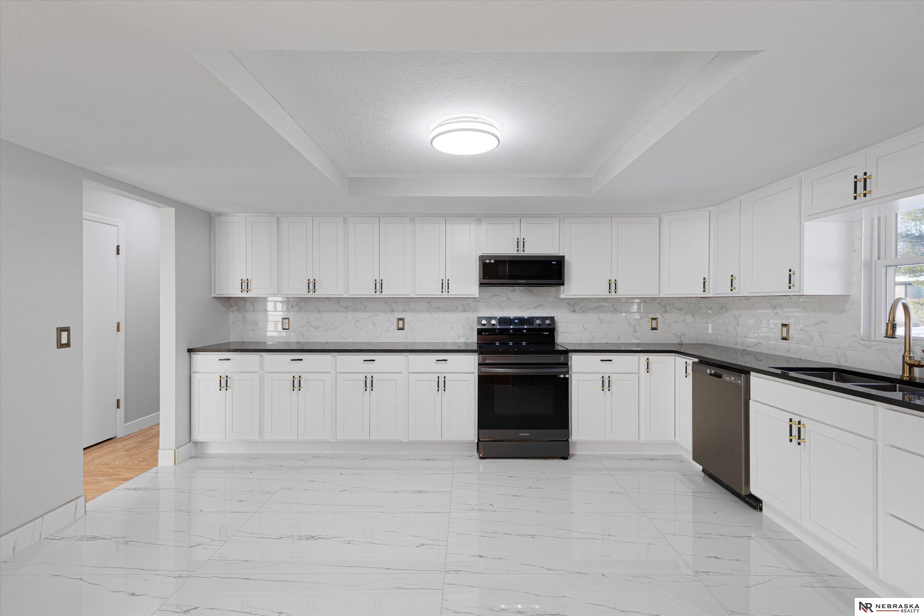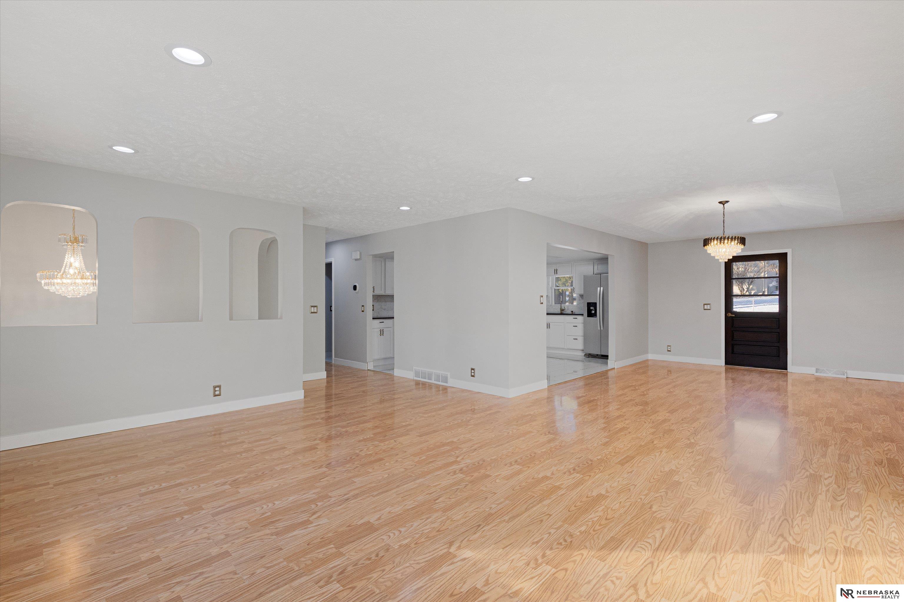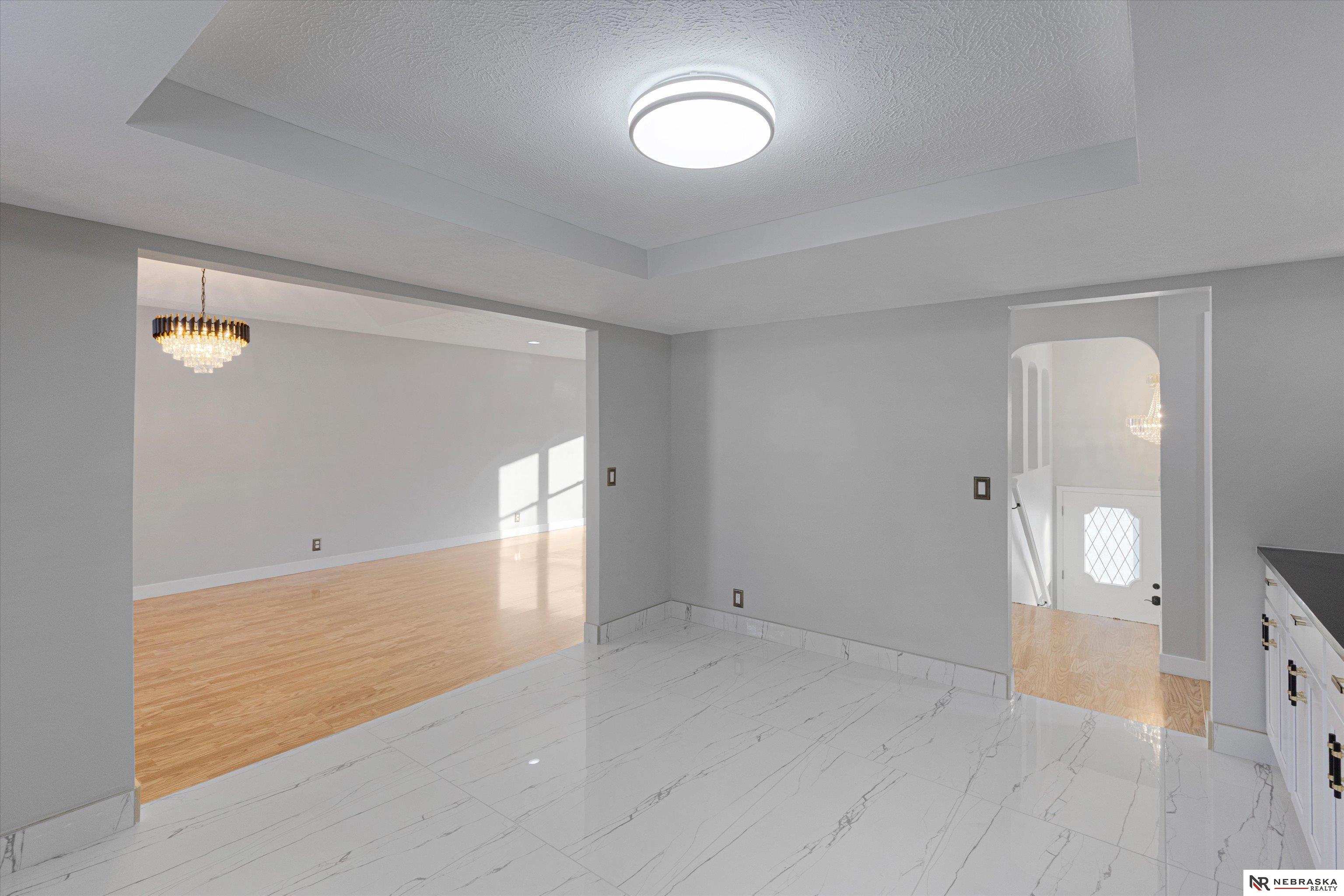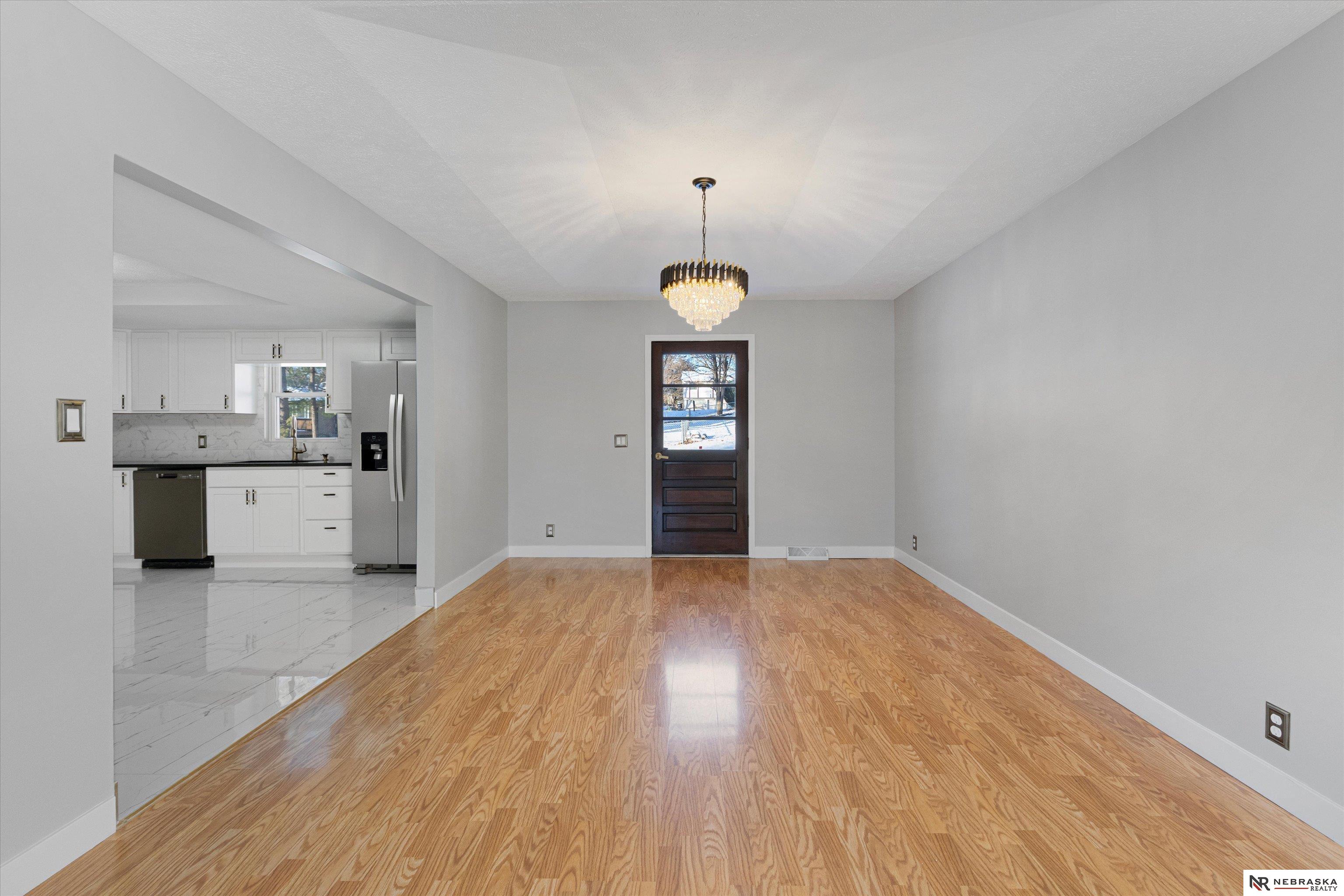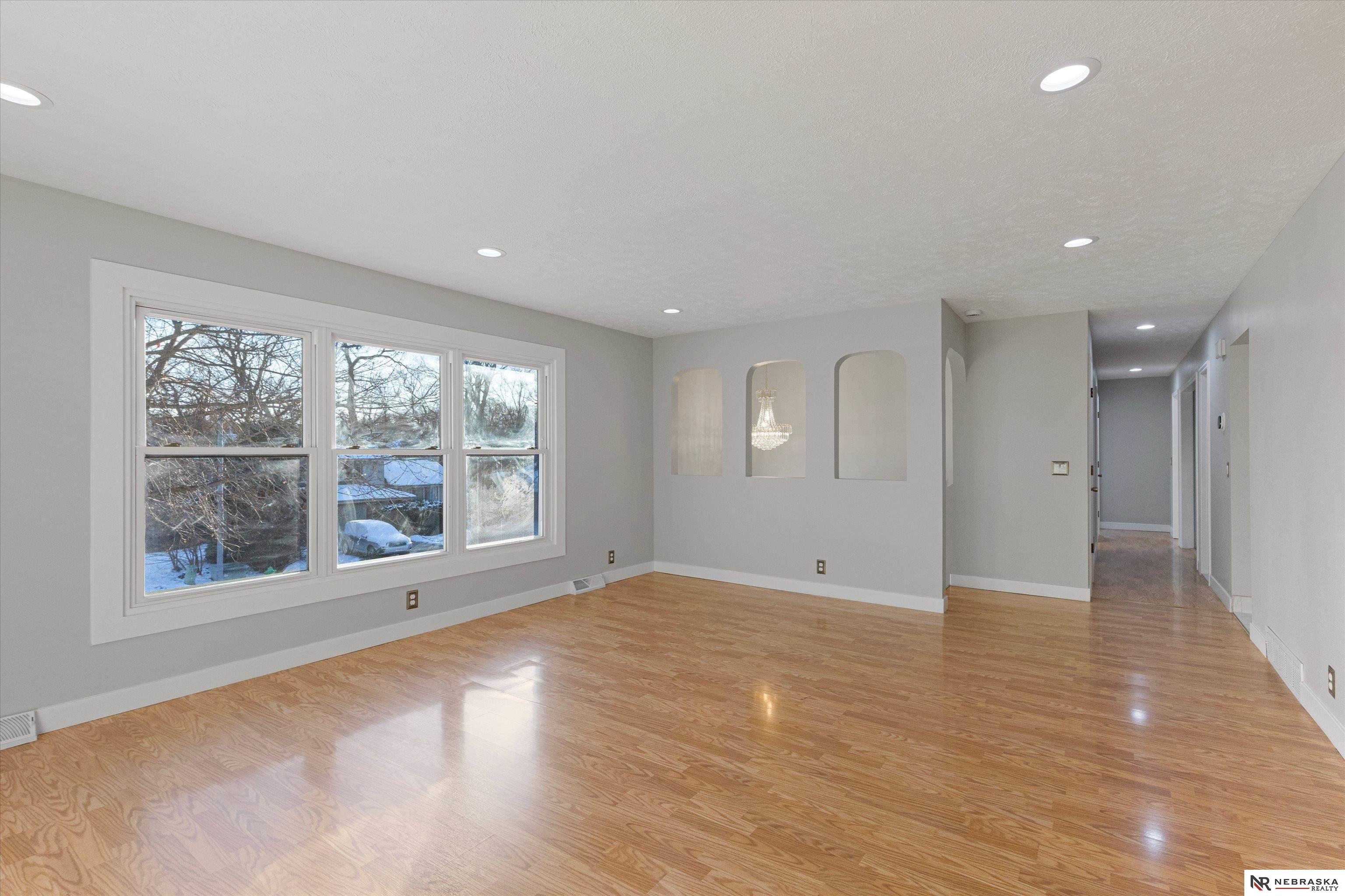 Beautiful home in Pacific Heights within the Millard School District. This modern home offers a spacious layout with bright updated finishes, fresh paint, and smooth drywall throughout. Enjoy a dedicated home office set apart from the main living areas, providing a private and comfortable space for remote work, meetings, or creative focus. The kitchen features white cabinetry, stone counters, stainless steel appliances, and marble-style tile. Laundry is conveniently located on the main floor near the bedrooms. The lower level includes a cozy living area, a non-conforming bedroom, and a heated 90 sq ft office ideal for work or hobbies. Exterior highlights include new garage doors, refreshed landscaping, and a three-car-wide driveway. A spacious 2.5-car garage, updated LED lighting, and a smart thermostat complete this move-in-ready home.